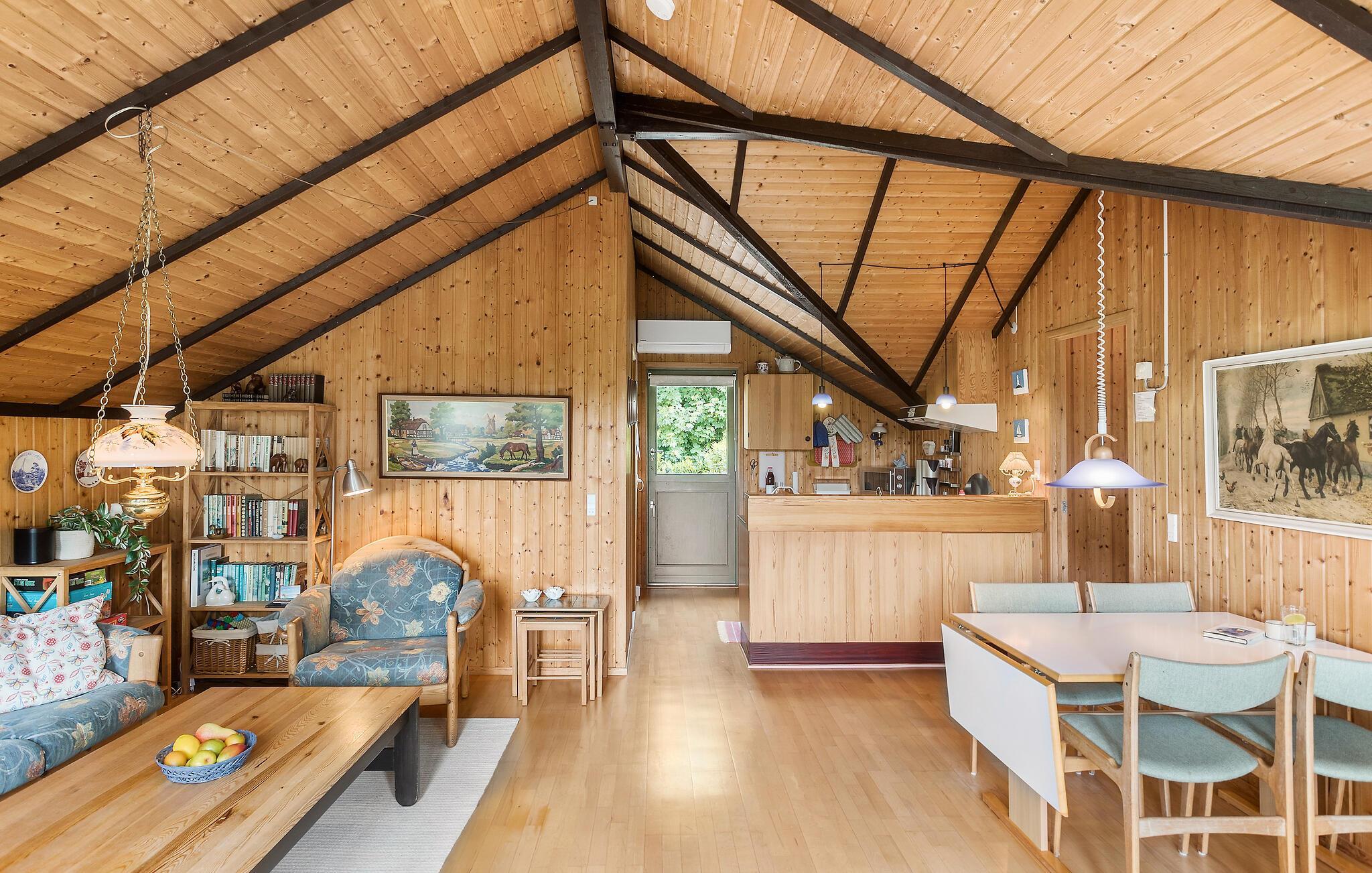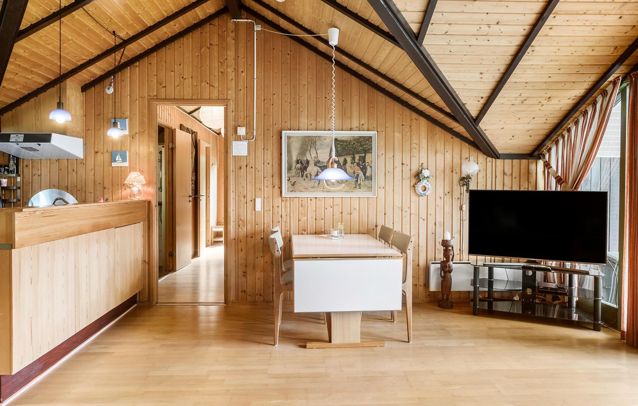 Verbringen Sie Ihren Urlaub in diesem stilvollen und gemütlichen Ferienhaus, das Ihnen und Ihrer Familie eine schöne Auszeit vom hektischen Alltag bietet. Genießen Sie Ihr Frühstück am Esstisch oder auf der sonnigen Terrasse, wo Sie die frische Luft und den beruhigenden Blick ins Grüne erleben können. Der helle Wohnbereich mit dem stimmungsvollen Holzambiente und der großen Fensterfront bietet die Möglichkeit, sich völlig zu entspannen und Ruhe zu finden. Machen Sie es sich auf den bequemen Sofas gemütlich und schauen Sie einen guten Film oder lesen Sie ein spannendes Buch.