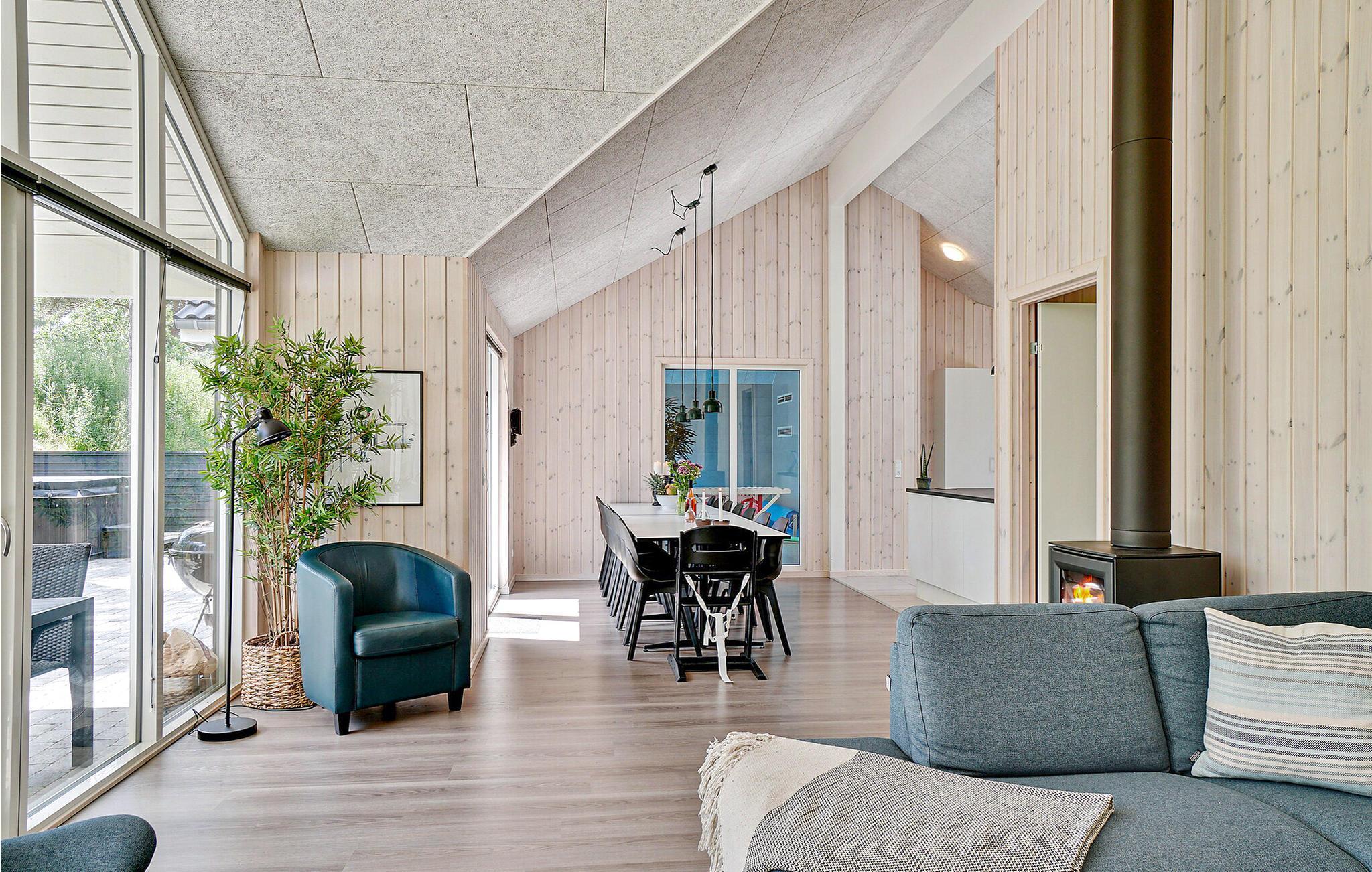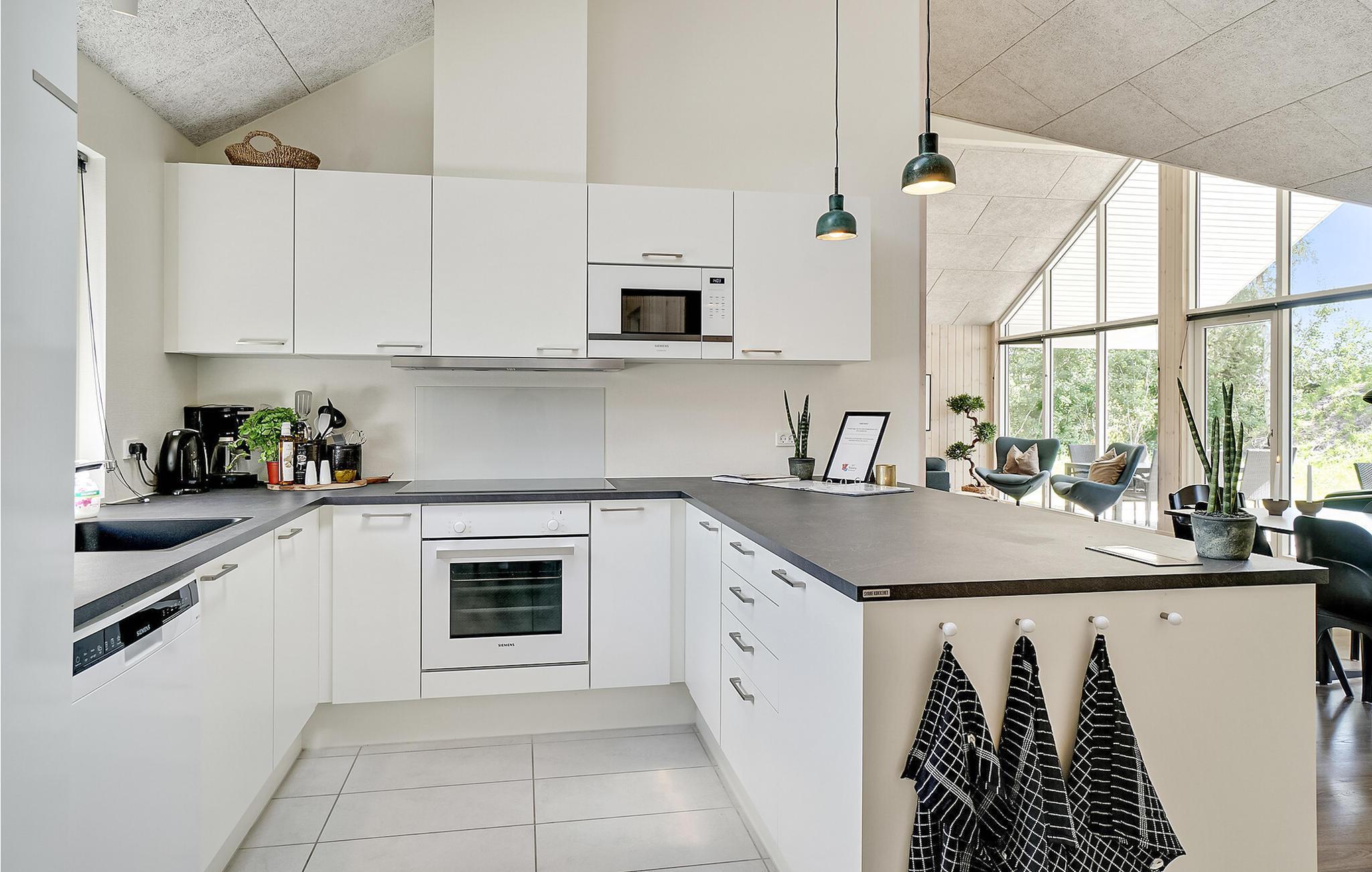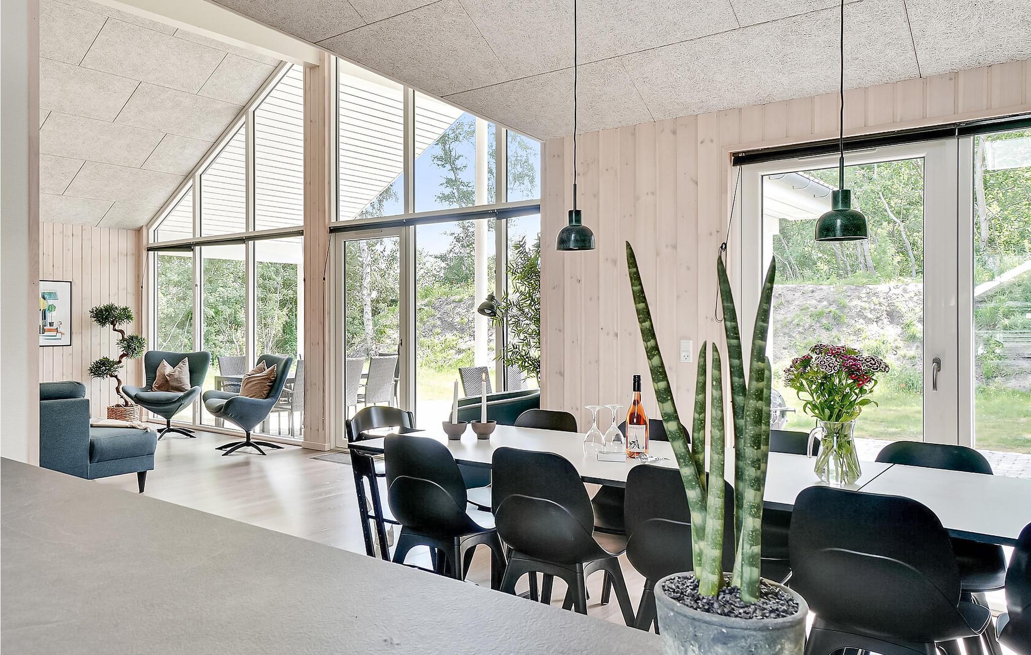 Das Ferienhaus ist ideal für einen Aufenthalt mit der Familie und bietet die Möglichkeit, entspannte Urlaubstage miteinander zu verbringen. In der Mitte des Hauses befindet sich der offene Küchenbereich. Hier können mehrere Familien gemeinsam kochen, da die Küche viel Platz bietet. Die Mahlzeiten können Sie am langen Esstisch genießen, der allen Gästen des Hauses ein gemütliches Beisammensein bietet.