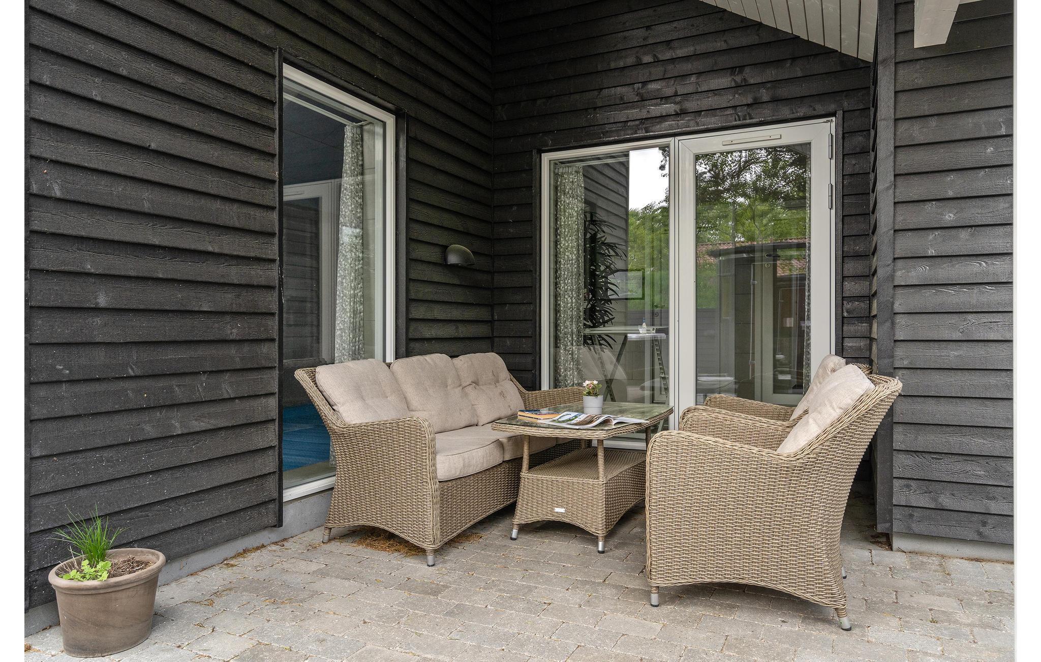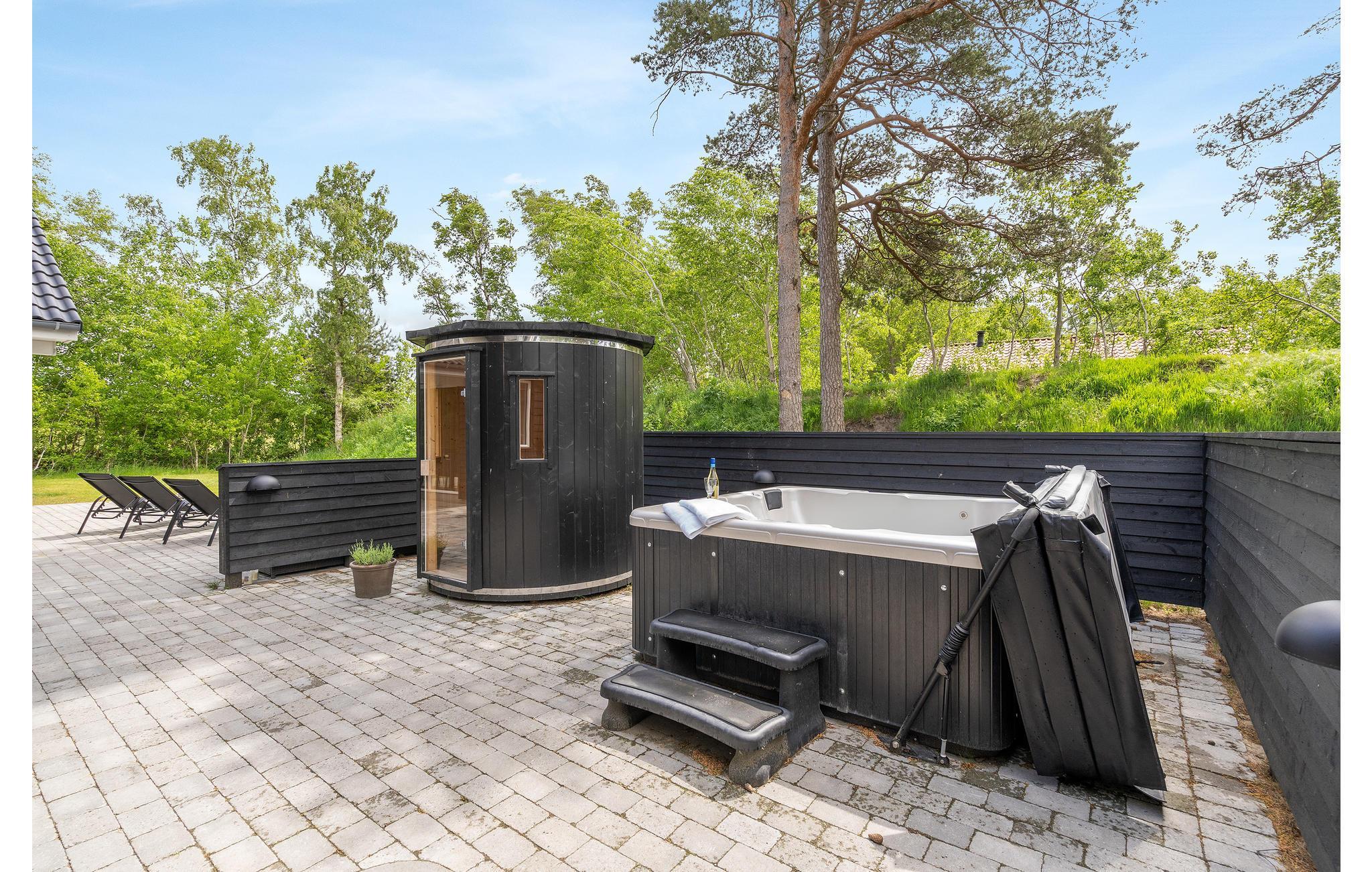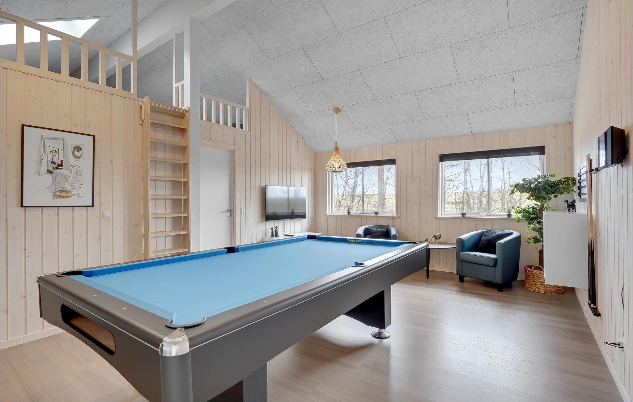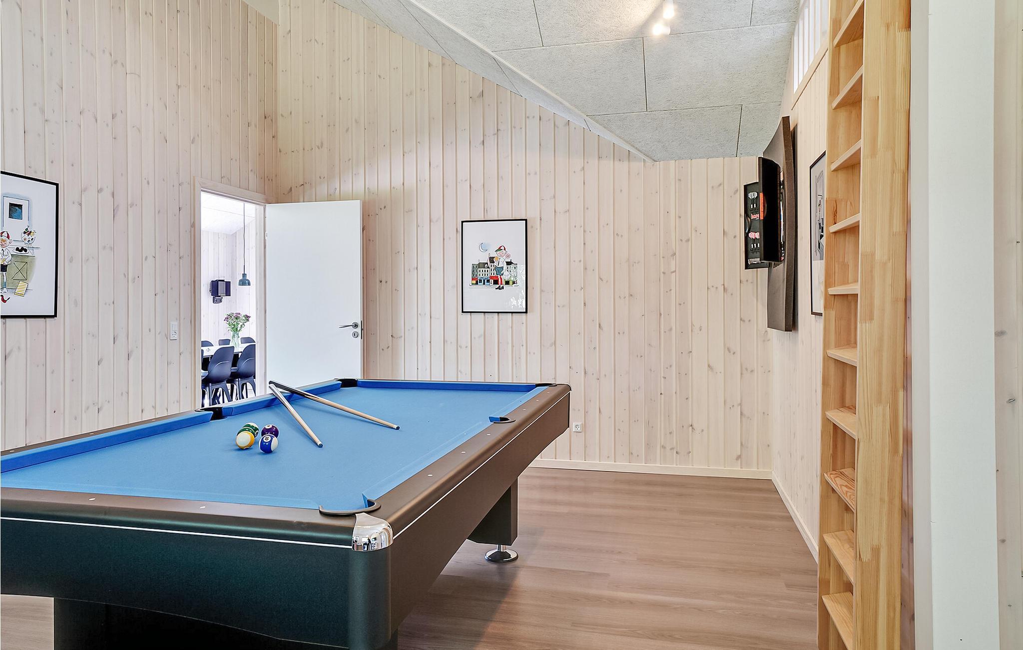 Bei schönem Wetter können Sie das Essen auch auf der gemütlichen und teilweise überdachten Terrasse des Hauses genießen, wo auch ein Grill bereitsteht. Springen Sie in den Whirlpool im Freien und beenden Sie den Tag mit einem Ausflug in das Saunafass. Wenn das Wetter nicht für diese Outdoor-Aktivitäten oder ein Bad am Strand geeignet ist, können Sie den Pool in der Wellnessabteilung des Ferienhauses nutzen. Im Aktivitätsraum des Hauses können Sie Tischtennis, Billard und Dart spielen.