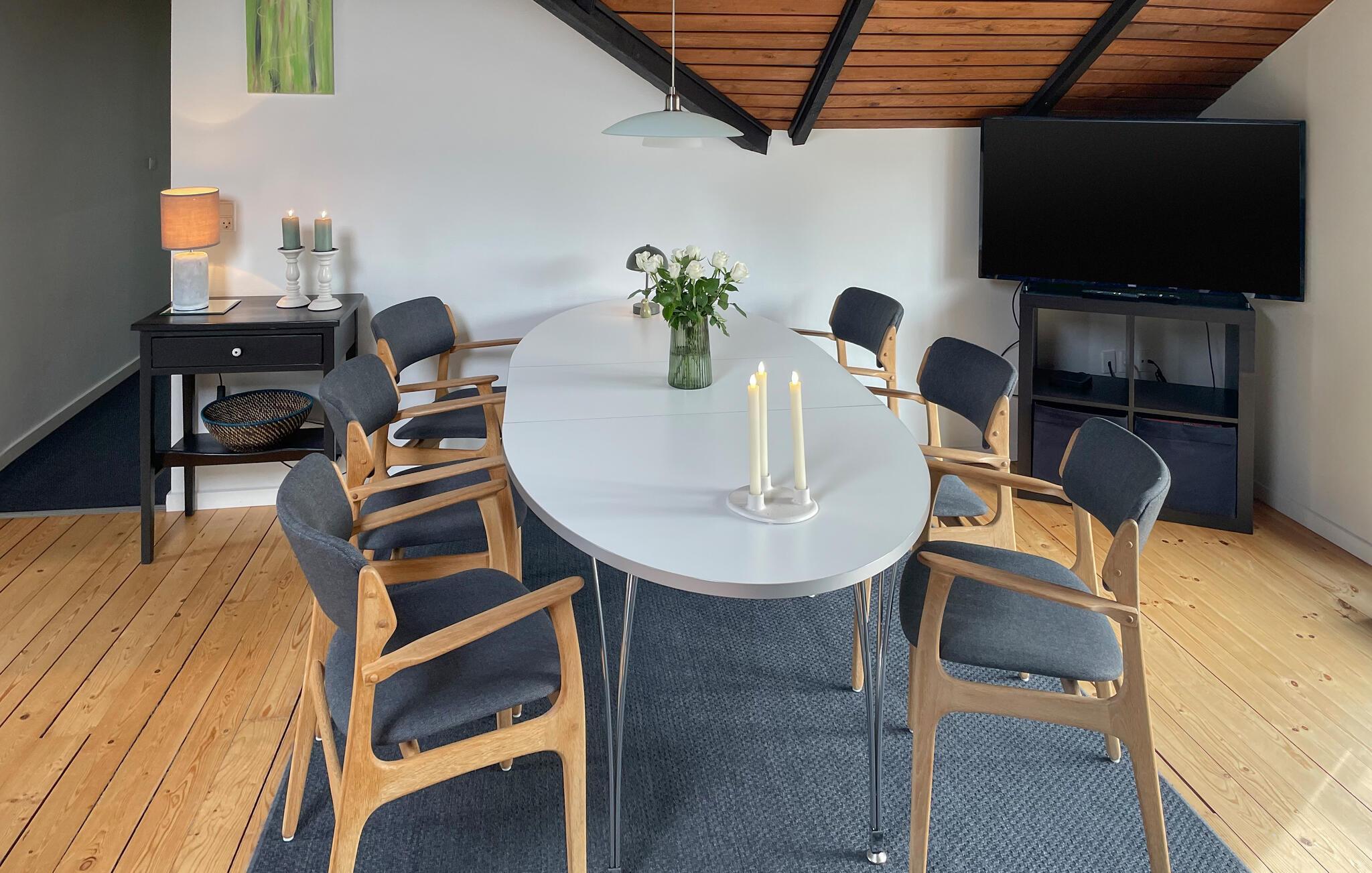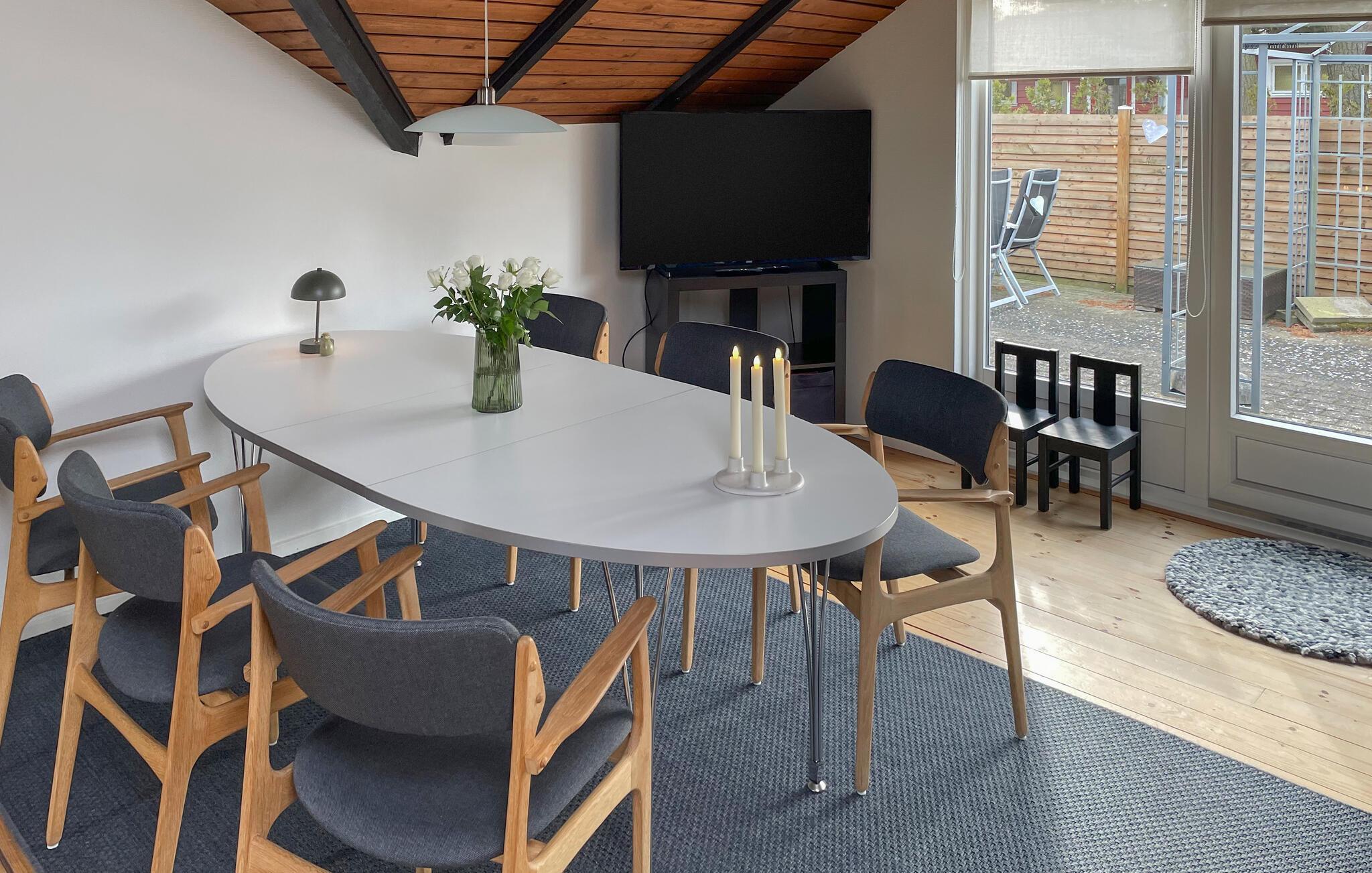 Ihr Ferienhaus bietet Ihnen einen schönen Rahmen für einen Insel-Urlaub mit der ganzen Familie. Hier finden Sie Platz für gemeinsame Erlebnisse, entspannte Stunden und gesellige Abende. Die Lage ist ideal, denn der wunderschöne Sandstrand von Marielyst auf der Insel Falster liegt nur unweit von Ihrem Haus entfernt und lädt zu erholsamen Tagen am Wasser ein. Genießen Sie die einzigartige Natur und lassen Sie den Alltag hinter sich. Starten Sie den Tag in der großzügigen Küche und bereiten Sie gemeinsam ein leckeres Frühstück zu. Der schöne Esstisch ist der ideale Ort für gesellige Mahlzeiten und die Planung der Tagesaktivitäten.