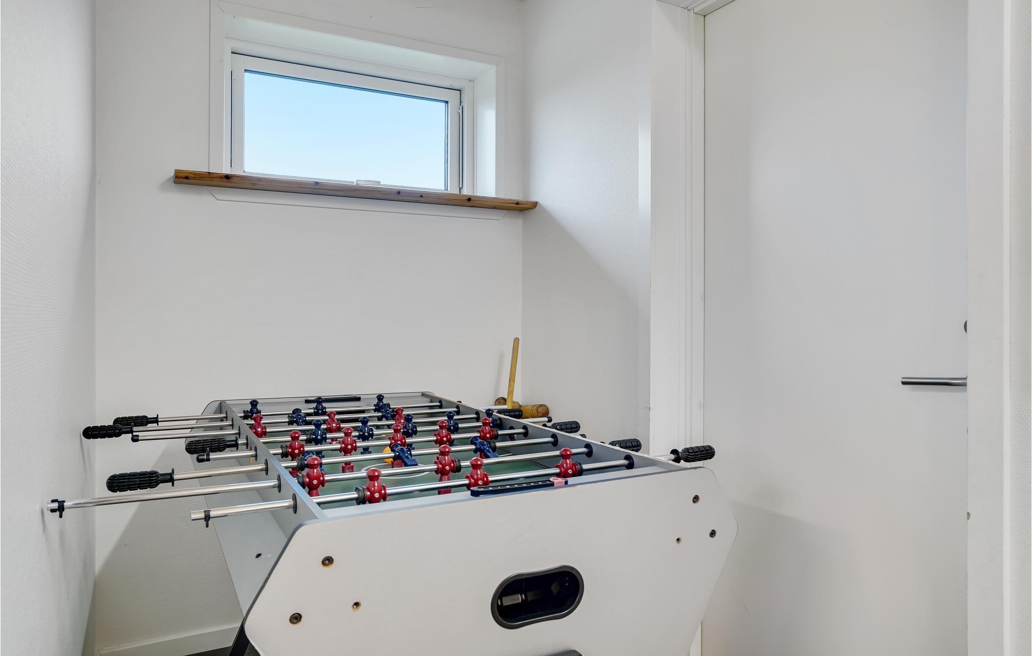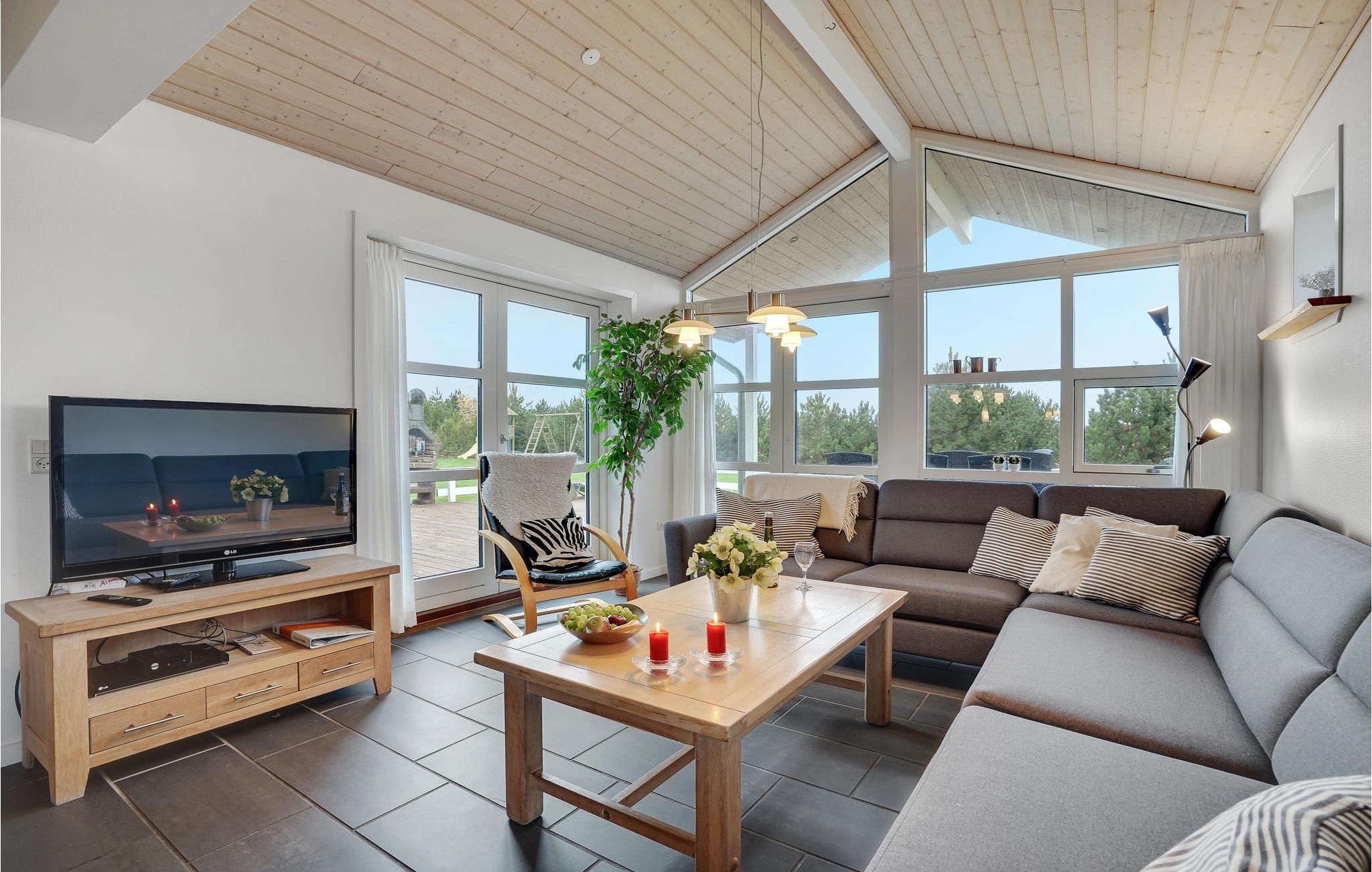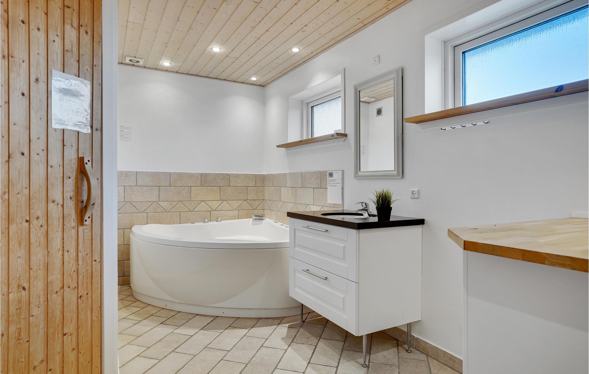 Schönes Ferienhaus mit Aktivitätsraum. Hier können Sie sich beim Tischtennis oder Billard messen. Zu den zwei Badezimmern gesellen sich ein Whirlpool und die Sauna. Bodenheizung im ganzen Haus. Und im Wohnzimmer gibt es zusätzlich den Kaminofen und einen Wärmetauscher – alles zusammen hält die Heizkosten niedrig. Draußen finden Sie zwei offene und eine überdachte Holzterrasse.
