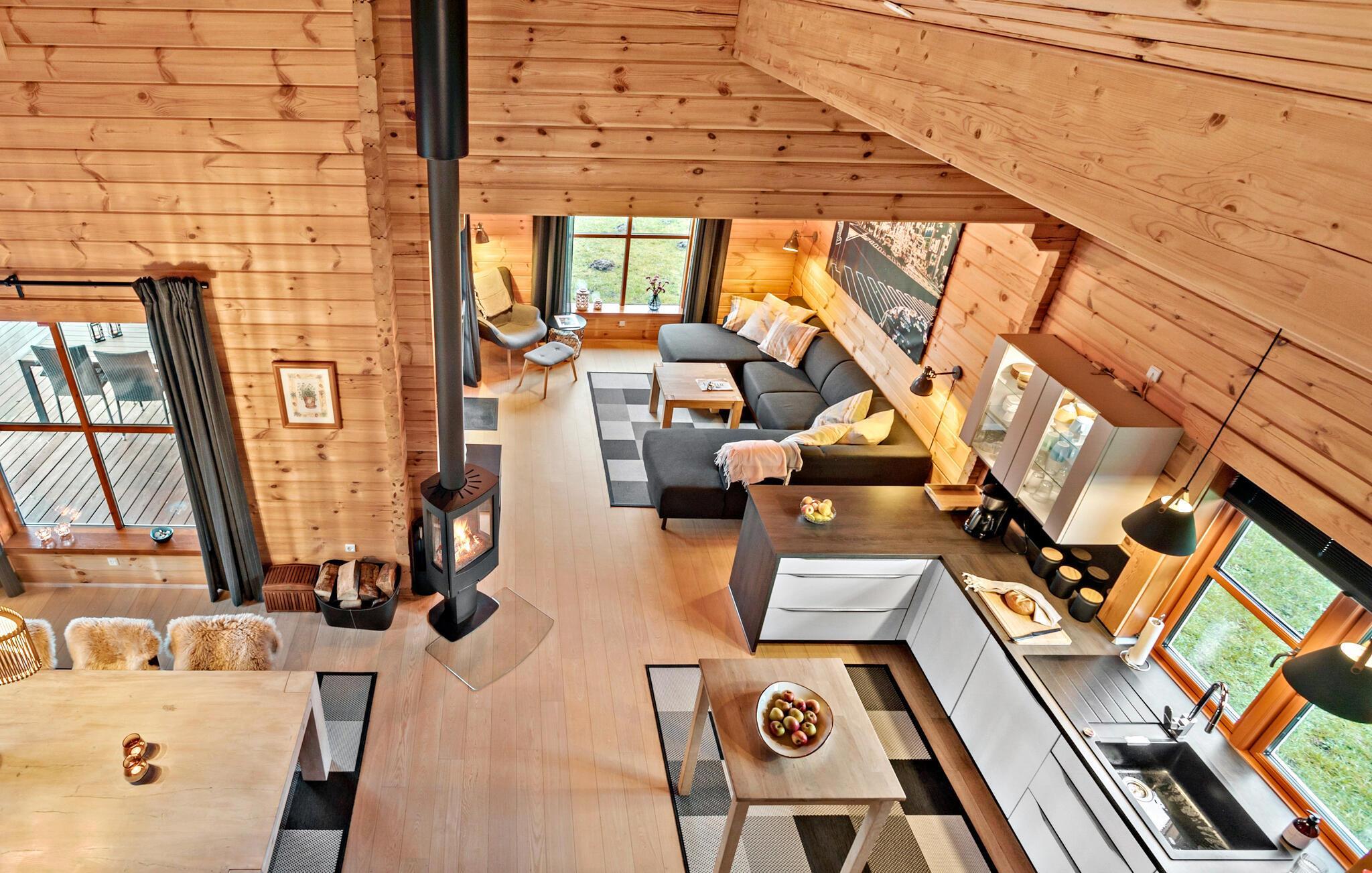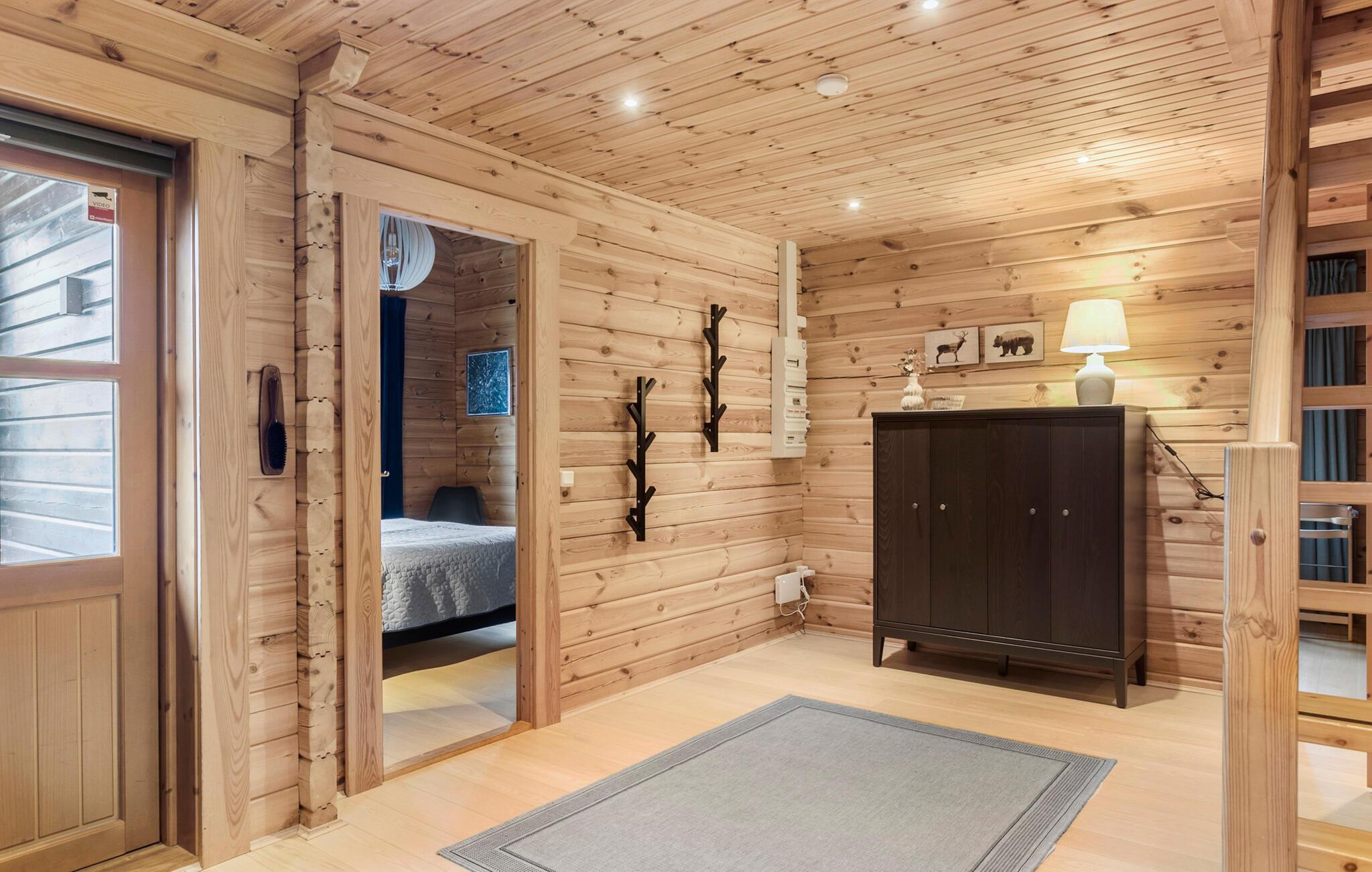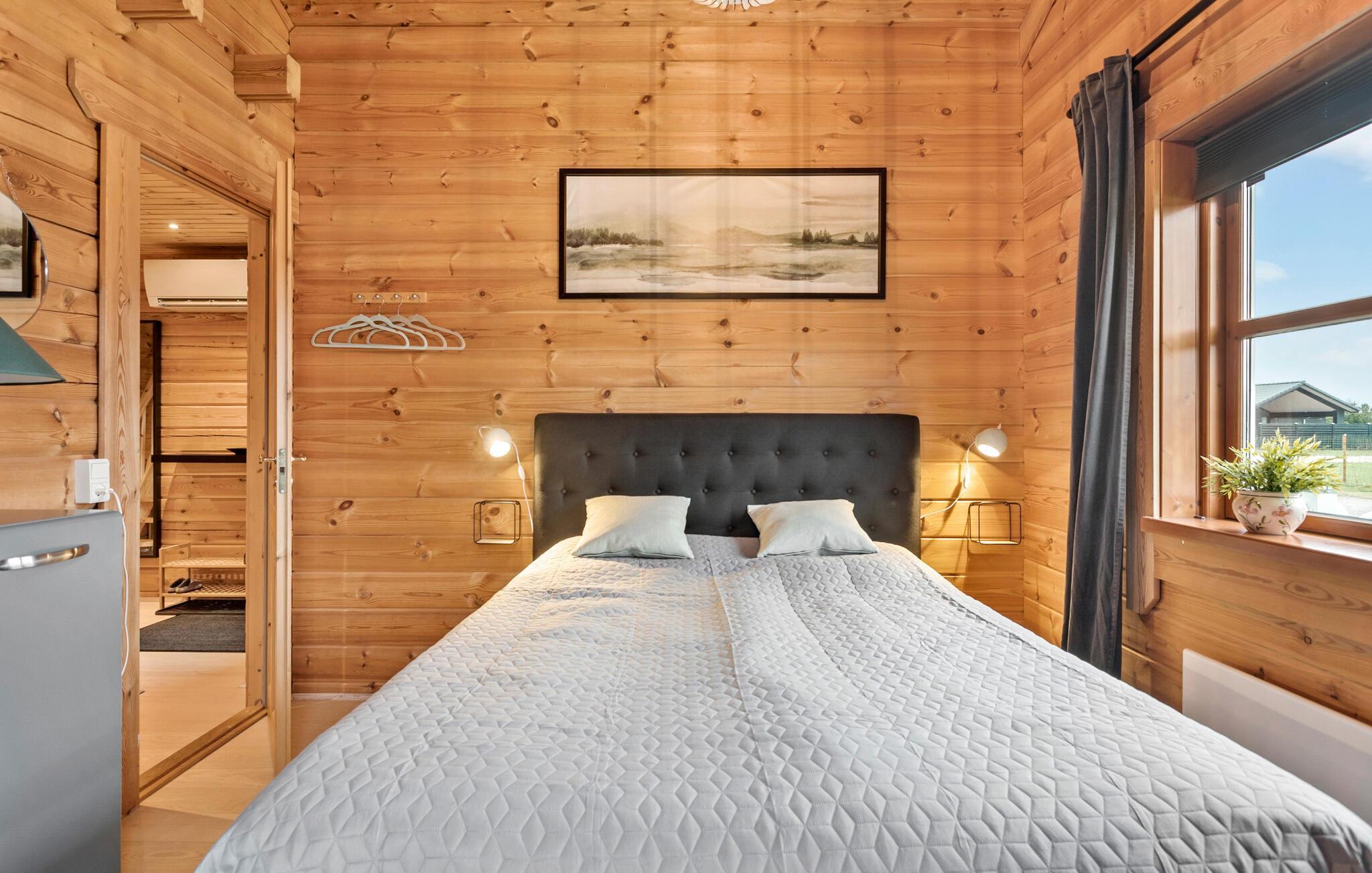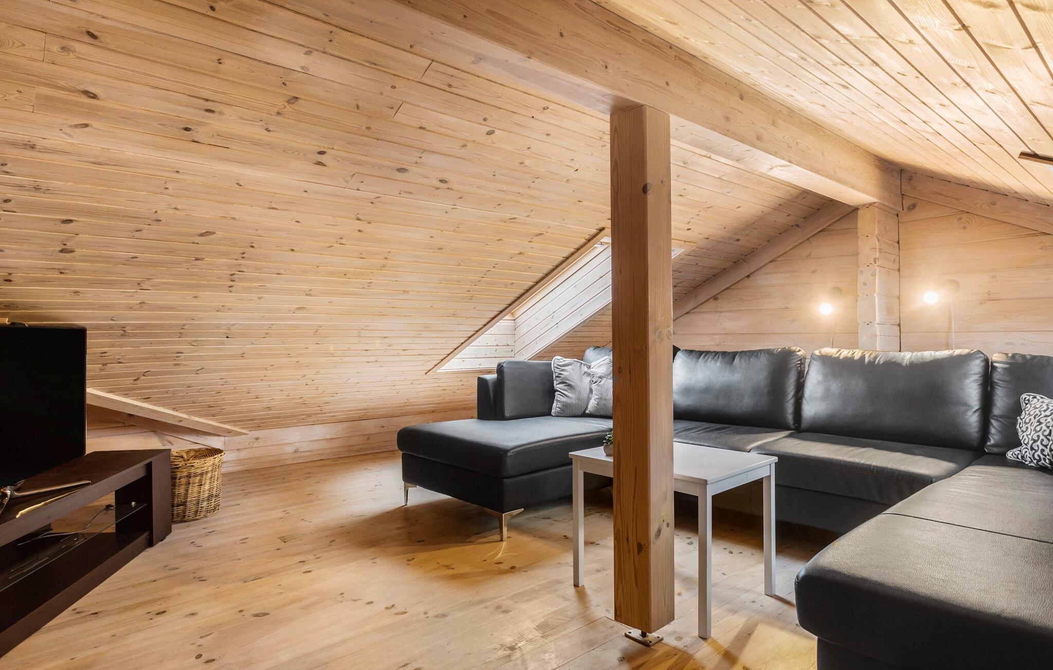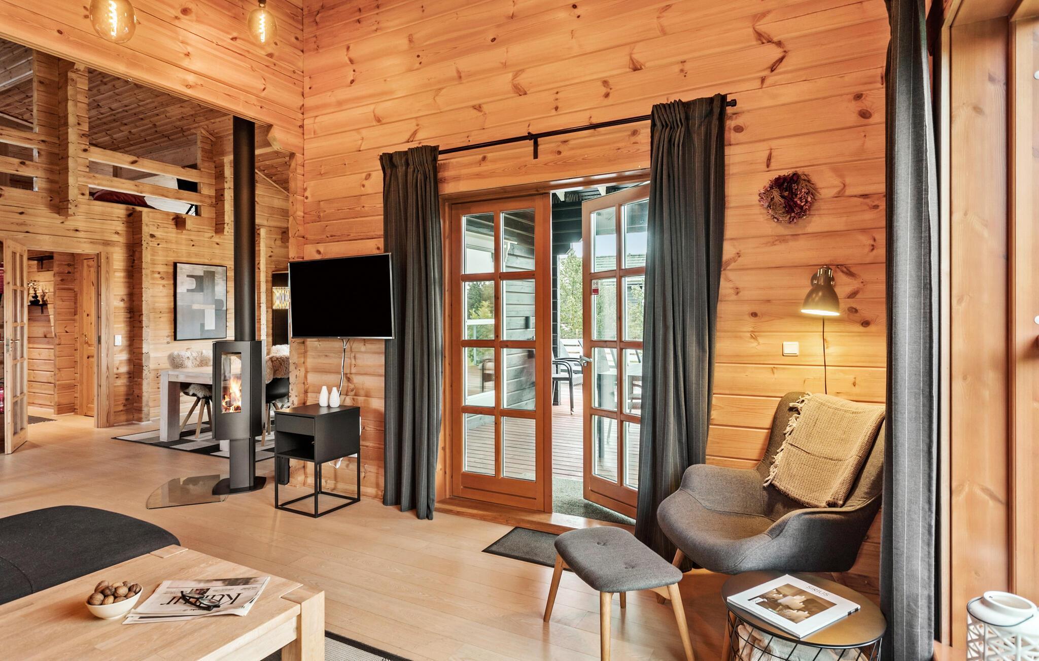 Geräumiges und stilvolles Holzhaus mit Sauna und Whirlpool-Badewanne.