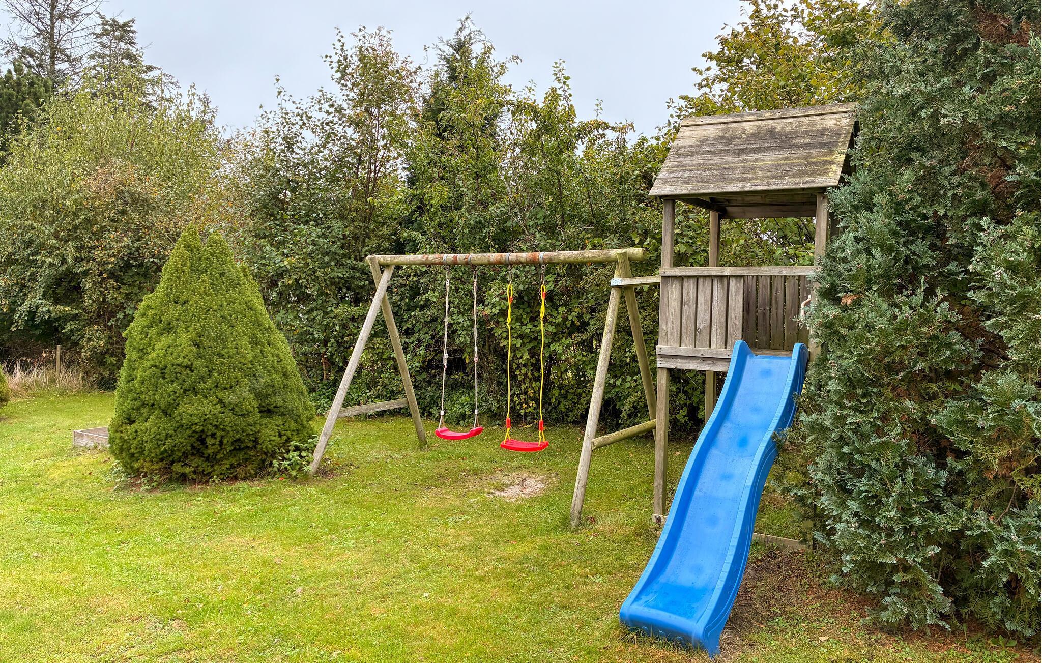 Auf der geschützten Holzterrasse können Sie morgens gemütlich mit Kaffee und frische Brötchen frühstücken oder abends den Tag beim Grillen ausklingen lassen. Während die Kinder im Sandkasten spielen, schaukeln oder rutschen, genießen Sie die frische Luft bei einer zweiten Tasse Kaffee und einem guten Buch.