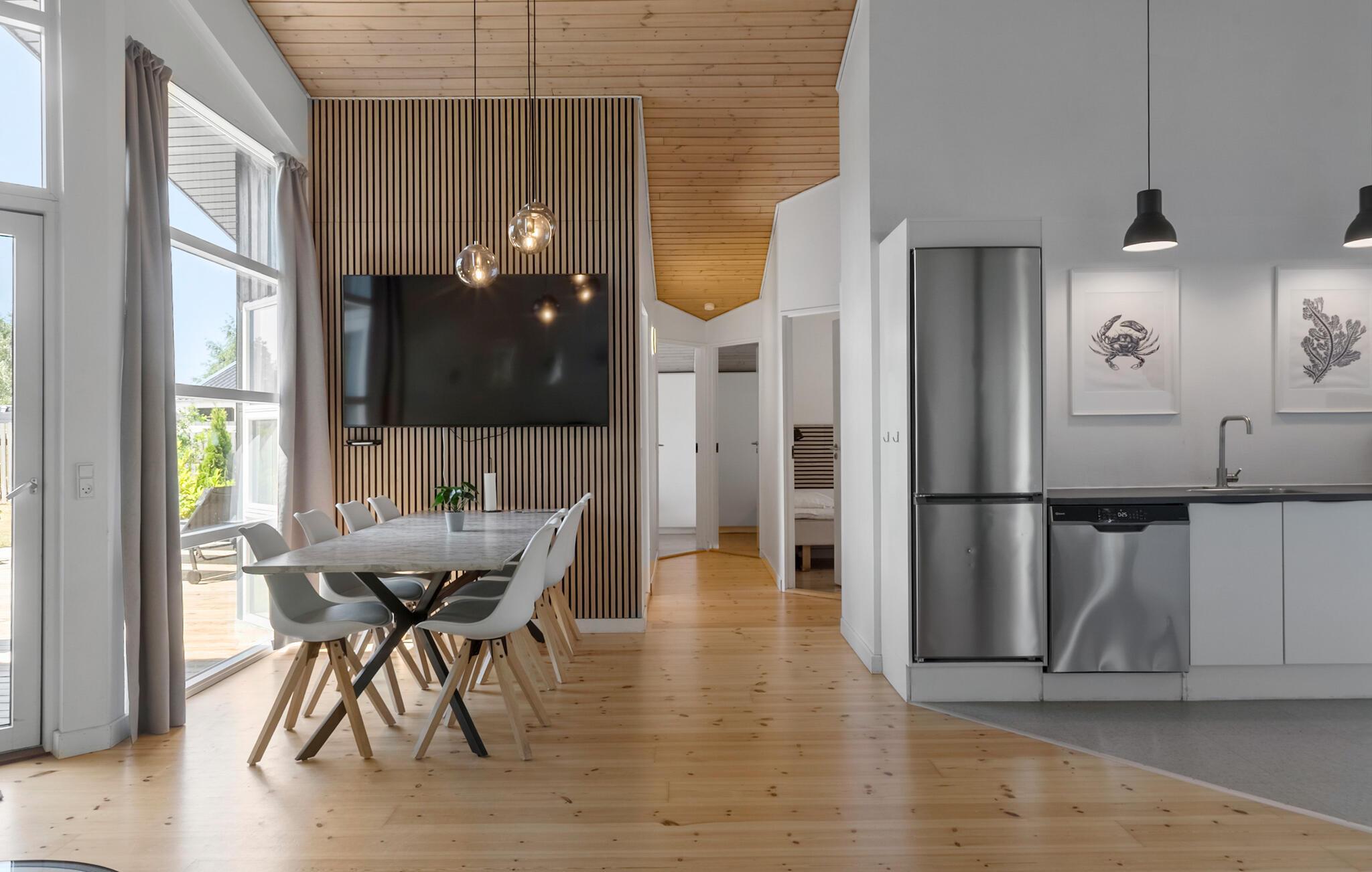 Hell und ansprechend begrüßt Sie dieses einladende Haus und bietet alles für eine erholsame Auszeit mit der ganzen Familie, in der große und kleine Familienmitglieder auf Ihre Kosten kommen. Verbringen Sie vergnügliche Stunden im Pool und entspannen Sie in der Sauna. Freuen Sie sich auf gemütliche Abende, wenn Sie von Ihren Unternehmungen zurückkehren, machen Sie es sich am Esstisch bequem, lassen Sie das Abendessen nahtlos in einen Spieleabend übergehen, feuern Sie im Kaminofen an und plaudern Sie noch lange in geselliger Runde.
