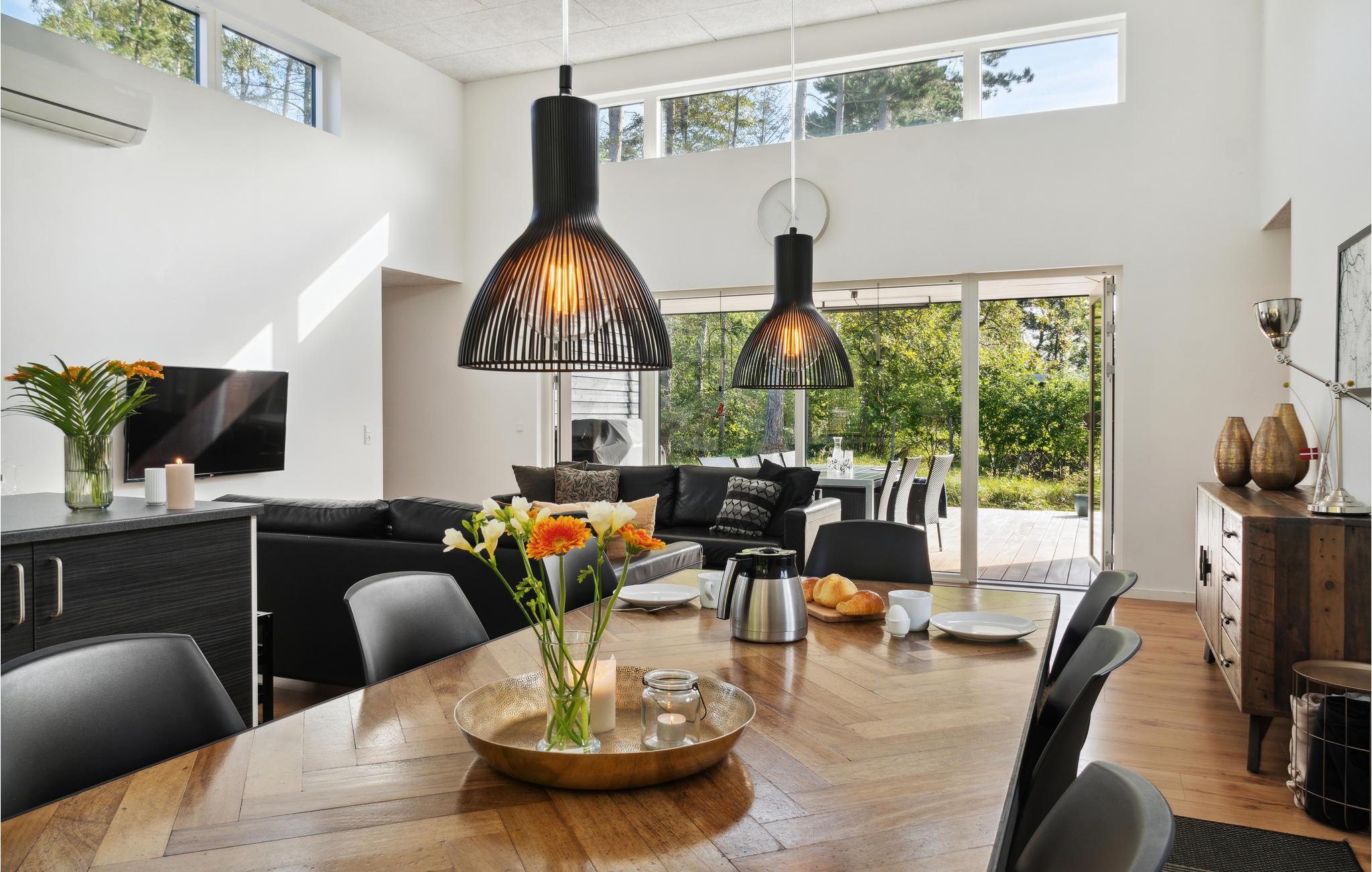 Das moderne, architektonisch interessante Haus empfängt Sie nur ein paar Schritte vom Strand entfernt und ist der richtige Ort für einen Urlaub mit viel Komfort. Schon beim Aufwachen genießen Sie hier einen schönen Blick ins Freie. Fordern Sie Ihre Mitreisenden zu vergnüglichen Duellen am Billardtisch heraus oder entspannen Sie nach einem Strandspaziergang in der Sauna, die Ihnen einen wundervollen Blick in den Garten gewährt.
