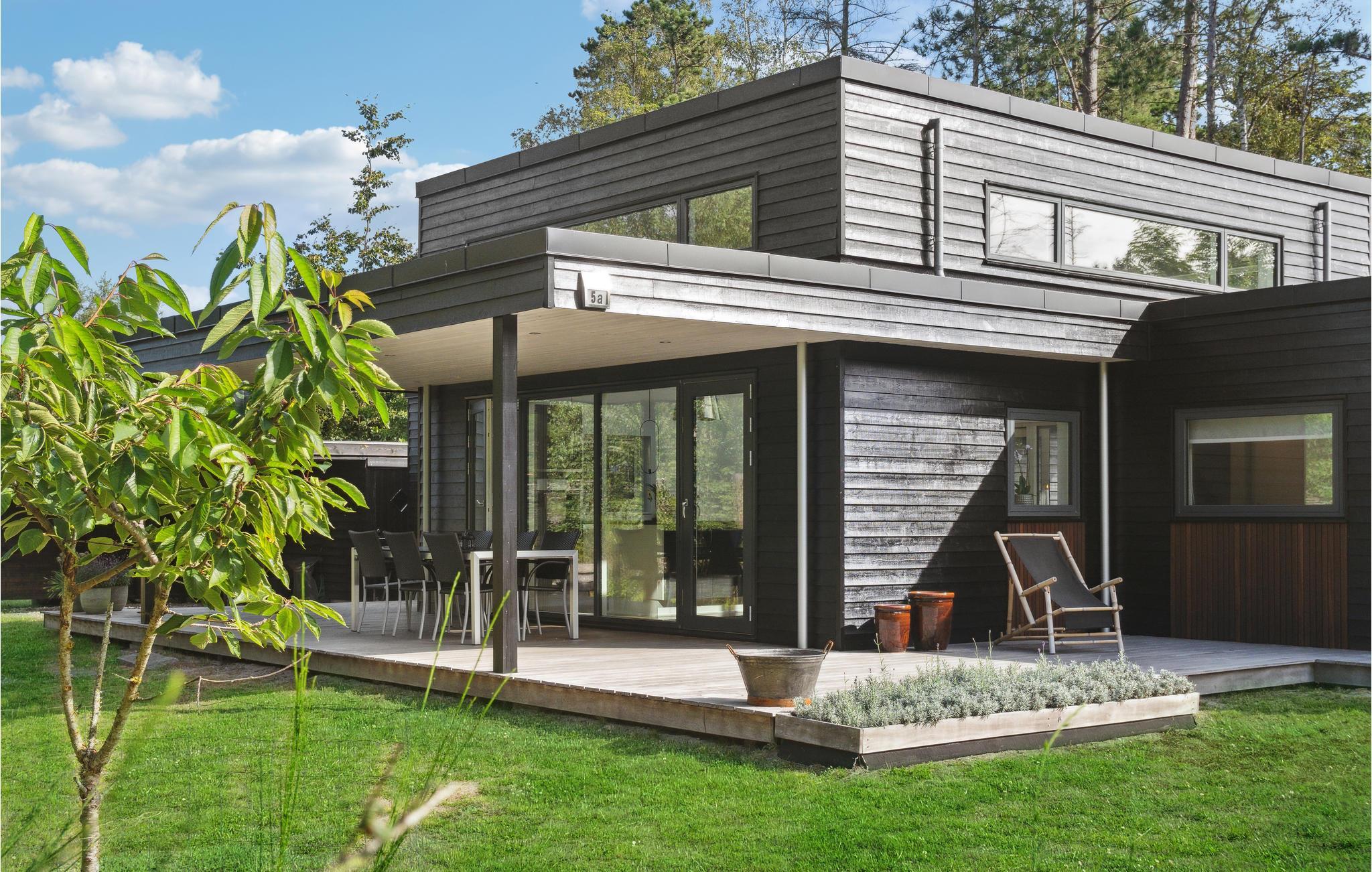 Modernes Ferienhaus nahe dem Strand mit Sauna, Whirlpool und großzügigem Garten für erholsame Urlaubstage.