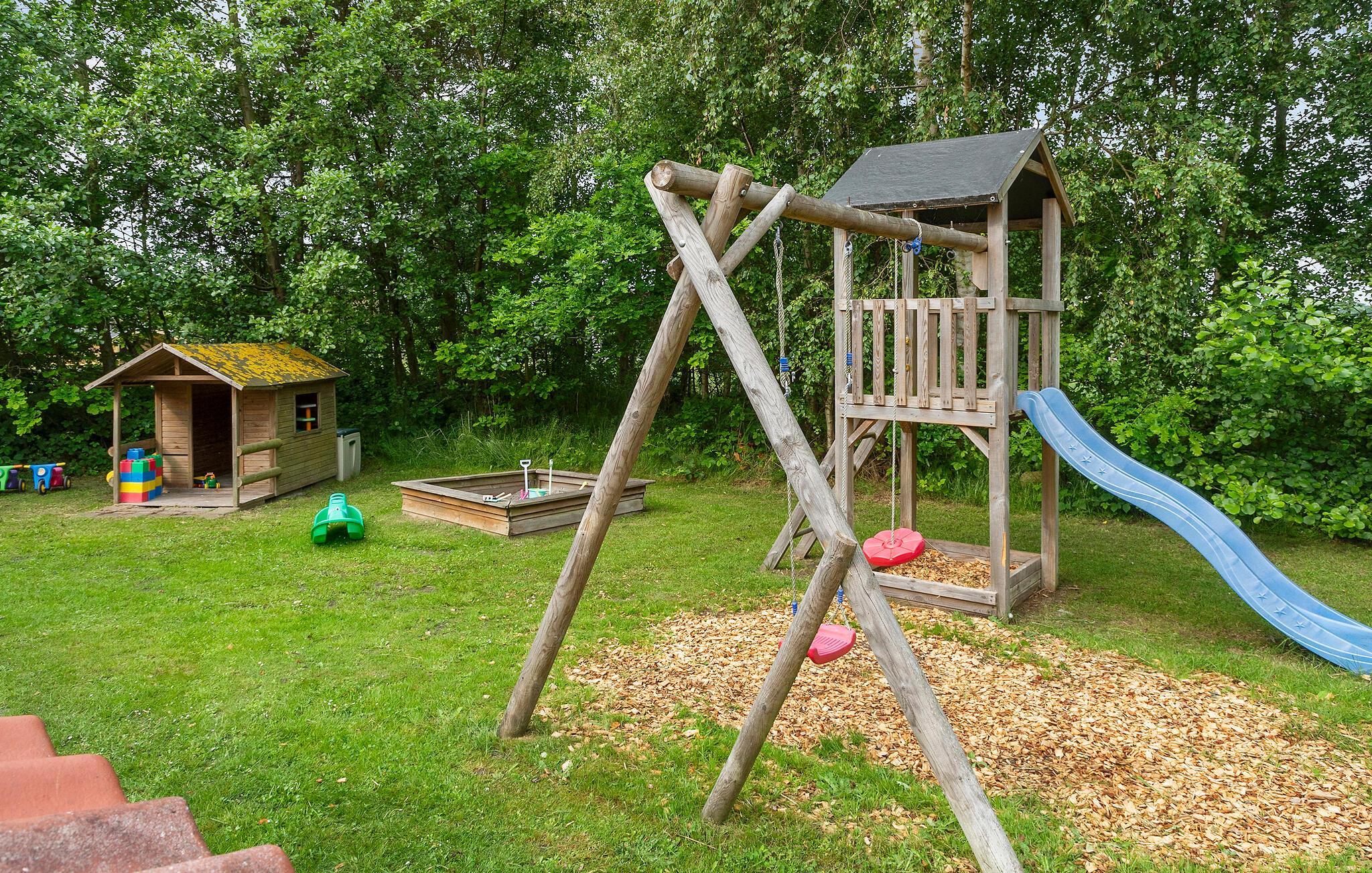 Die abgeschirmte Terrasse eignet sich gut zum Sonnen und Dinieren im Freien. Die Kinder haben im Garten Schaukel, Sandkasten, Fußballtor und ein Spielhaus.