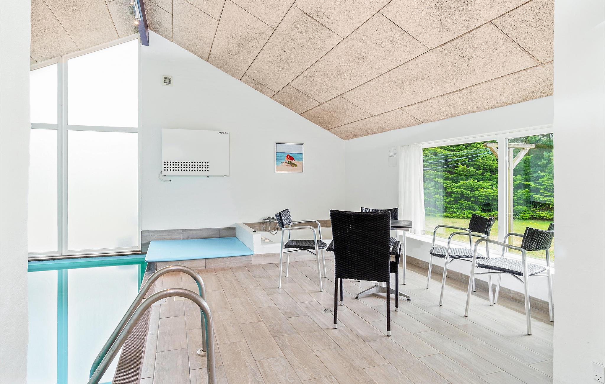 Schönes Ferienhaus bei Marielyst Strand. Das Haus ist nur 700 m vom schönen, kinderfreundlichen Strand entfernt. Offene Küche mit modernen Küchengeräten und in Verbindung zum Wohn- und Esszimmer. Vom großen Wohnzimmer aus haben Sie Zugang zum Poolbereich, der einen Swimmingpool, ein Badezimmer mit Sauna und einen Whirlpool für 2 Personen enthält. Es gibt auch ein weiteres Badezimmer im Haus. Vom Wohnzimmer aus haben Sie Zugang zu einer 80m² großen, offenen und überdachten Terrasse. Großes, geschlossenes Grundstück, auf dem Sie den Sommer in Ruhe genießen können. Das Haus wird mit Wärmepumpe und elektrischer Heizung beheizt. Dieses attraktive Ferienhaus liegt in der Nähe des Golfplatzes, des Golf- und Spaß- und Bowlingzentrums sowie vieler anderer Aktivitäten. Hier finden Sie auch Restaurants und Einkaufsmöglichkeiten.