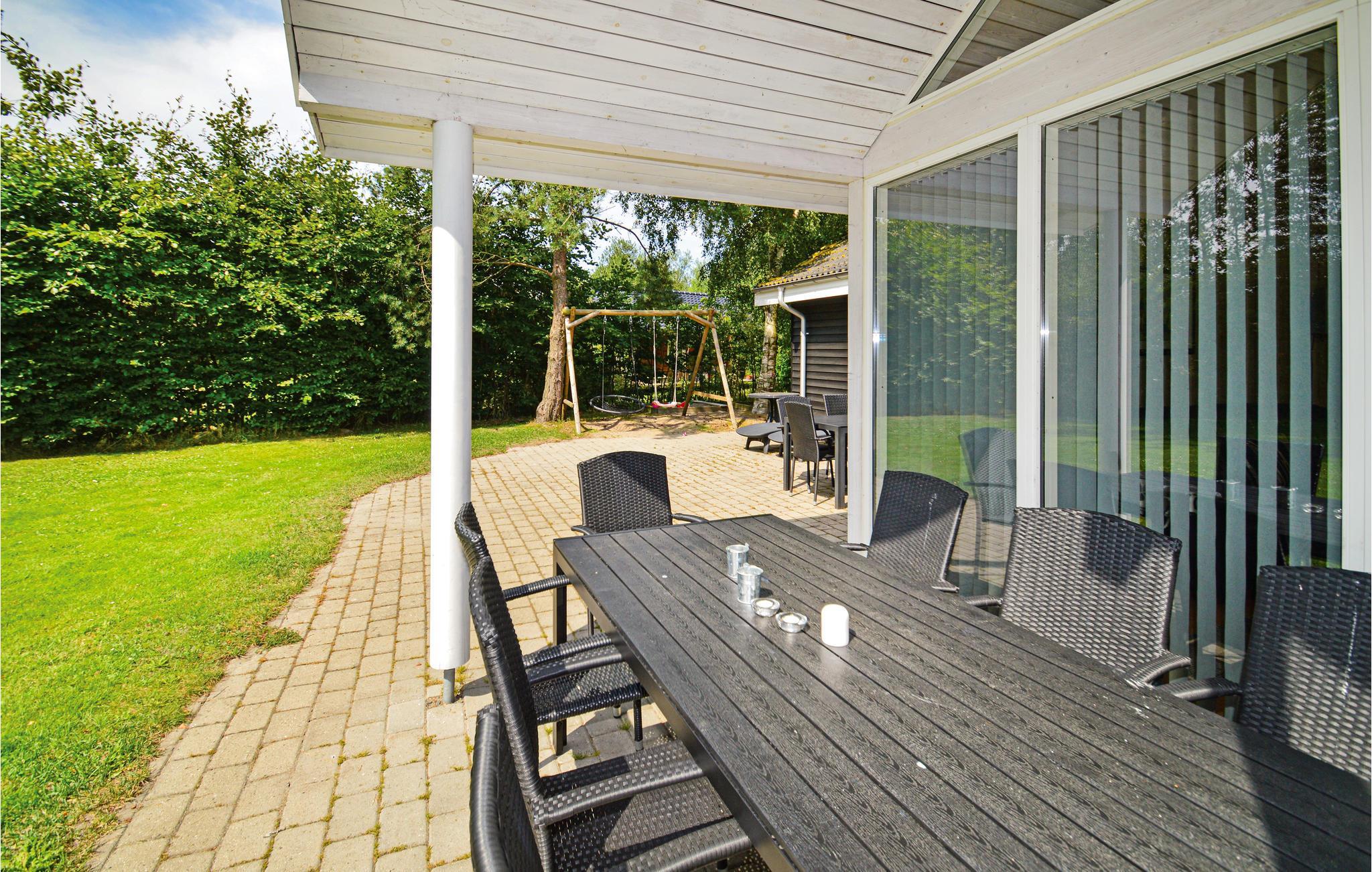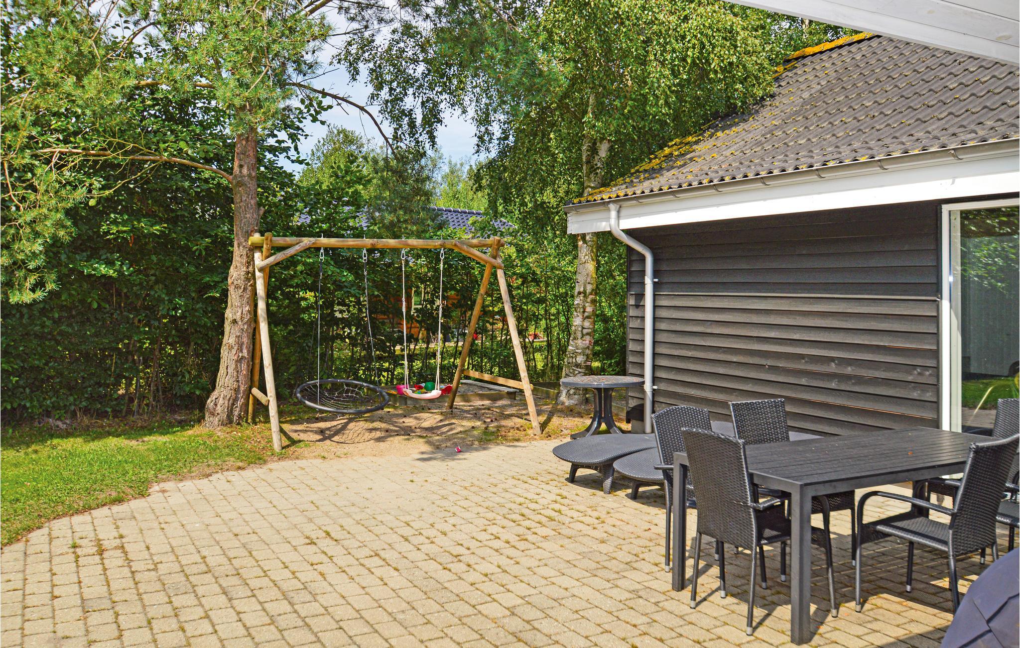 Das Haus liegt auf einem schönen Naturgrundstück mit Grünfläche, Schaukel und Sandkasten für die Kleinen. Auf der sonnigen Terrasse lässt sich gut sonnenbaden und abends macht das Grillen im Kreis der Familie Spaß.