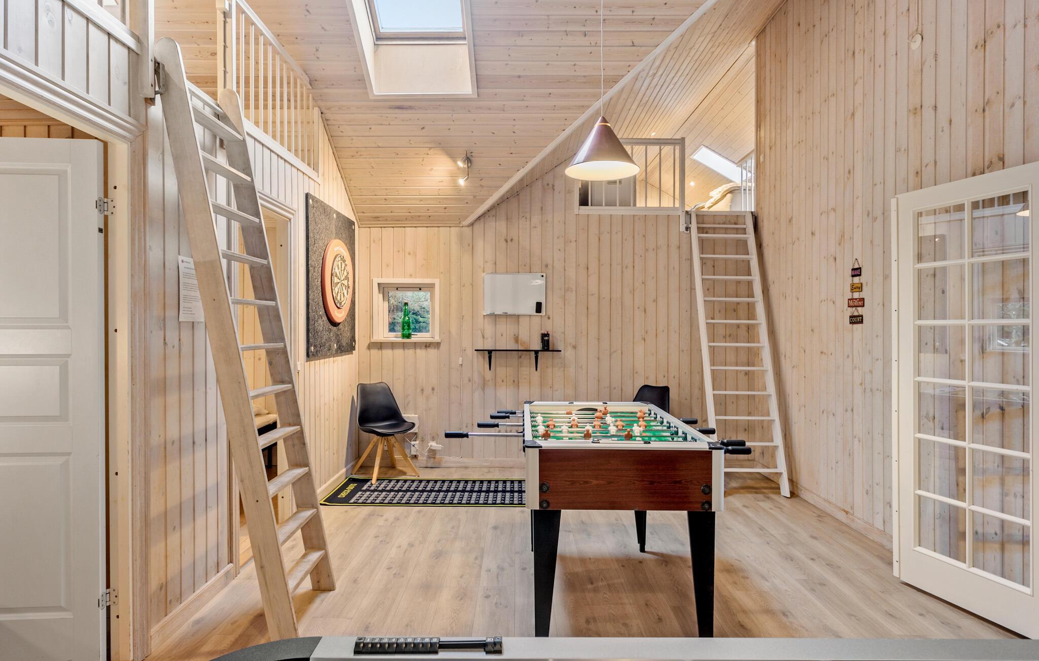 Im populären Marienlyst heißt Sie dieses ruhig gelegene Ferienhaus in Gehweite von Ortsmitte und Strand willkommen. Bis zu mehreren Familien finden im behaglich und praktisch eingerichteten Zimmern sowohl Platz als auch Komfort. Es sind auch zwei Schlafböden vorhanden. Nachdem Sie im Pool ein paar Runden gedreht haben, können Sie ihre Muskeln im Whirlpool massieren und in der Sauna total entspannen. Eines der beiden Badezimmer ist im Poolraum untergebracht. Im Aktivitätsraum können Sie sich gegenseitig zu unterschiedlichen Spielen herausfordern.