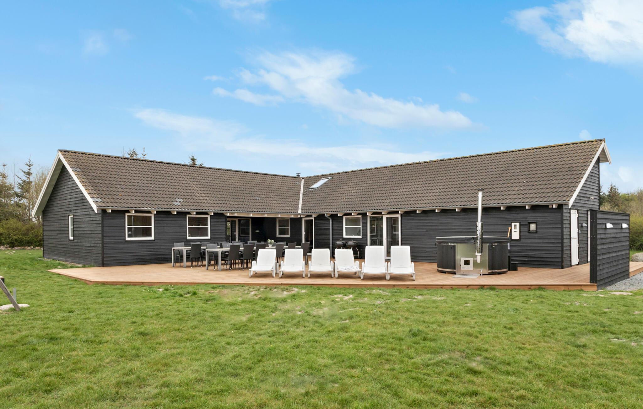 Erholen Sie sich auf der großzügigen Holzterrasse, auf der Sonnenliegen und das Finnische Holzbad zum Relaxen einladen. Lassen Sie die Kinder im Sandkasten oder auf dem Spielturm mit Rutsche spielen, während Sie am Grill das Abendessen zubereiten. Dank der geschützten Lage verbringen Sie hier ungestörte Stunden im Freien.