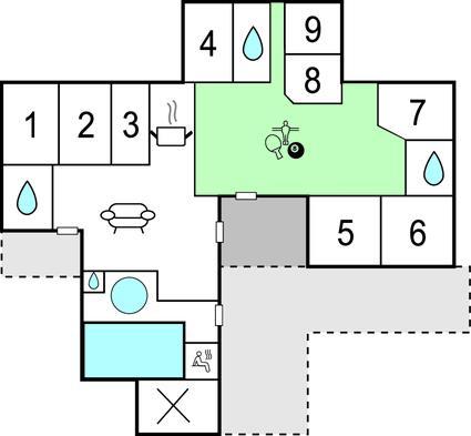 Verbringen Sie entspannte Urlaubstage in diesem Ferienhaus, das speziell auf größere Familien oder Freundesgruppen ausgerichtet ist. Freuen Sie sich auf ein durchdachtes Raumkonzept, viel Platz und abwechslungsreiche Freizeitangebote, ideal zu jeder Jahreszeit. Treten Sie ein in den offenen Wohnbereich mit hohen Holzdecken, Kaminofen und mehreren gemütlichen Sitzecken. Spielen Sie gemeinsam eine Runde Tischkicker, Billard oder Tischtennis im Aktivitätsraum oder genießen Sie das Zusammensein am langen Esstisch. Bereiten Sie in der modernen Küche Ihre Lieblingsgerichte zu oder entspannen Sie im Whirlpool nach einem Bad im Pool mit Rutsche. Auch eine Sauna steht Ihnen zur Verfügung.