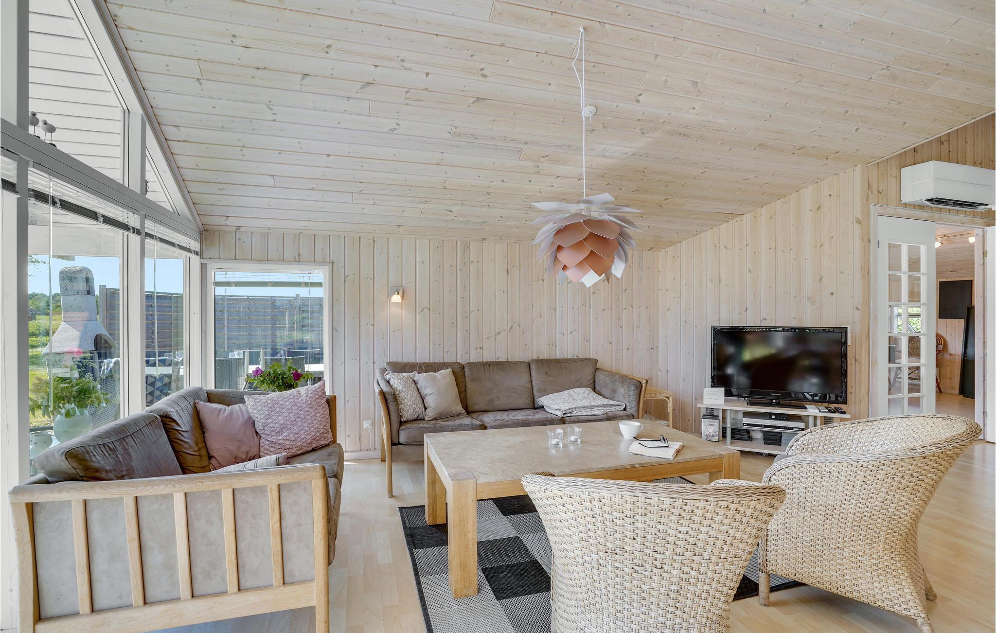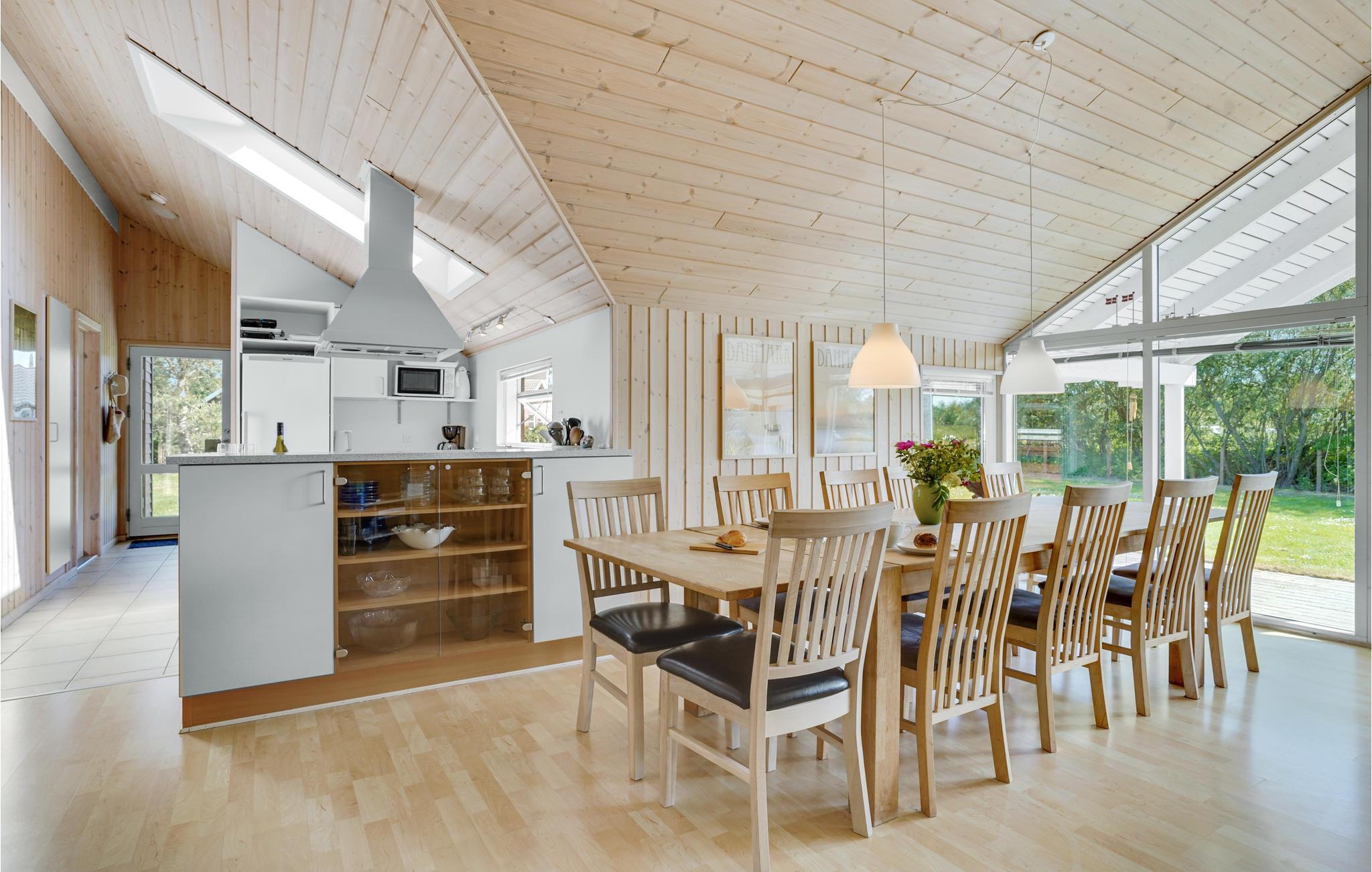 Das Haus ist in klassischem, hochwertigen skandinavischen Stil eingerichtet und bietet Ihnen innen wie außen verschiedene Wohlfühlorte. Der natürliche zentrale Treffpunkt ist das offene Wohnzimmer mit Küche, wo Sie zusammenkommen, essen, plaudern und Urlaubspläne schmieden. Durch eine große Fensterfront blicken Sie heraus in den großen Garten, wo Sie es sich auf der Terrasse mit Grill gemütlich machen können. Hier sitzen Sie bei gutem Wetter lange beisammen und erfreuen sich an der frischen Seeluft. Im Garten lässt es sich bestens mit den Kindern herumtoben. Nach einem aktiven Tag ist die Sauna oder die Infrarotsauna der perfekte Ort, um sich zu entspannen und abzuschalten.