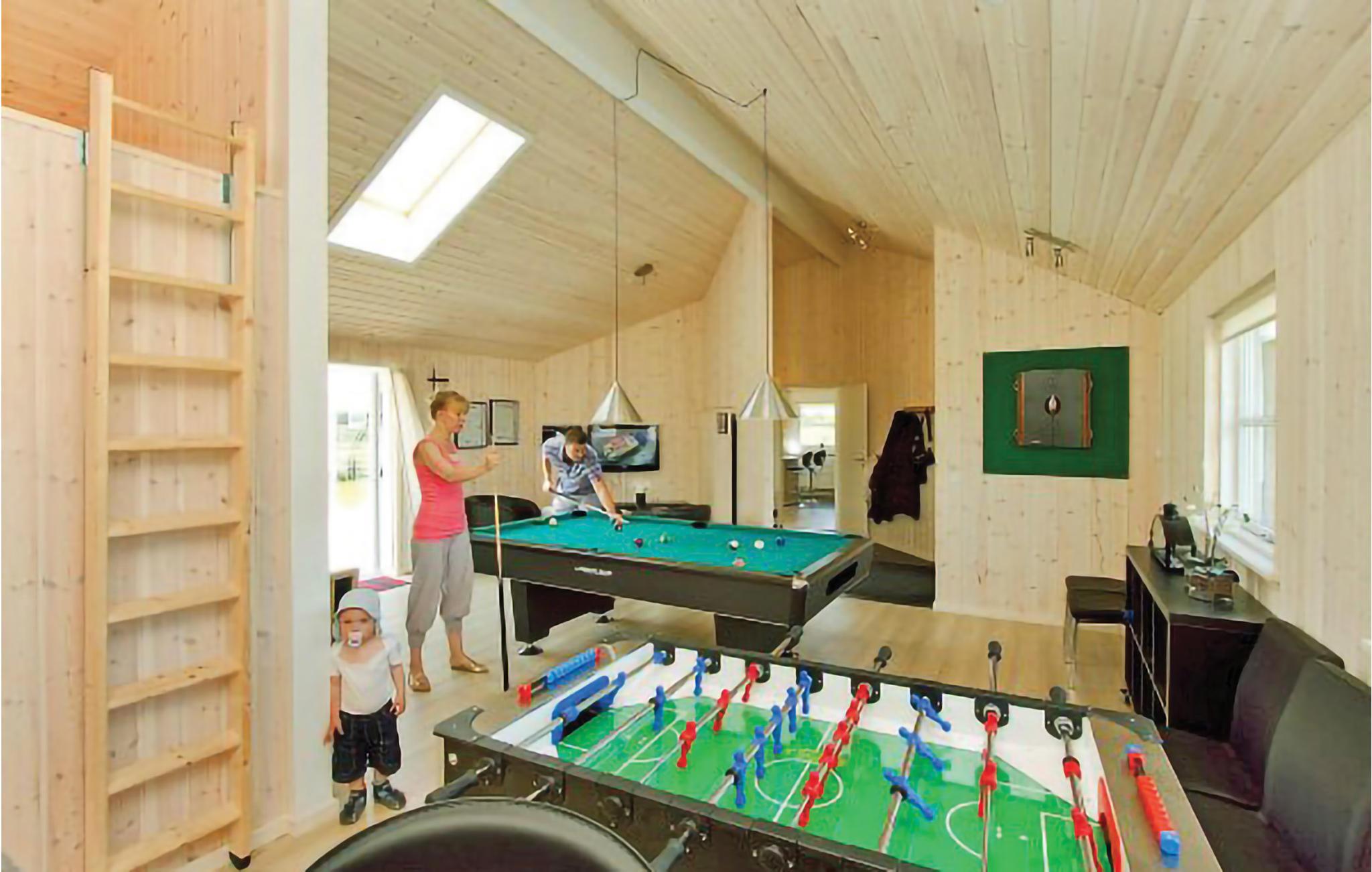 Egal welcher Altersgruppe Sie angehören, Marielyst hat Ihnen viel zu bieten. Vielleicht möchten Sie am breiten, weißen Strand an der sanften Ostsee in der Sonne dösen, oder in den Geschäften der Stadt bummeln? Drehen Sie ein paar Runden im schönen Pool, entspannen Sie im Whirlpool und spielen Sie freundschaftliche Urlaubswettkämpfe am Billard- oder Tischtennistisch. Ganz behaglich haben Sie es auch in der großen Wohnküche, nicht zuletzt aufgrund des Kaminofens. Neben den Schlafzimmern gibt es auch Schlafplätze auf den Schlafböden. Drei Badezimmer sorgen auch für wenig Gedränge am Morgen. Hier können Sie im Freien gleich auf mehreren Terrassen sich wohlfühlen und Energie tanken. Im Sommer haben Sie im Garten auch ein großes Trampolin. Willkommen!
