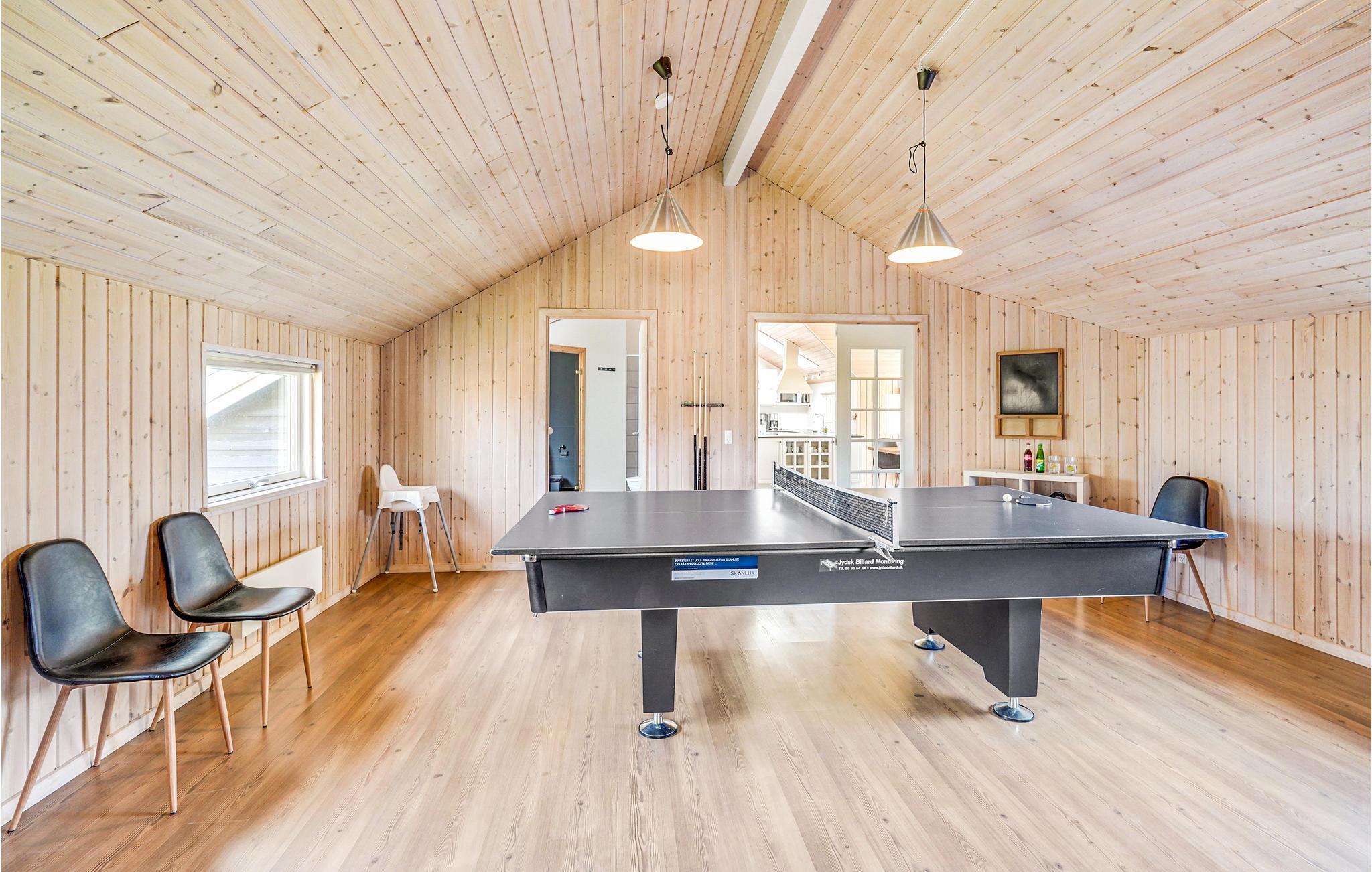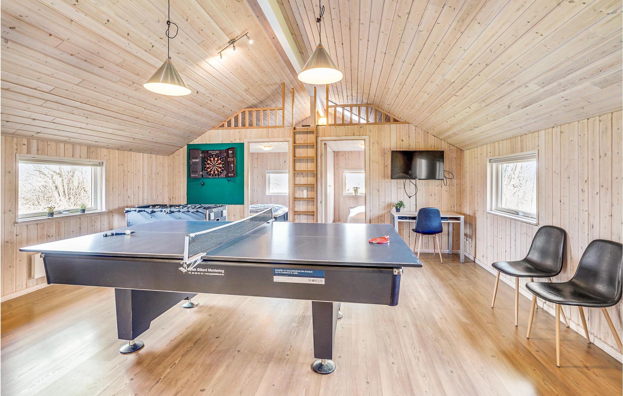 Wenn Sie vom Haus zum Strand wollen, dann brauchen Sie nur ein paar Schritte zu laufen, schon sind Sie am herrlich kinderfreundlichen Sandstrand angelangt. Das Haus ist gut und modern eingerichtet. Im Herzen von ihm befindet sich die große Wohnküche, hier werden sich alle versammeln und über Urlaubserlebnisse plaudern oder es sich vor dem Kaminofen und Fernseher gemütlich machen. Eines der Badezimmer hat einem Whirlpool für 4. Zum Aktivsein gibt es Billard und Tischtennis. Der Garten und die Terrasse ist herrlich zum Relaxen und Spielen.