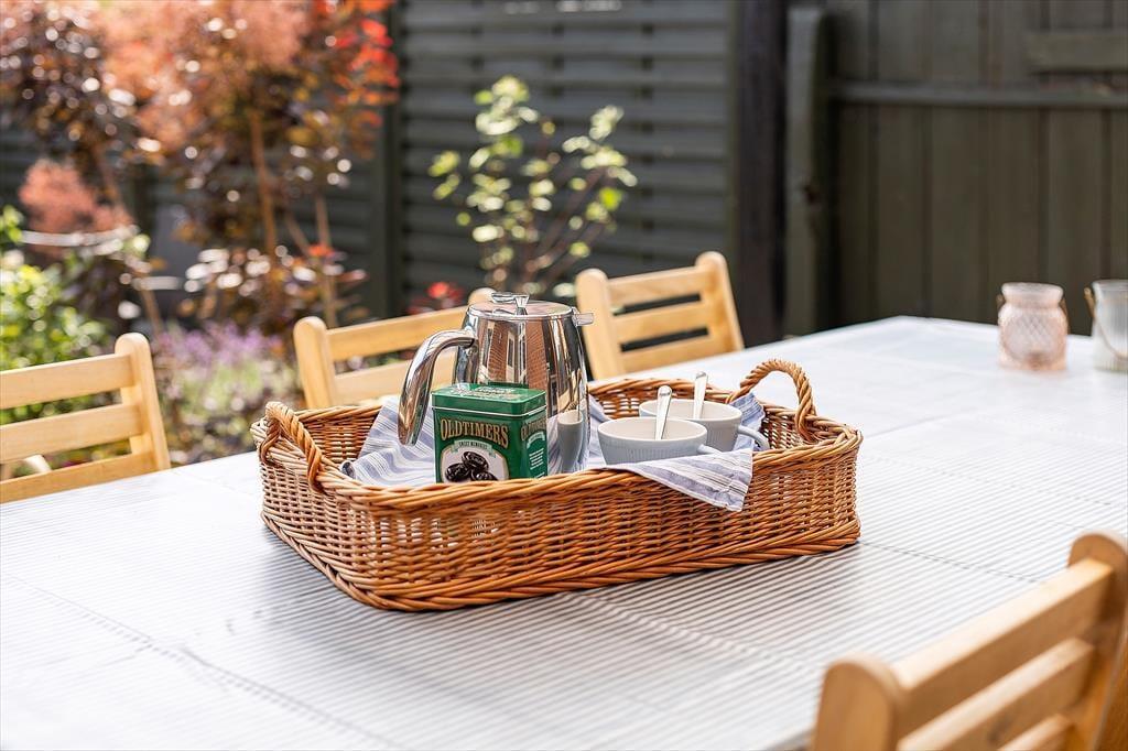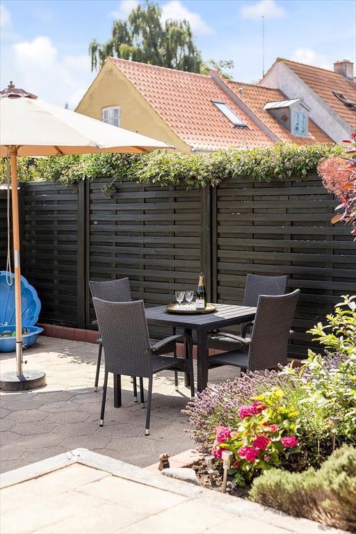 Im Außenbereich erwartet Sie ein ruhiger, geschlossener Innenhof – perfekt zum Entspannen in der Sonne – sowie eine überdachte Terrasse mit Gartenmöbeln, auf der Sie lange, helle Abende genießen können. Und wenn der Hunger kommt, zünden Sie einfach den Grill im Garten an und lassen Sie den Duft des Sommers sich verbreiten.