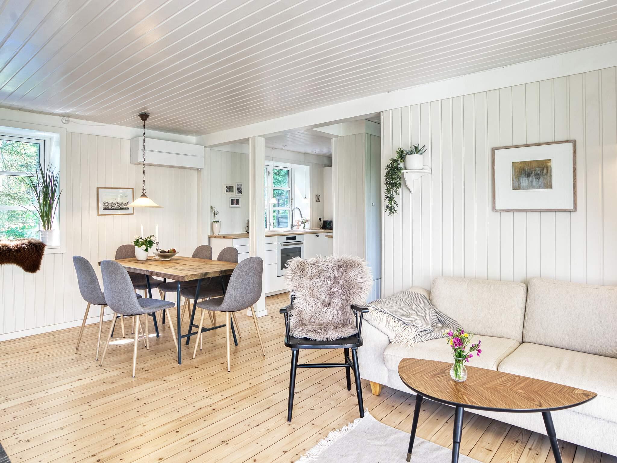 Dieses charmante Ferienhaus auf einem erhöhten Naturgrundstück empfängt Sie mit einem weiten Blick auf die Landschaft aus jedem Fenster und vermittelt ein Gefühl von Ruhe und Naturverbundenheit. Der offene Küchen- und Wohnbereich ist das Herzstück des Hauses und wurde für Familien konzipiert. Hier fließen Gespräche ebenso fließend wie das durch die Fenster einfallende Licht. Eine moderne Wärmepumpe sorgt für klimafreundlichen Komfort, während der gemütliche Holzofen an kühleren Abenden zum gemütlichen Beisammensein einlädt. Ein kürzlich hinzugefügter Anbau mit hohen Decken und viel Licht erweitert den Wohnraum und verleiht dem Haus eine helle, luftige Atmosphäre.