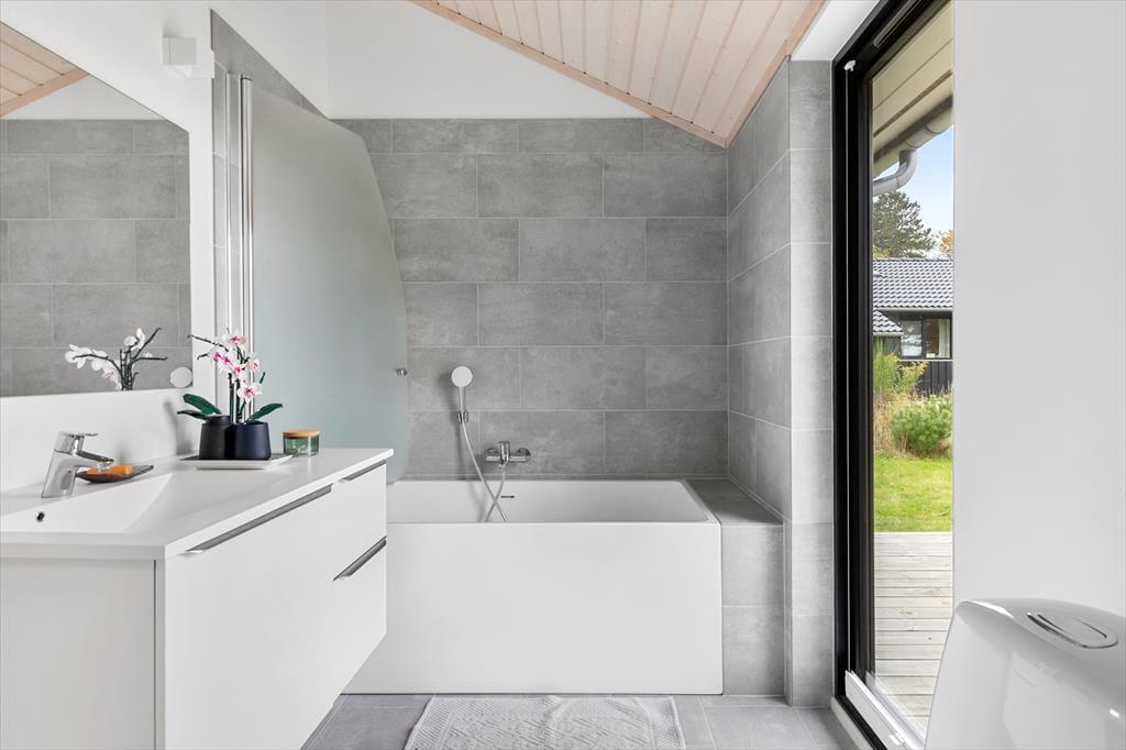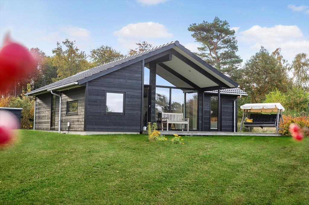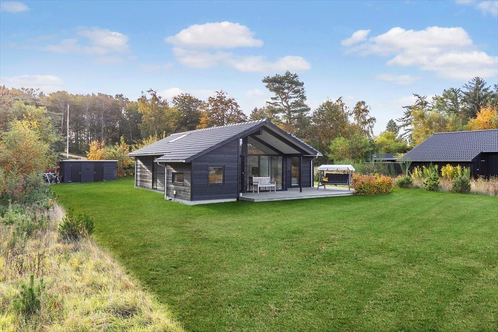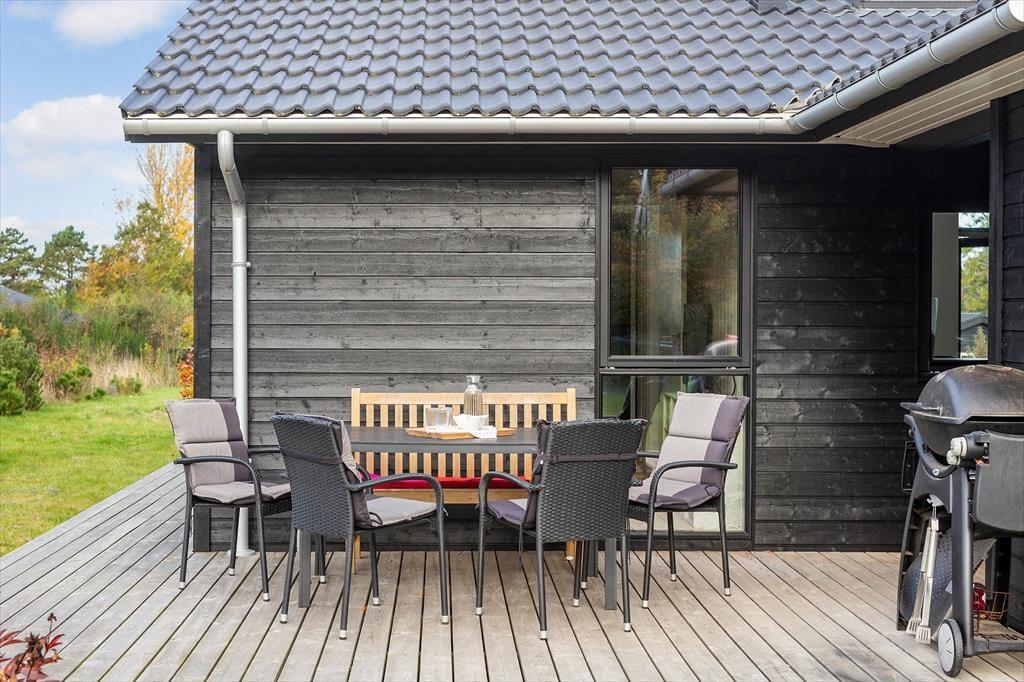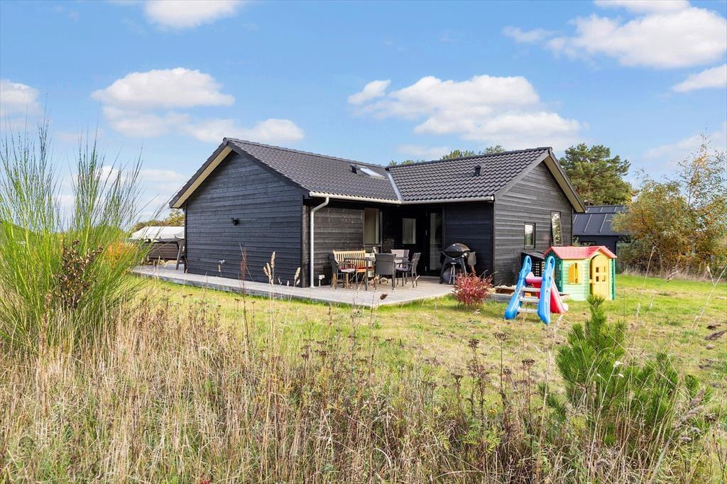 Das Ferienhaus liegt auf einem großen, grünen Grundstück mit viel Platz zum Spielen, Entspannen und Genießen der Natur. Terrassen auf beiden Seiten des Hauses ermöglichen es Ihnen, die Sonne den ganzen Tag über zu genießen – vom ersten Morgenkaffee bis zum Abendessen vom Grill. Auf dem überdachten Teil der Terrasse sitzen Sie windgeschützt und können trotzdem die Natur um sich herum erleben, während die Kinder im Garten spielen.