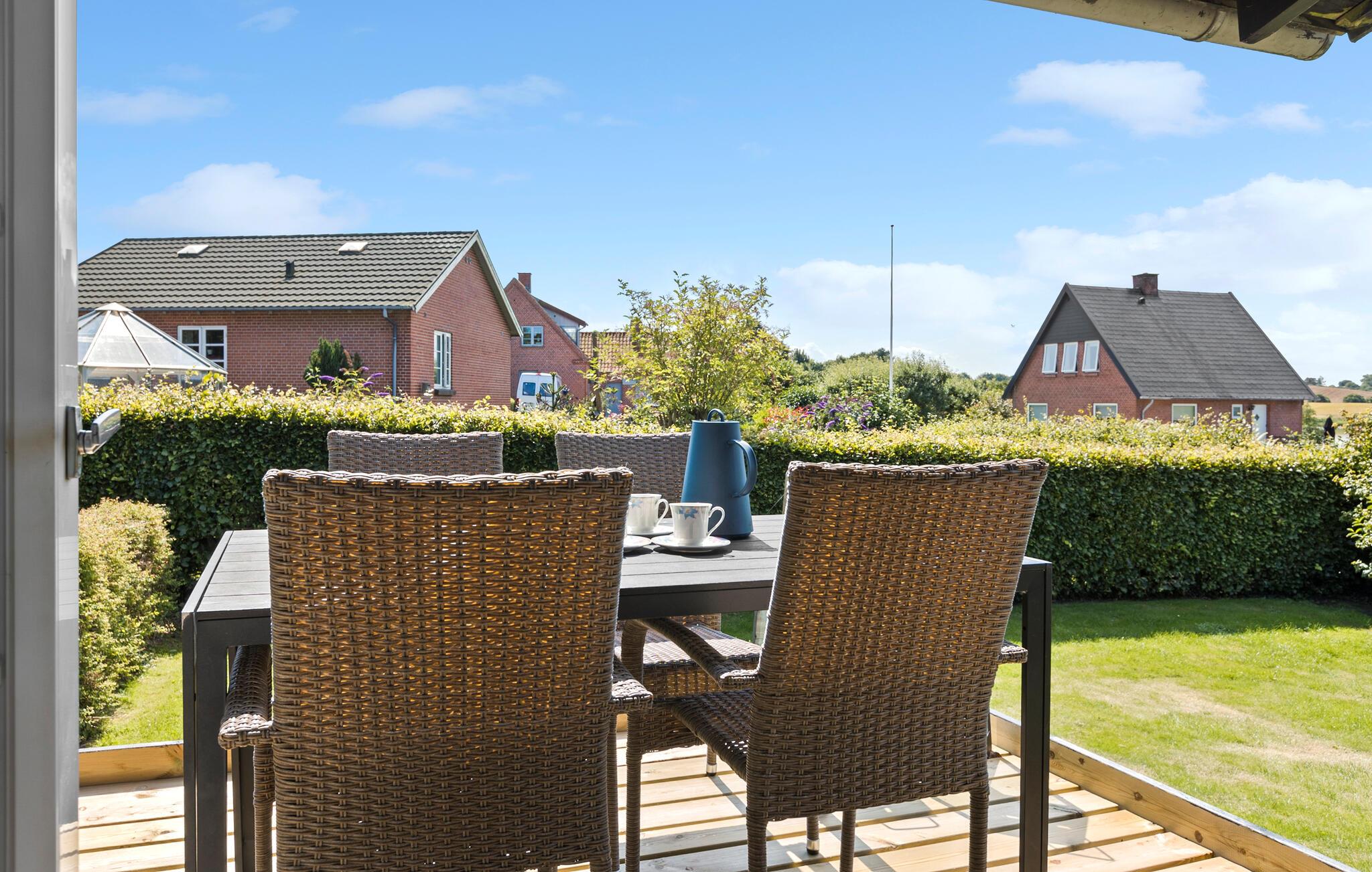 Verbringen Sie auch entspannte Stunden auf der großen Terrasse, die ideal ausgestattet ist für Mahlzeiten im Freien. Genießen Sie den weiten Blick über die Dächer der Nachbarschaft und die bezaubernde Landschaft, die den Mjels Sø umgibt. Schließen Sie den Tag mit einem Glas Wein im Freien ab und lauschen Sie der Natur.