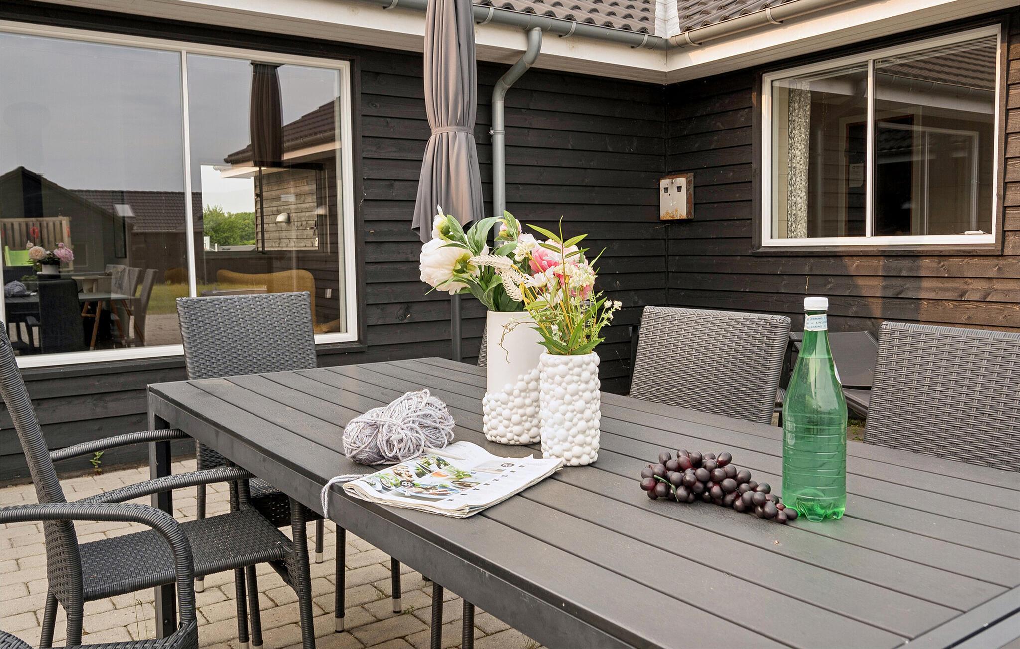 Verbringen Sie bei schönem Wetter den Urlaub im Garten und genießen Sie die Sonne auf der Terrasse mit Gartenmöbeln. Dank der Schaukel und des Trampolins wird es auch draußen nicht langweilig.
