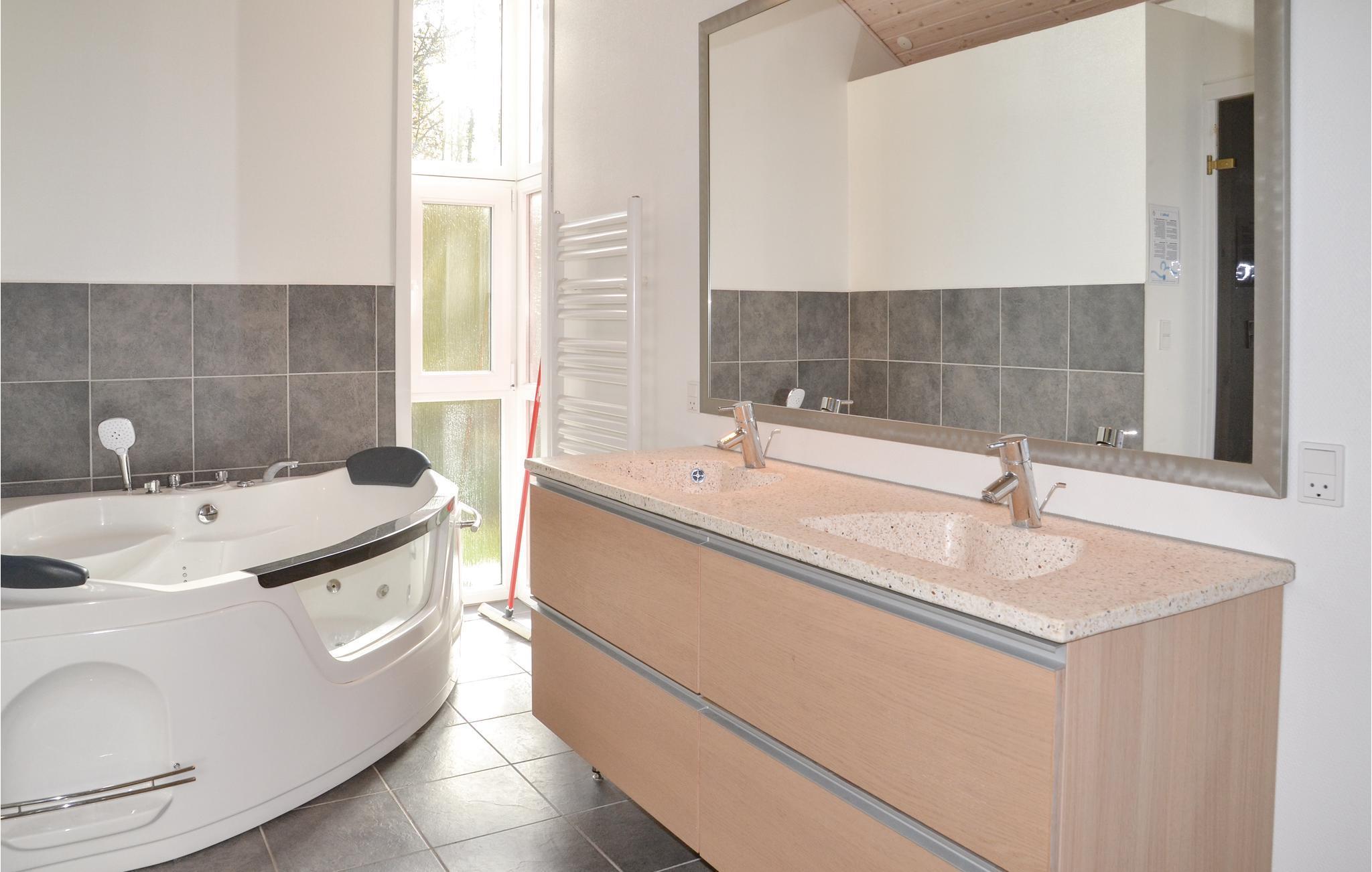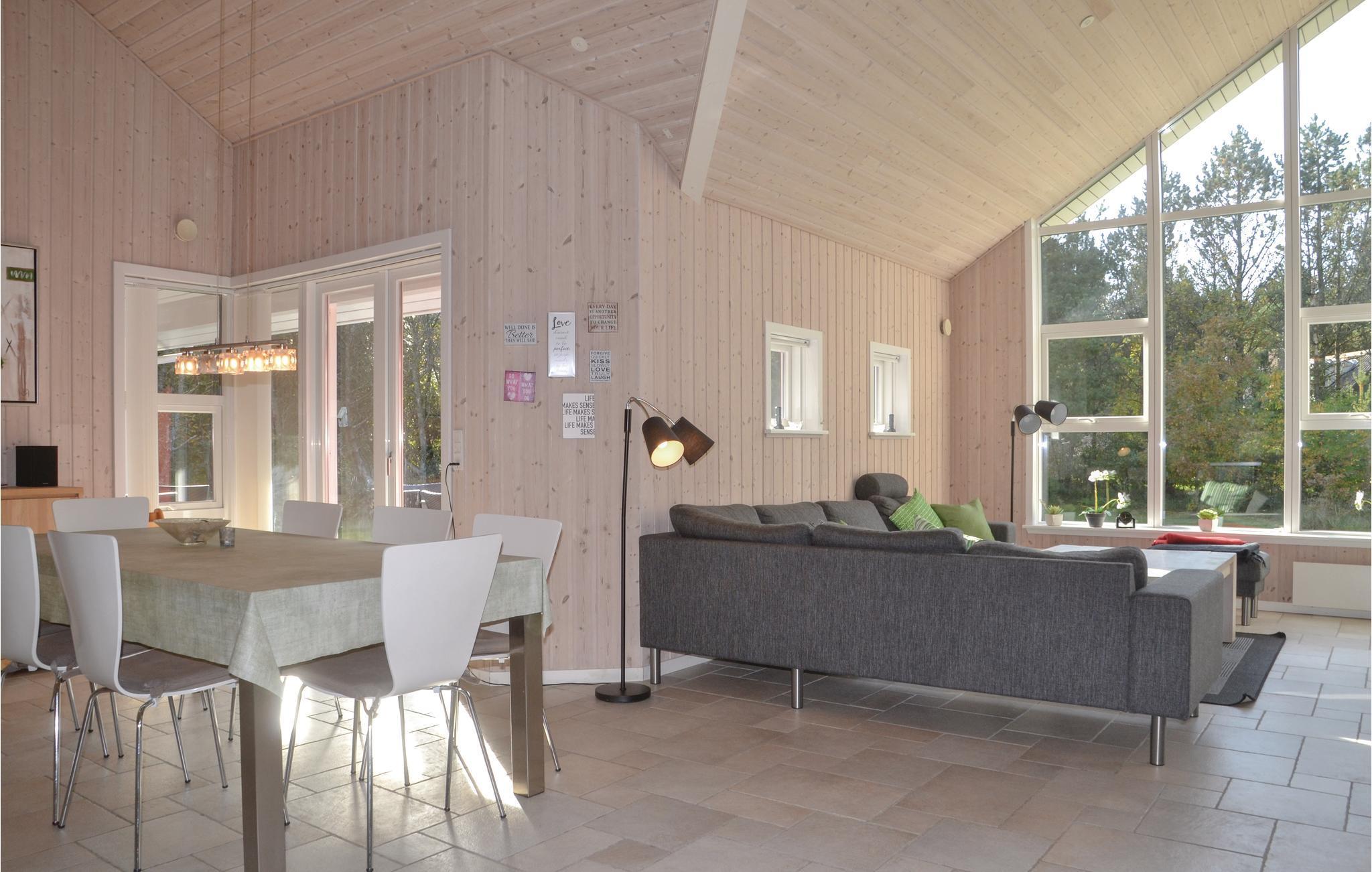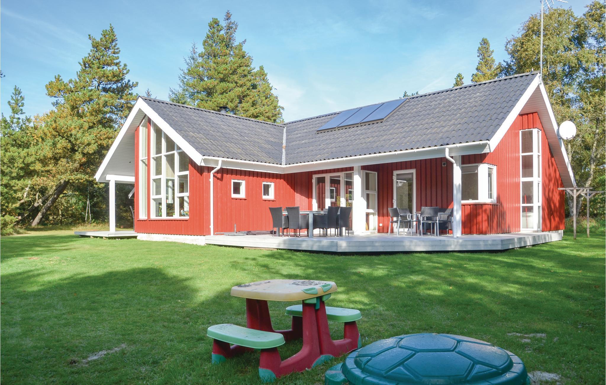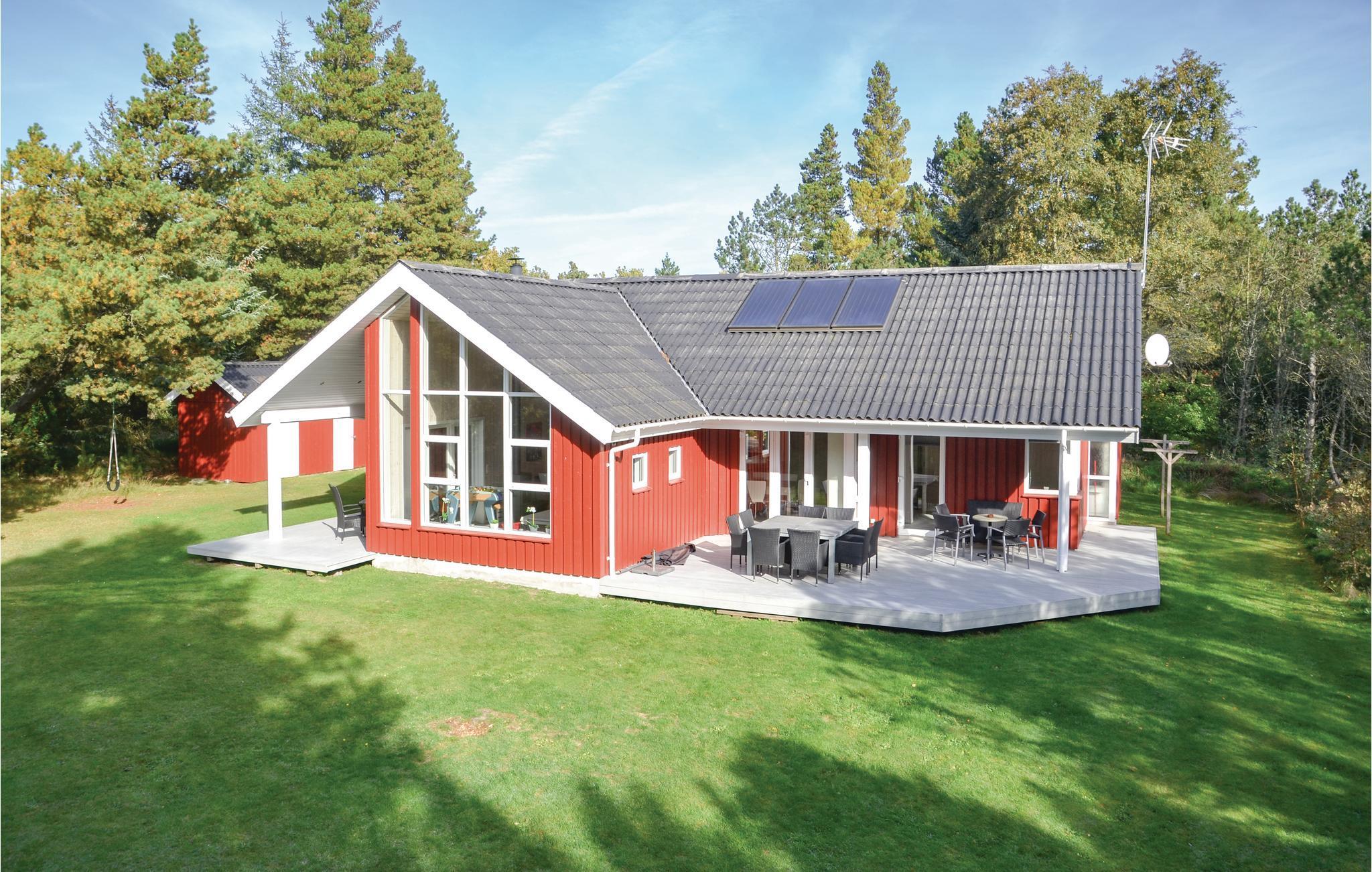 Schönes Ferienhaus mit Solarheizung in dem gemütlichen und naturschönen Gebiet Mosevrå. Es ist sehr gut für zwei Familien geeignet und mit einem Badezimmer mit Whirlpool und Sauna eingerichtet. In der geräumigen Küche/Mehrzweckraum ist u.a. ein amerikanischer Kühlschrank zu finden. Große Fenster bieten Aussicht auf das Naturgrundstück, wo es Platz für Aktivitäten im Freien gibt. Die Umgebung hat einige Aktivitäten, Golfplätze, Radwege und einen Put & Take See zu bieten. Direkt vor der Tür kann Rotwild vorbeispazieren. Bei Vejers Strand können Sie Ihr Auto mit an den Strand nehmen. In der Bucht von Ho gibt es viele gute Angelstellen. Nahe beim Haus liegen auch Wege für Mountainbikes.