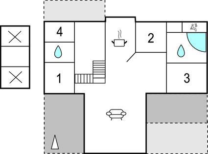Badezimmer (nr. 1) - WC. Warmes und kaltes Wasser. Dusche