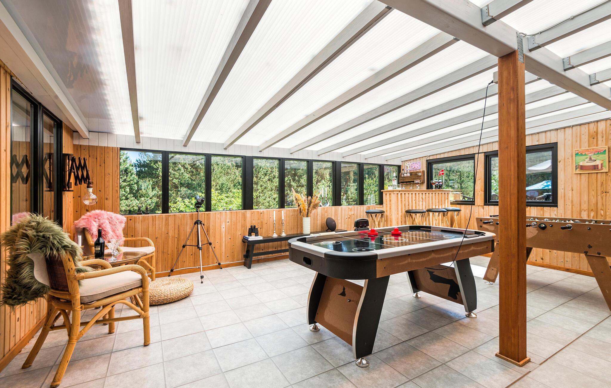 Geräumiges Ferienhaus in Oksbøl mit Schwimmbad, Sauna und vielfältigen Spielmöglichkeiten für Familien und Gruppen.