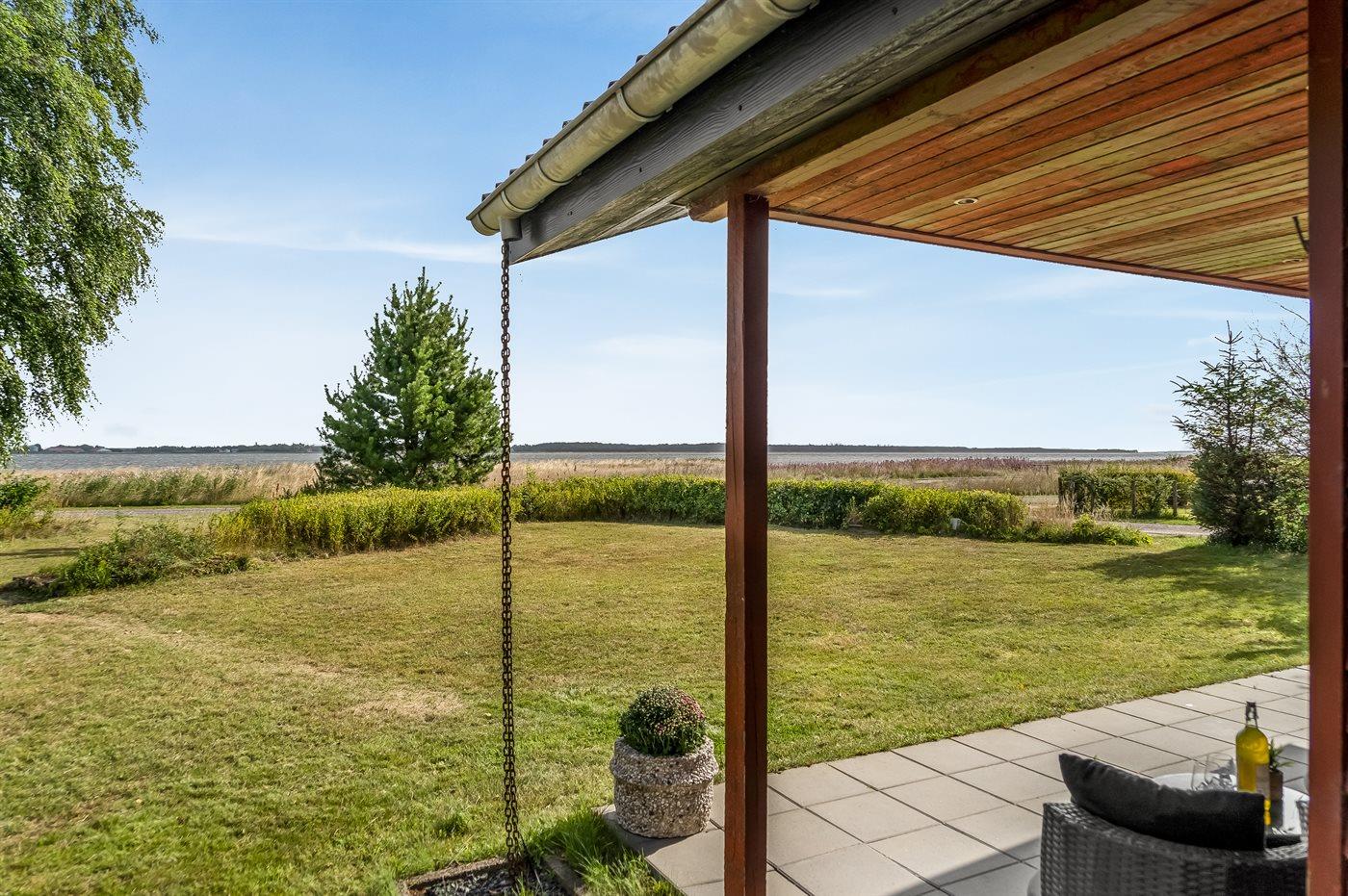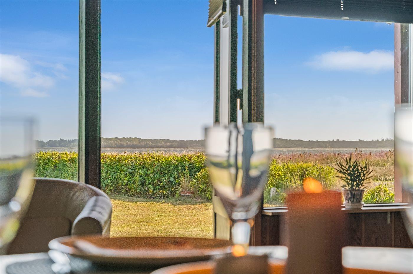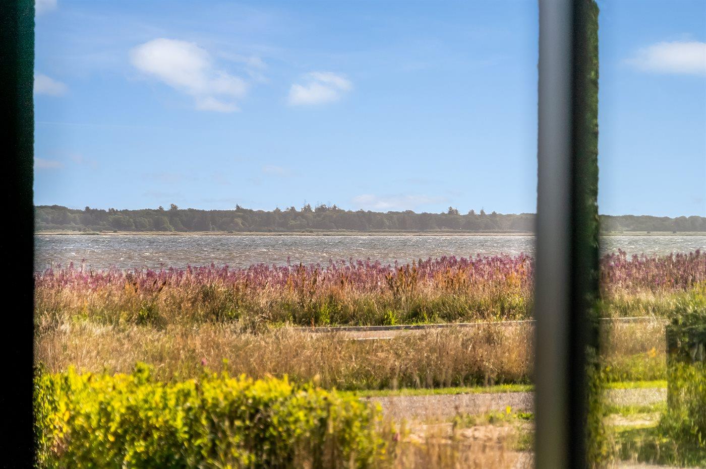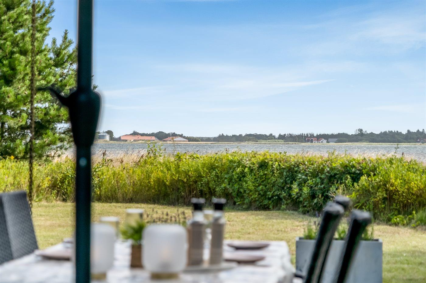 Ganz außergewöhnlich gut gelegenes Ferienhaus nur 75 m von dem Limfjord entfernt. Vom Wohnzimmer und überdachter Terrasse gibt es Panoramablick über das Wasser.