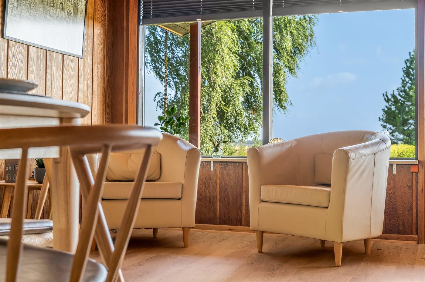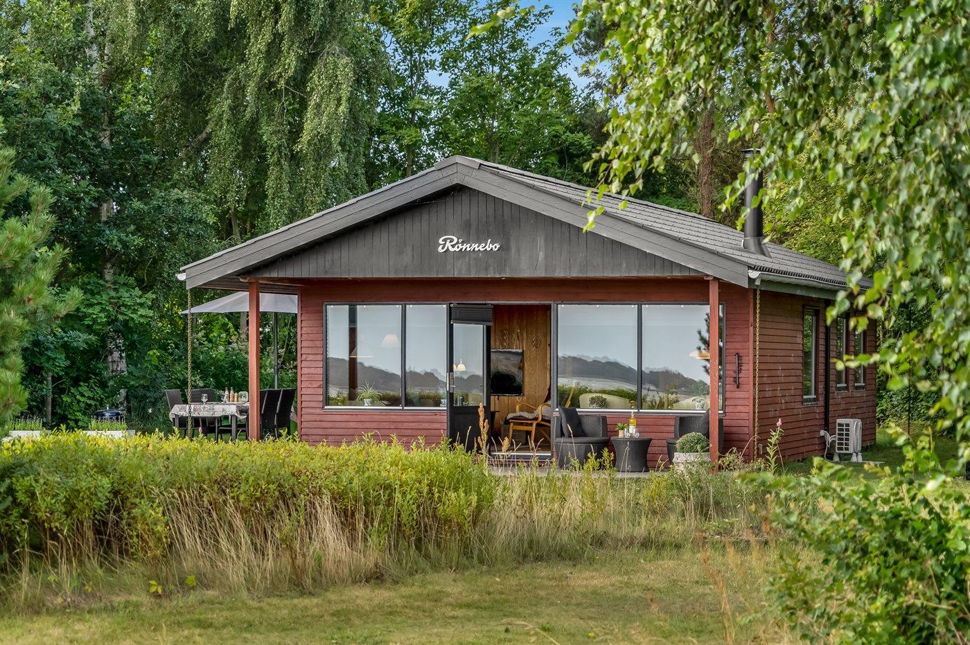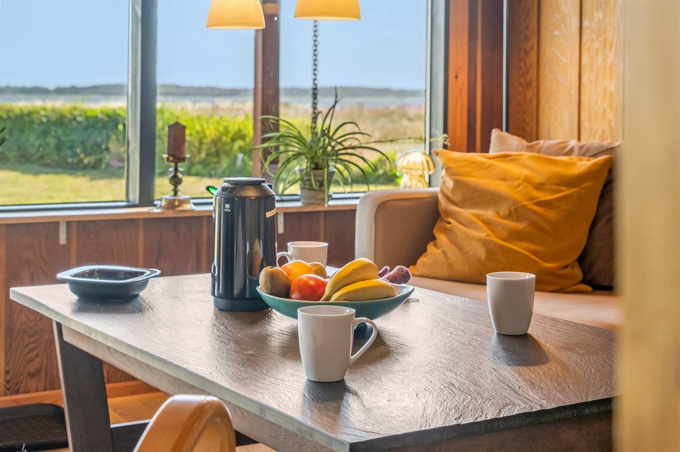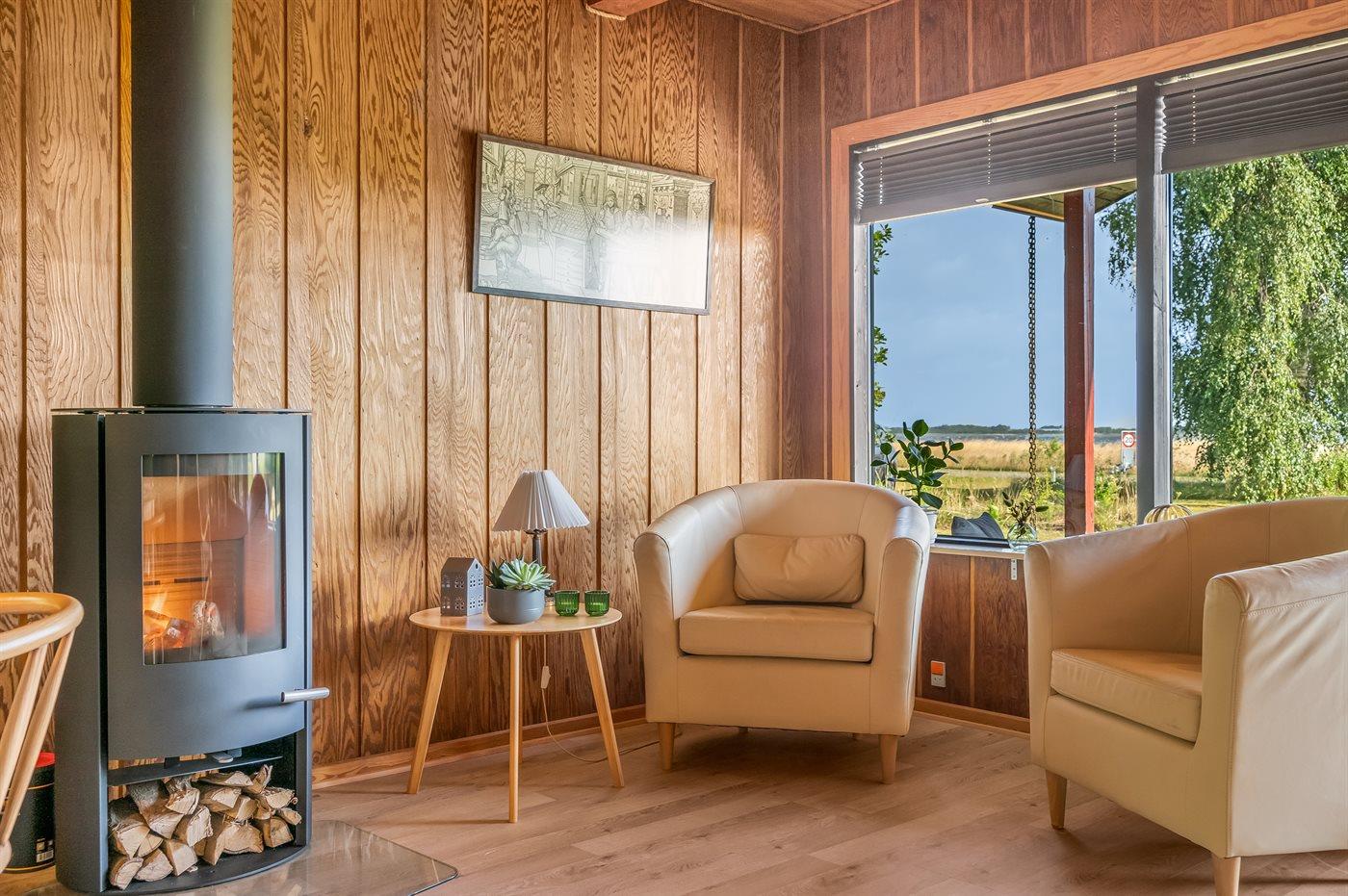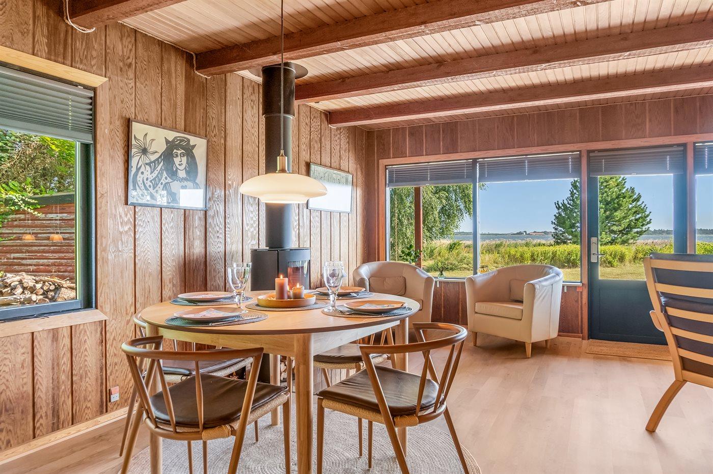 Ganz außergewöhnlich gut gelegenes Ferienhaus nur 75 m von dem Limfjord entfernt. Vom Wohnzimmer und überdachter Terrasse gibt es Panoramablick über das Wasser.