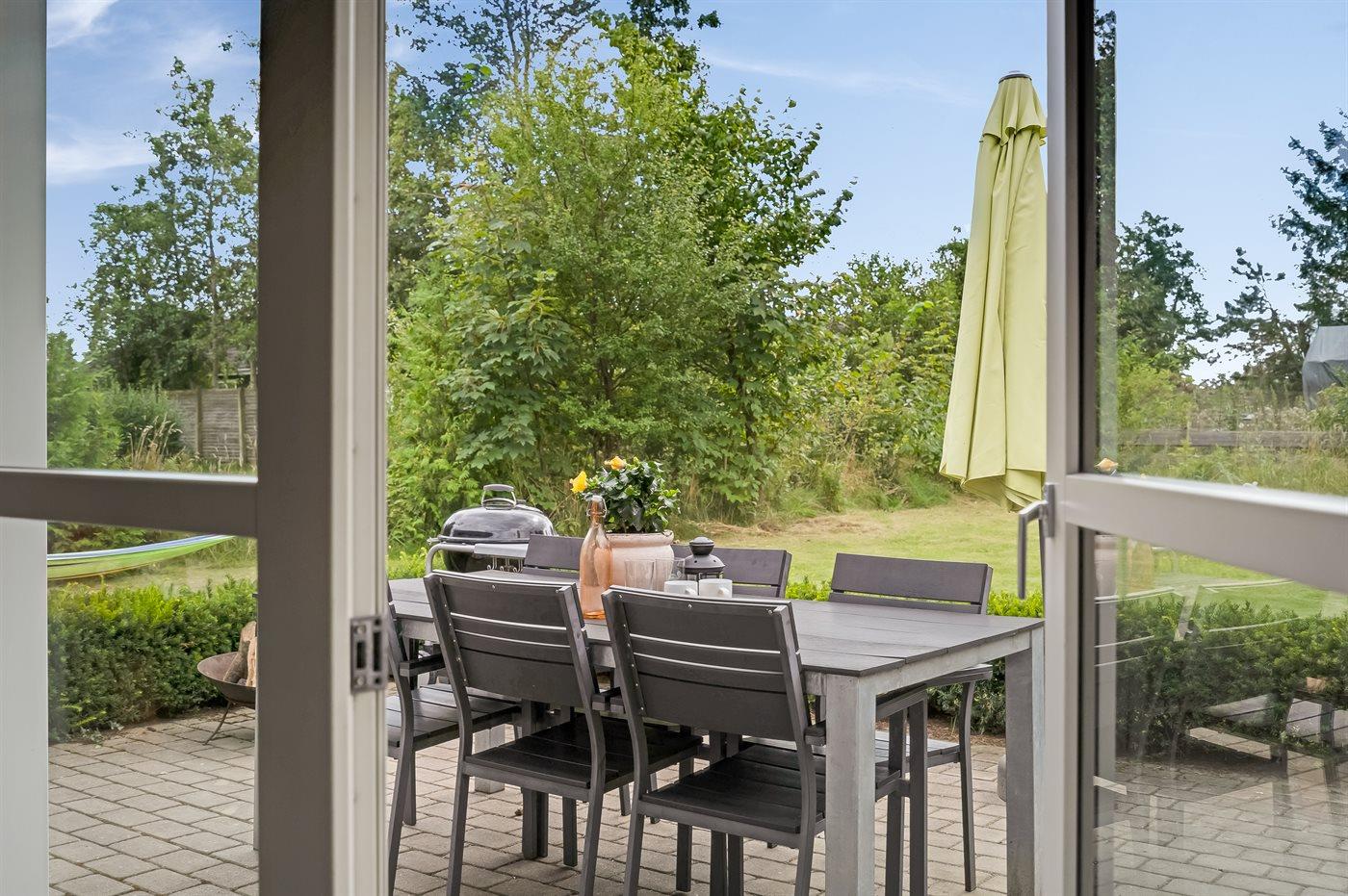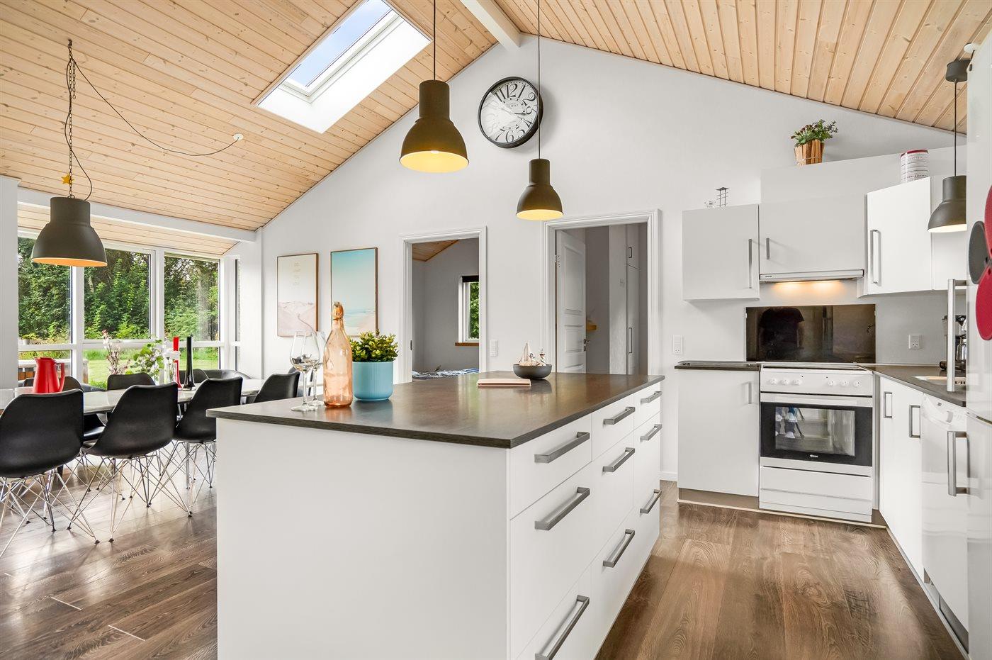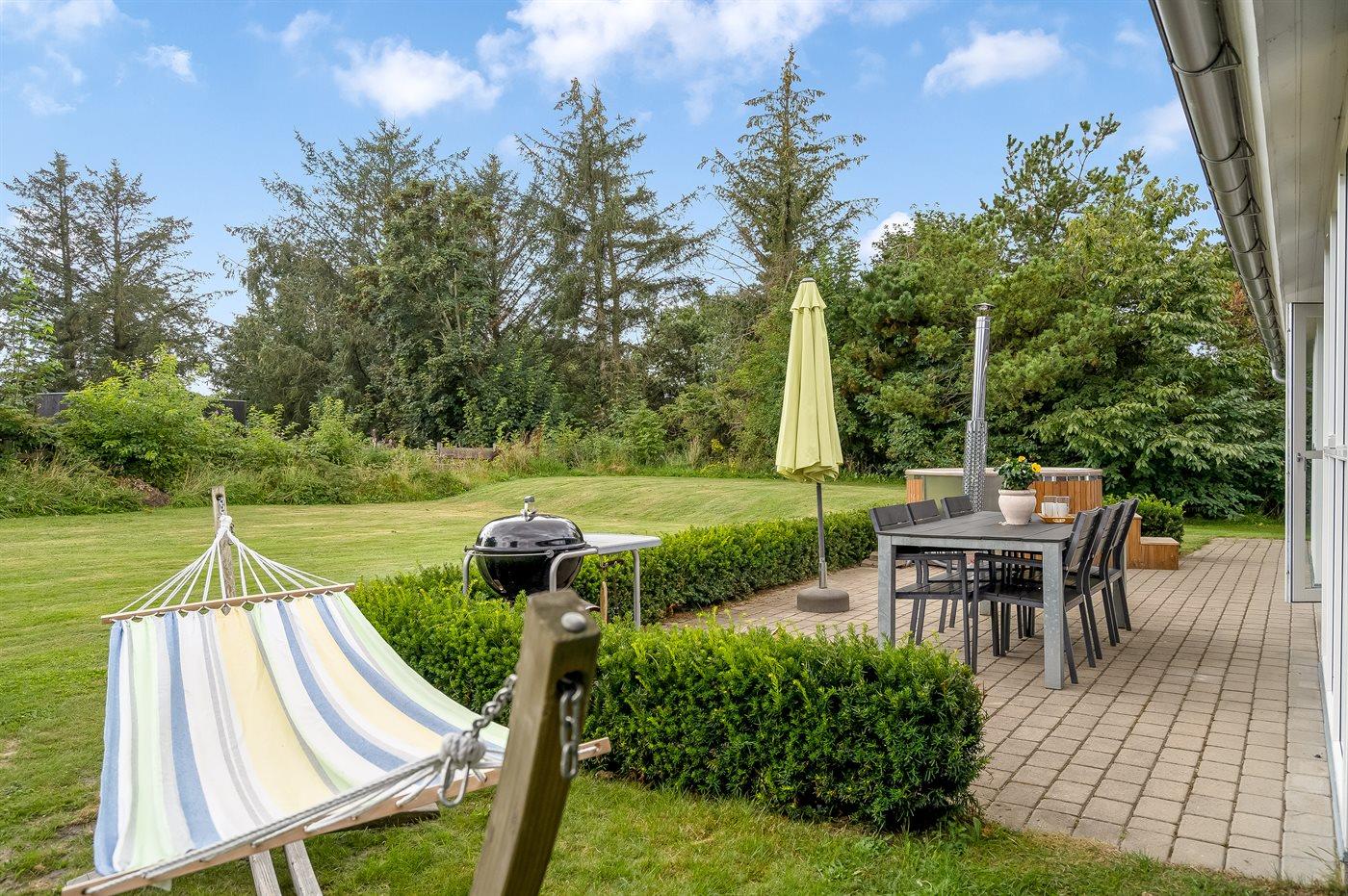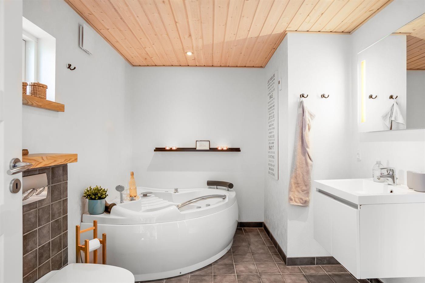 Das Haus bietet Platz für die ganze Familie und die vierbeinigen Freunde und zeichnet sich durch eine moderne Küche und ein Badezimmer mit einem herrlichen Whirlpool aus. Es gibt eine schöne Terrasse mit direktem Zugang vom Wohnzimmer. Das Grundstück ist eingezäunt, und selbst die kühlen Abende können im Freien genossen werden, wenn man in das große Badefass mitten auf der Terrasse steigt.