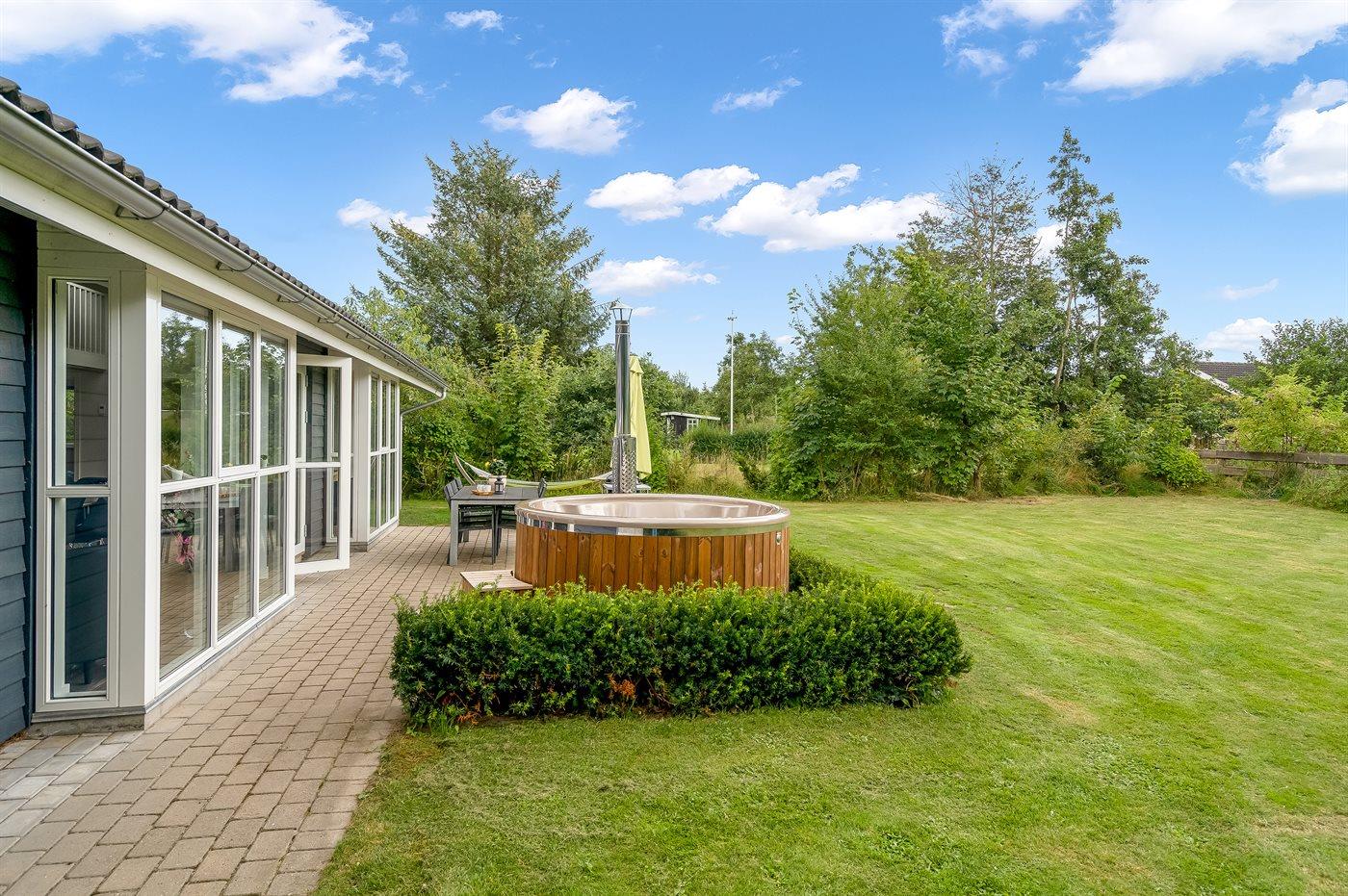 Modernes Ferienhaus in Storvorde mit Whirlpool, großer Terrasse und eingezäuntem Garten für erholsame Tage.
