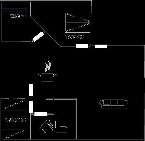 Die Schlafplätze verteilen sich auf 3 Schlafräume. 2 Schlafplätze in Einzelbetten. 2 Schlafplätze in einem Etagenbett.2 Schlafplätze in elektrisch verstellbaren Betten.
