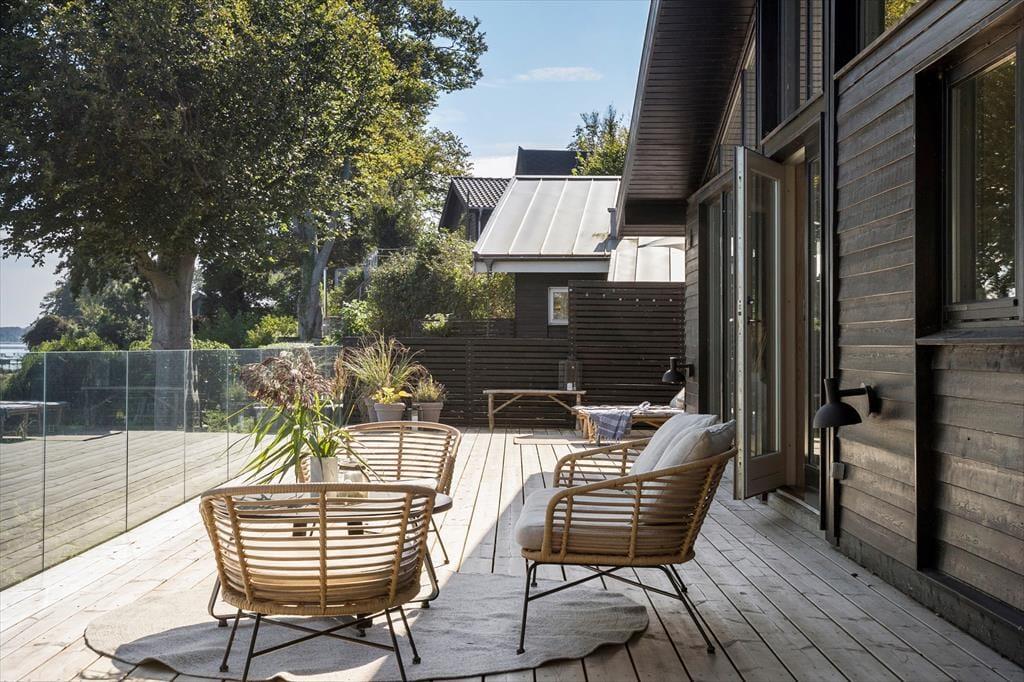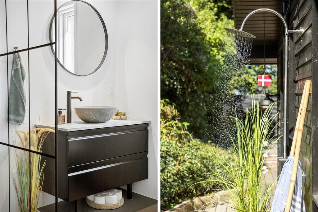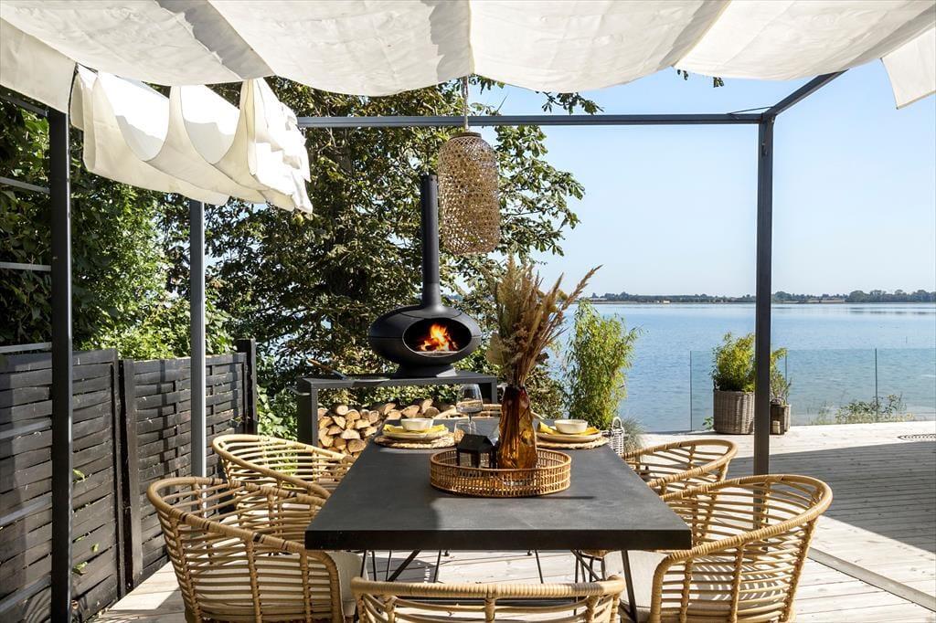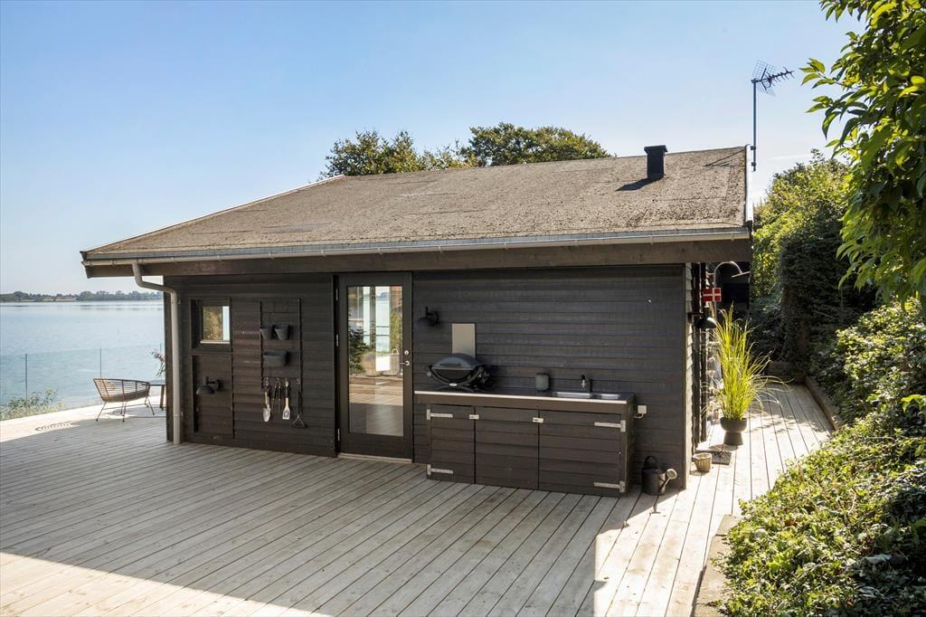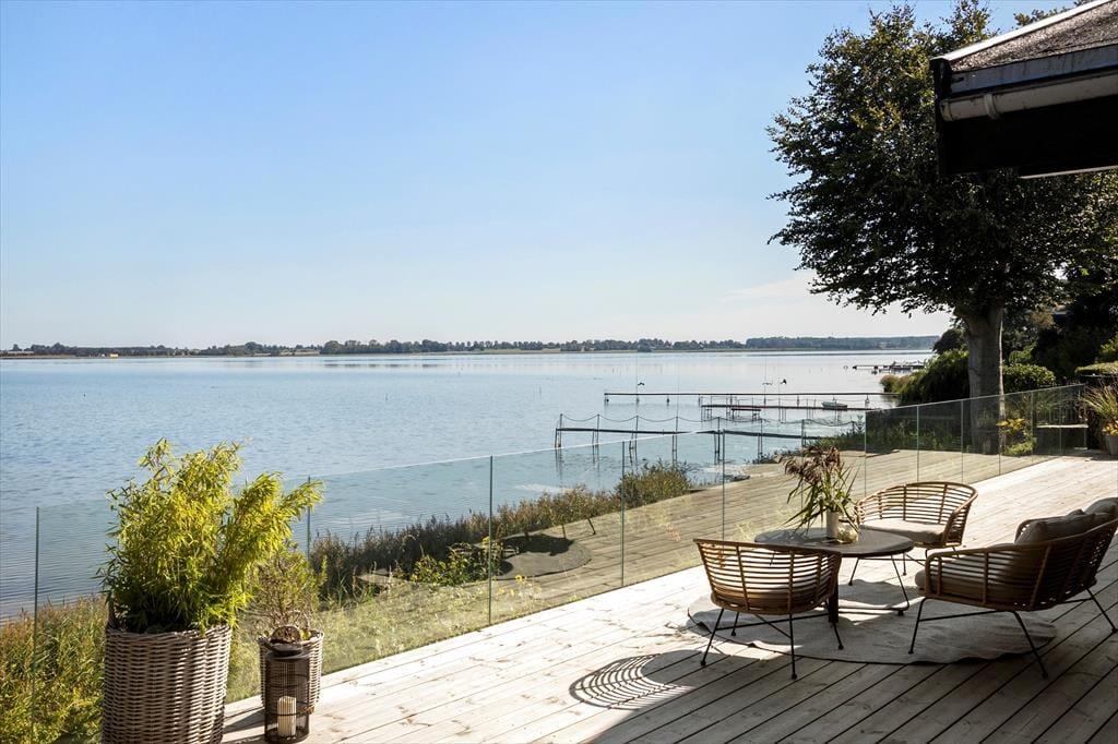Im Außenbereich bietet das Ferienhaus eine beeindruckende 180 m² große Holzterrasse, die das ganze Haus umgibt. Hier kannst du sowohl Sonne als auch Schatten finden, je nachdem, was du bevorzugst. Die Terrasse ist der ideale Ort, um den Tag mit einer Tasse Kaffee zu beginnen, während du den grandiosen Ausblick über den Kerteminde Fjord genießt. Am Abend kannst du den Grill anfeuern und das Abendessen zubereiten, während du den Sonnenuntergang über dem Wasser beobachtest. Der Garten rund um das Haus ist eine friedliche Oase, in der du dem Vogelgesang lauschen und die Ruhe auf dich wirken lassen kannst. Es gibt viel Platz zum Spielen und Entspannen, und die Terrasse lädt zu gemütlichen Stunden unter freiem Himmel ein.
