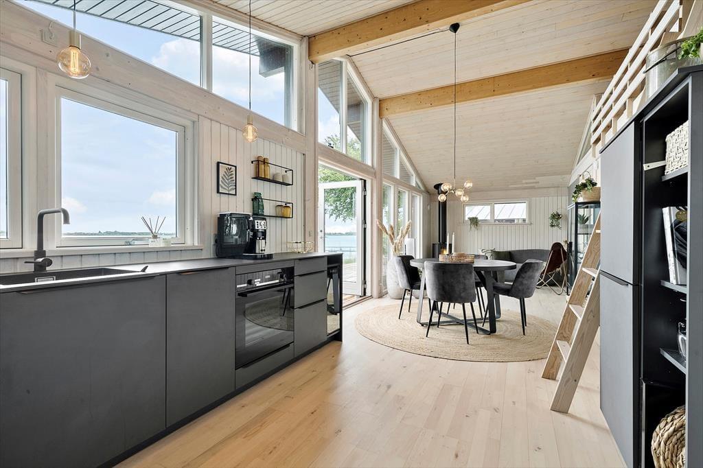 Wenn du dieses renovierte Ferienhaus betrittst, wirst du sofort von einem hellen und modernen Interieur empfangen. Das geräumige Wohnzimmer des Hauses ist mit komfortablen Möbeln ausgestattet, die zu Entspannung und gemütlichen Momenten einladen. Große Fensterpartien sorgen für einen natürlichen Lichteinfall und bieten dir gleichzeitig einen atemberaubenden Blick auf den Fjord. Die Küche ist hochmodern und mit allem ausgestattet, was du zur Zubereitung köstlicher Ferienmahlzeiten benötigst, die du im Essbereich genießen kannst, wo die ganze Familie zusammenkommen kann. Die Schlafzimmer sind mit Fokus auf Komfort und Ruhe eingerichtet, sodass du nach einem erlebnisreichen Tag eine erholsame Nacht verbringen kannst.