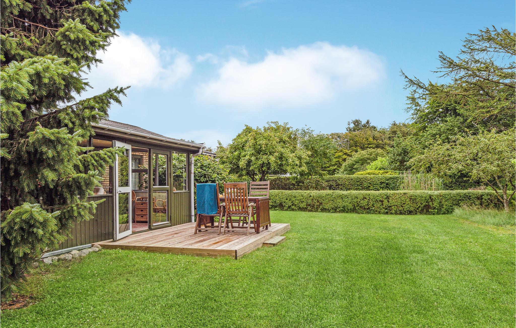 Modernes Ferienhaus mit winterfestem Komfort und eingezäuntem Garten in Mygdal, Dänemark.