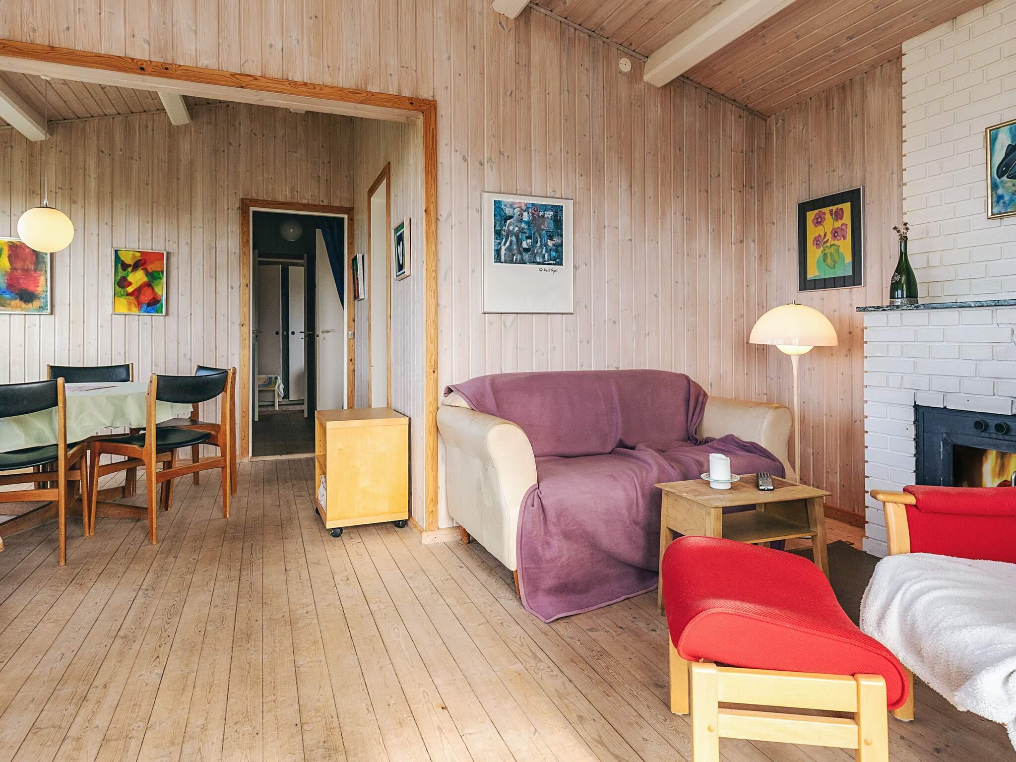 Sommerhuset rummer desuden tre soveværelser, et lille køkken, badeværelse og en fordelingsgang.