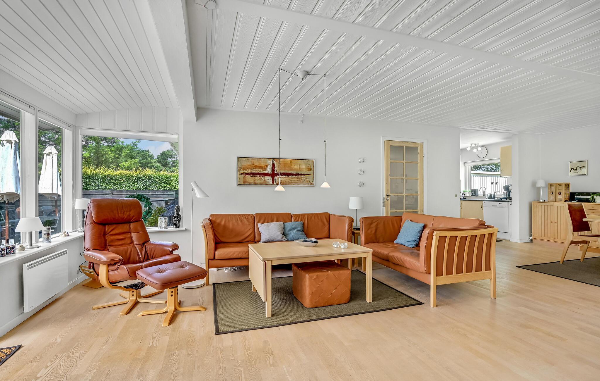 Im Inneren des Ferienhauses erwarten Sie drei Schlafzimmer, ein Badezimmer, eine Küche und schöne Wohnbereiche. Der Kaminofen sorgt hier an kühlen Tagen für Wärme und Gemütlichkeit.
