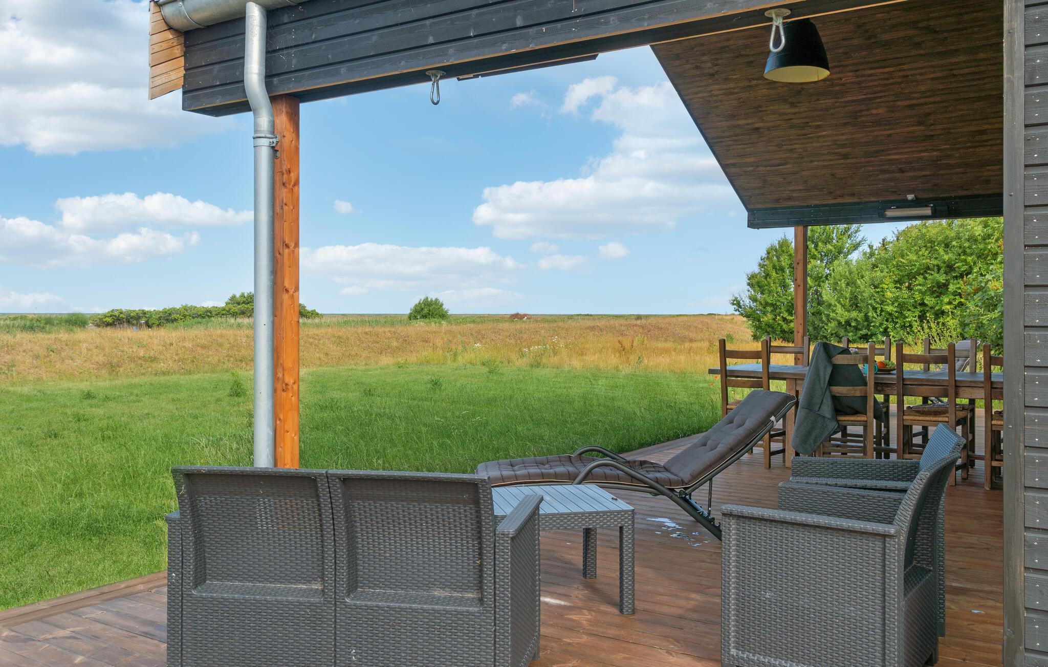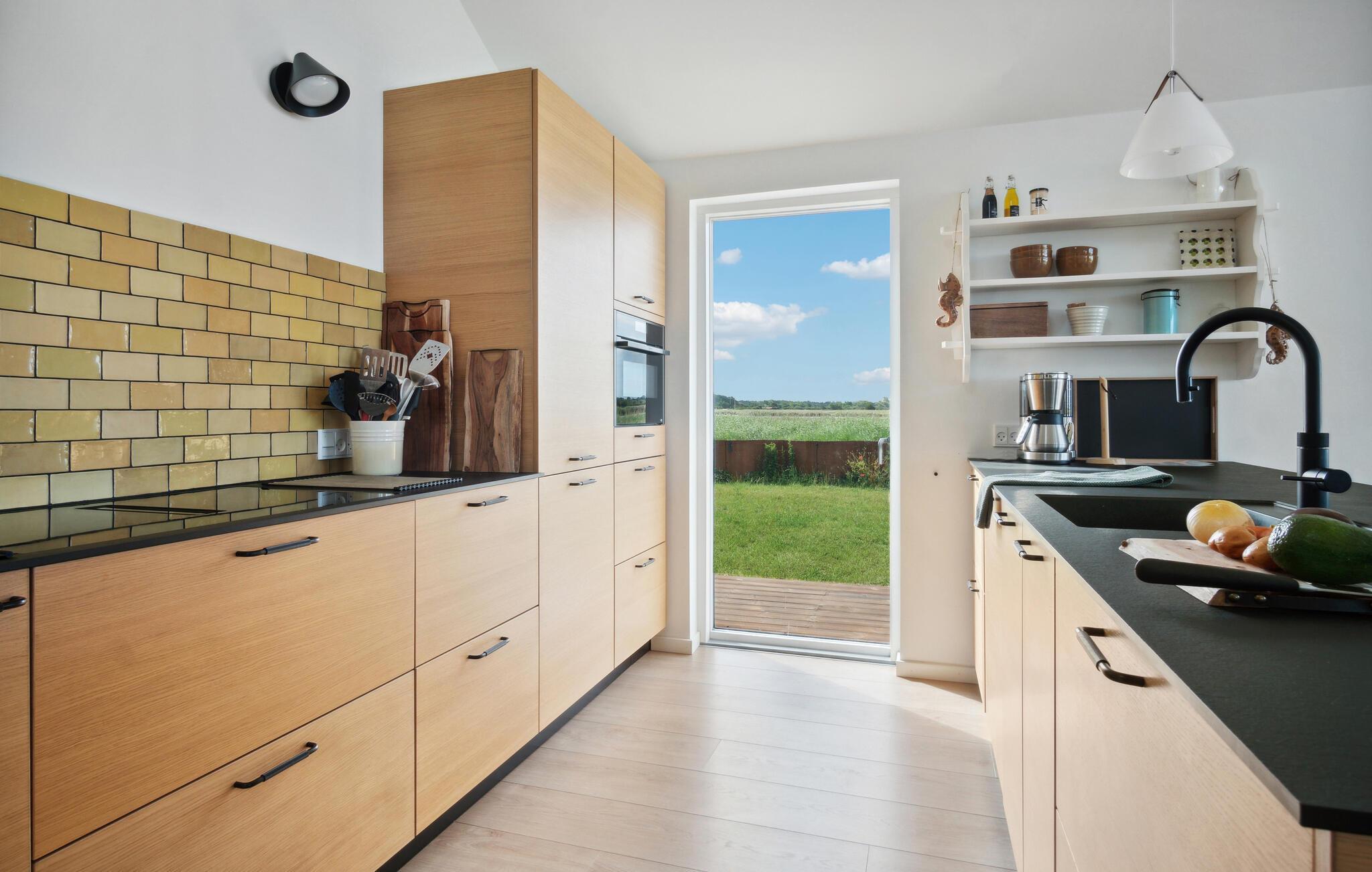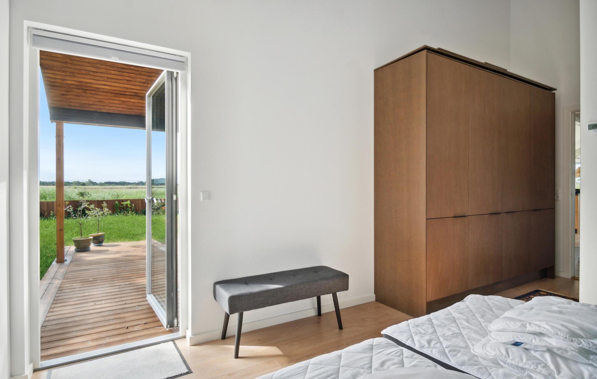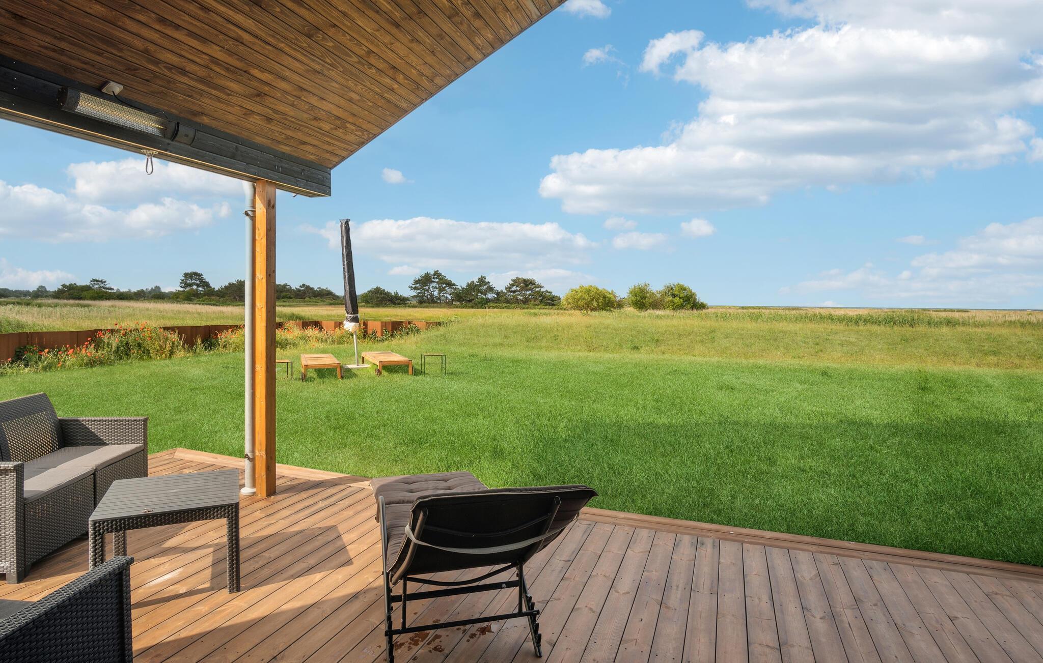 Es erwartet Sie am Rande einer Wohnsiedlung und umgeben von Meer und zwei Seen, dieses wunderschöne und moderne Ferienhaus für den Urlaub mit Ihrer Großfamilie oder einer befreundeten Familie. Die Aufteilung verspricht Privatsphäre, denn es gibt ein Haupthaus und ein Nebengebäude, das über zwei Schlafzimmer und ein eigenes Badezimmer verfügt. Im Haupthaus lädt Sie ein lichtdurchfluteter Wohnraum ein, gemeinsame Zeit zu verbringen. Bei allen Beschäftigungen können Sie einen tollen Blick auf die umliegende Landschaft und das Wasser genießen.