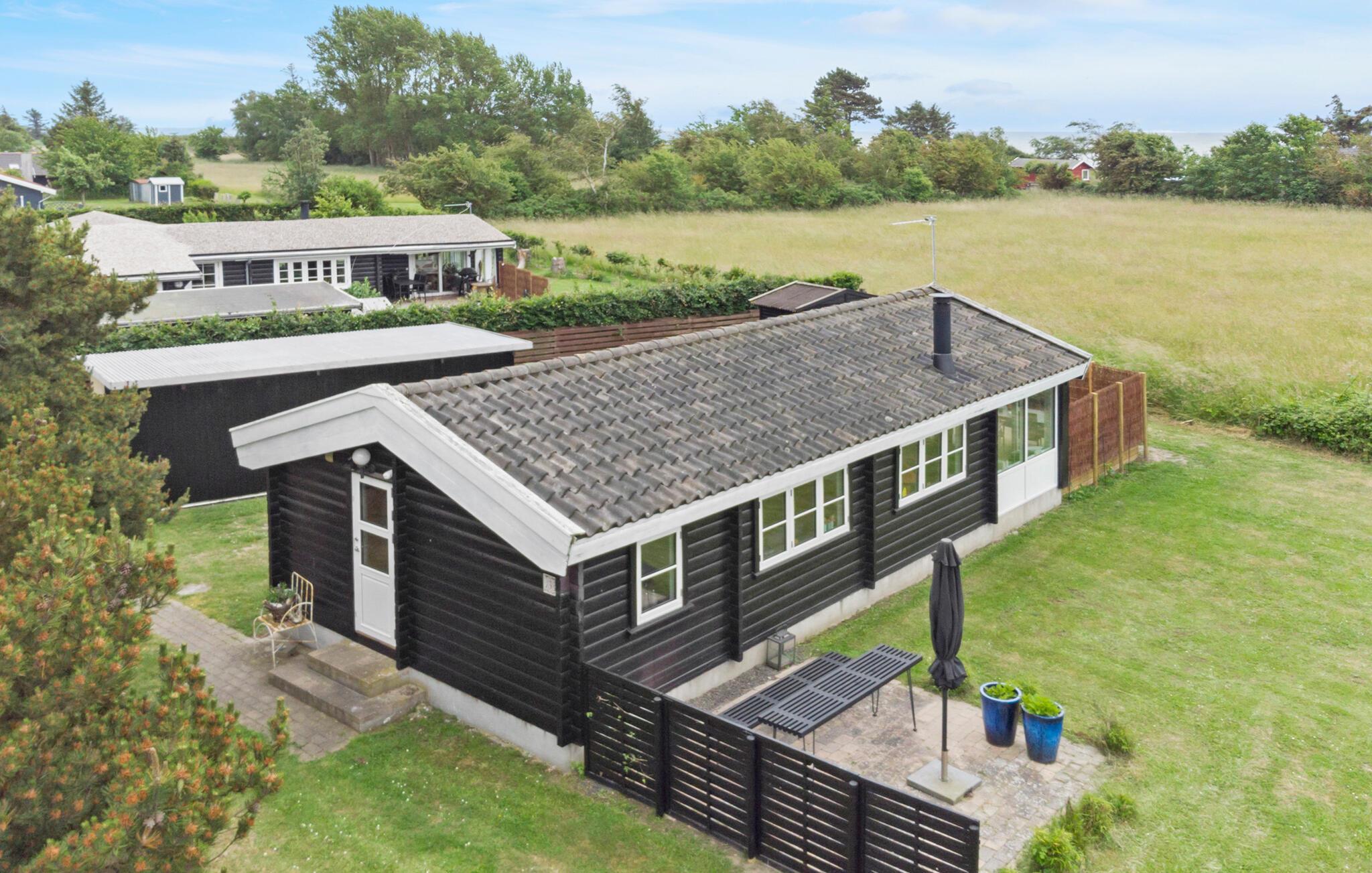 Gemütliches Blockhaus nahe dem Strand von Næsby mit Holzofen und Terrasse für entspannte Urlaubstage.