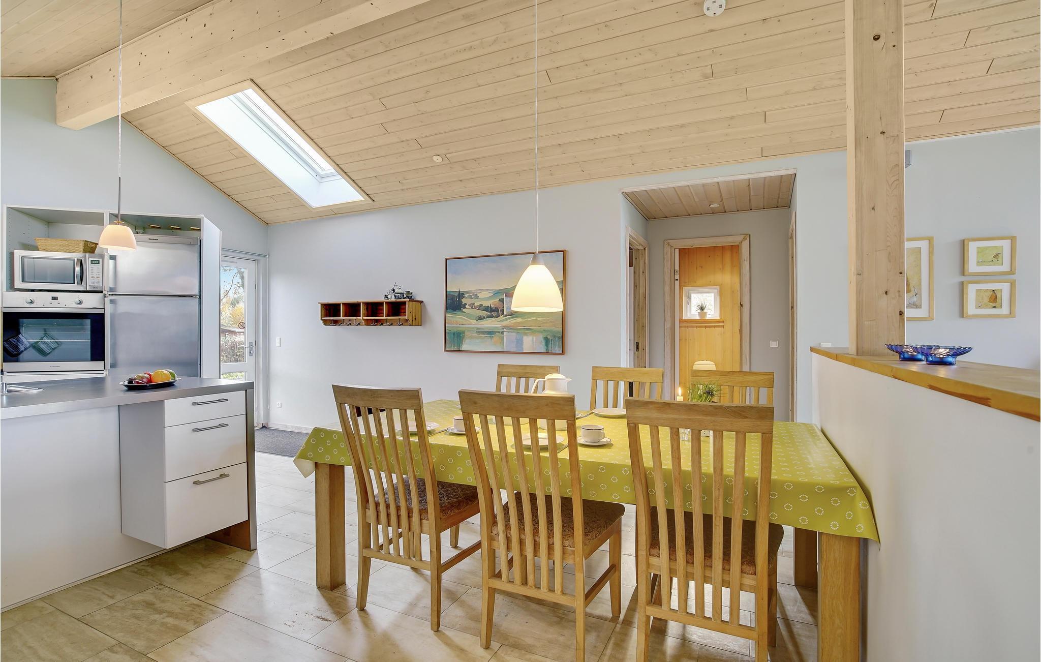 Schönes und mit durchdachten Details eingerichtetes Architektenhaus. Die komfortable Küche, die sich mitten im Haus befindet, ist offen zum Wohn- und Essbereich hin. Im Essbereich ist der Esstisch direkt am Fenster platziert, damit Sie beim Essen den Ausblick in den Garten genießen können. Das exklusive Bad verfügt über Whirlpool und Sauna sowie Bodenheizung. Auch eine Gästetoilette ist vorhanden. Zu allen Jahreszeiten bietet das Haus seinen Gästen die Gewähr für einen schönen Aufenthalt.