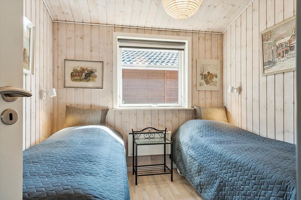 Zwei Schlafräume sind ebenfalls vom Eingangsbereich aus zugänglich. Einer der Räume beinhaltet ein Doppelbett und Komode. Der Zweite verfügt über zwei Einzelbetten und Schränke.