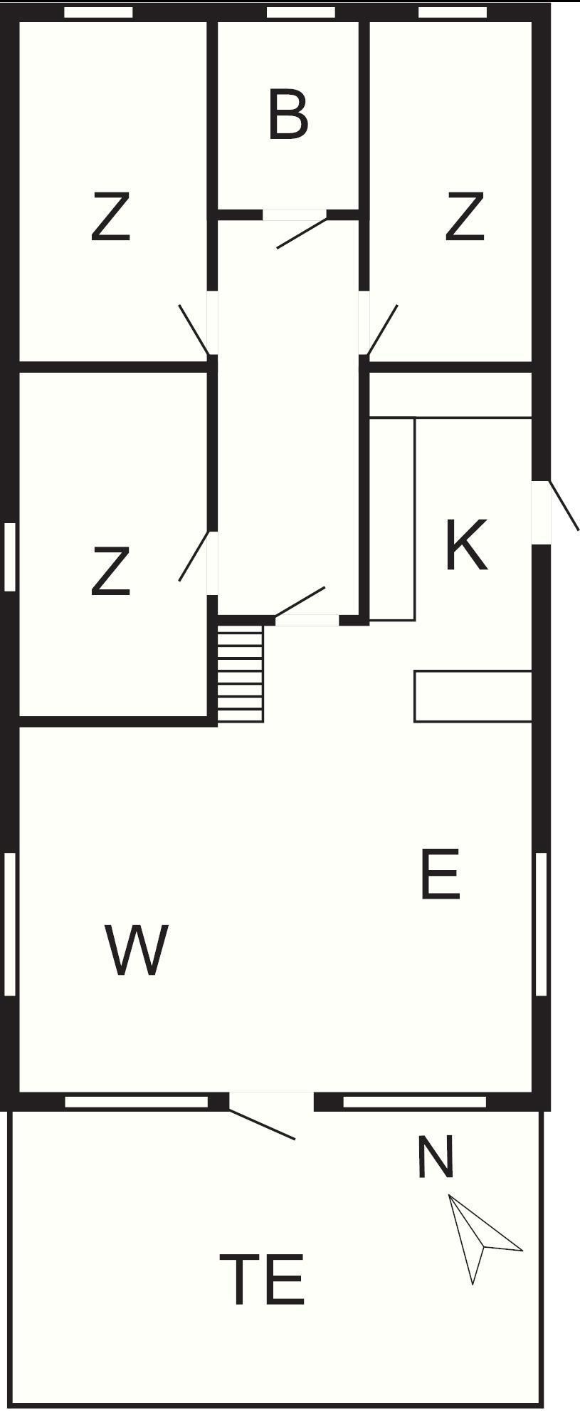 Bad: WC, Waschb., Dusche, Fußbodenheiz.