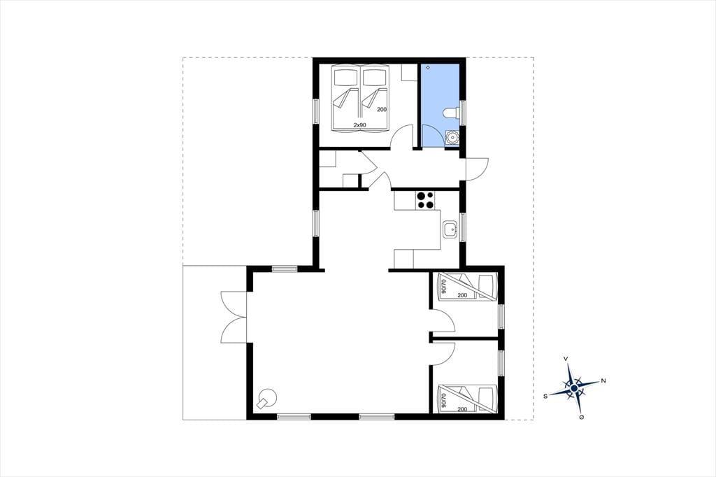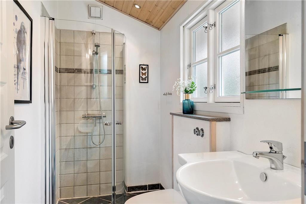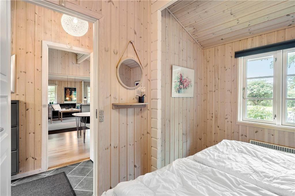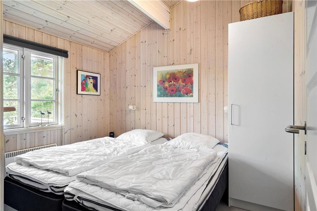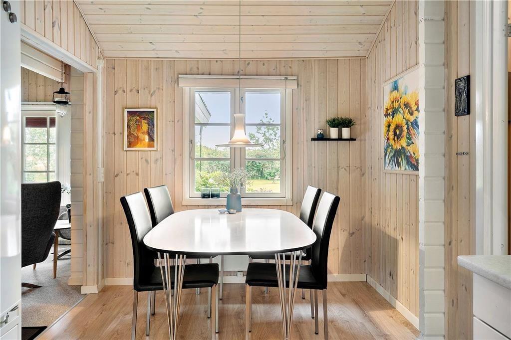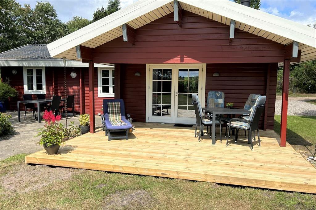 Dieses gemütliche, sehr gepflegte Ferienhaus im skandinavischen Stil empfängt Sie mit einer hellen und freundlichen Einrichtung, die in allen Räumen durch ansprechende, komfortable Möbelstücke geprägt wird. Die gemütliche Wohnatmosphäre wird an kühlen Sommerabenden und in der kalten Jahreszeit vom knisternden Feuer im Kaminofen maximiert. Der Kaminofen wird durch eine energiesparende Wärmepumpe unterstützt. Die helle Küche bietet Ihnen alles Wünschenswerte. Das schöne Badezimmer verfügt über eine Dusche, ein WC und ein Waschbecken. Einer der drei Schlafräume beinhaltet ein Doppelbett. In den anderen beiden Schlafräumen treffen Sie auf jeweils ein Etagenbett. Die Schlafräume sind mit Teppichboden versehen, der Wohnraum mit einem Holzfußboden.