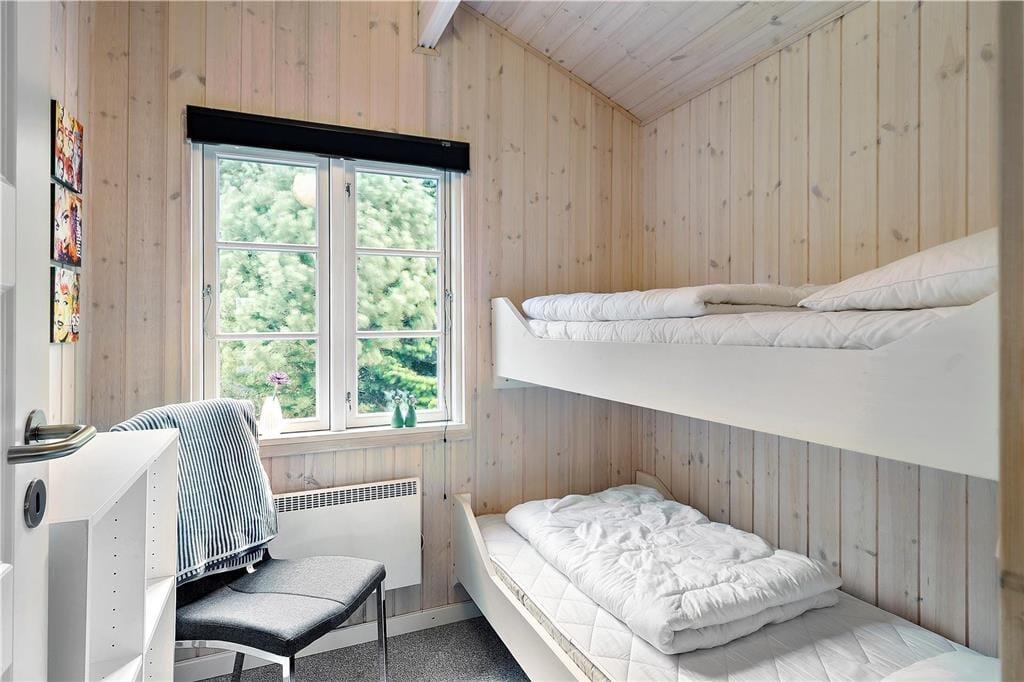 - Etagenbett - Den øverste køje er 70cm i bredden, den nederste køje er 80cm i bredden bægge er 2m i længden. Der er en sengehest på det ene af værelserne under køjesengen.