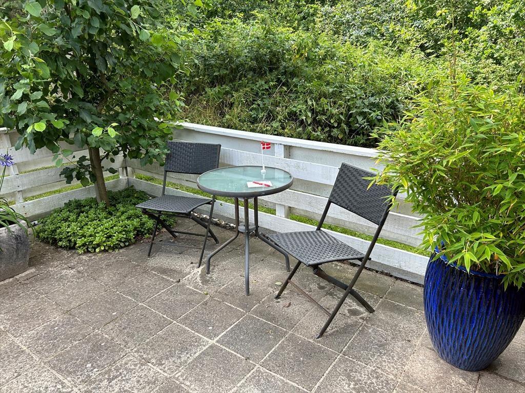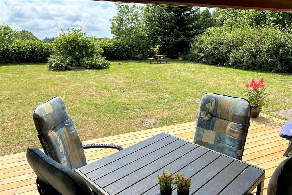 Sie wohnen auf einem gepflegten Grundstück, das von Nadel- und Laubbäumen umgeben ist, die guten Windschutz spenden. Ihre Kinder dürfen sich auf viel Platz zum Spielen freuen. Die große Südterrasse ist teilweise überdacht. Gute Gartenmöbel, ein Grill und ein Sonnenschirm laden zu entspannten und geselligen Stunden unter freiem Himmel ein. Vor dem Haus steht darüber hinaus eine Holzterrasse zur Verfügung. Ihren Pkw können Sie direkt am Urlaubsdomizil parken.