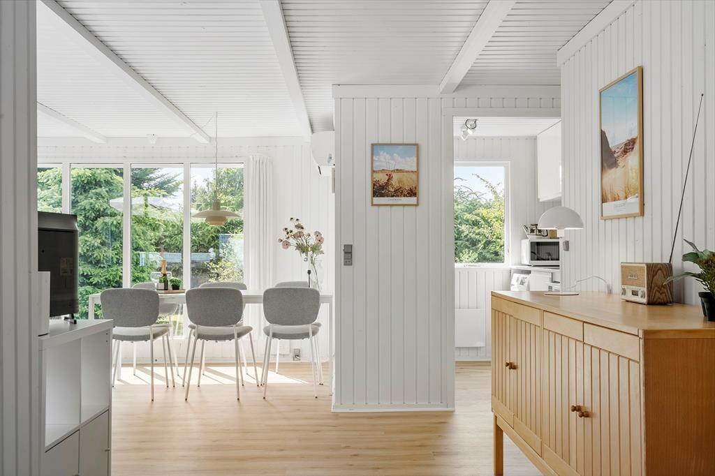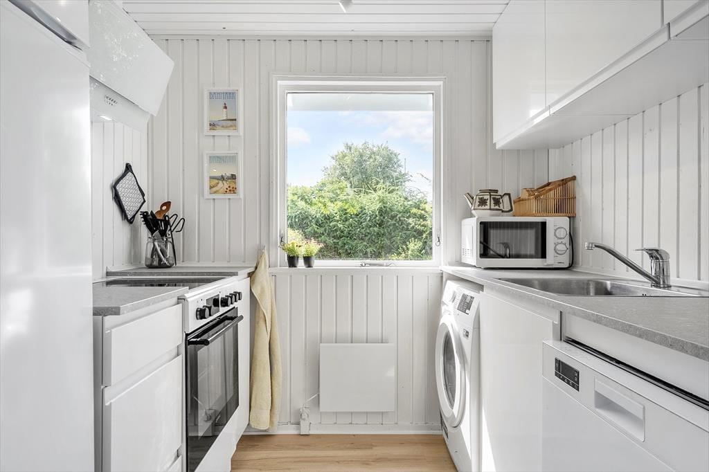 Es ist ein ganz besonderes Gefühl, die Tür zu diesem charmanten, himmelblauen Ferienhaus zu öffnen – als würde sich die Ruhe sofort einstellen. Euch erwartet echte dänische Ferienhausatmosphäre, Gemütlichkeit und ein wohnliches Ambiente, in dem ihr vom ersten Moment an abschalten könnt. Das Haus ist liebevoll eingerichtet und bietet Platz für gemeinsame Stunden ebenso wie für kleine Rückzugsorte – und natürlich ist auch euer vierbeiniger Freund herzlich willkommen. Im Wohnzimmer könnt ihr gemeinsam spielen, lesen oder einfach entspannen, während der Kamin wohlige Wärme und eine hyggelige Stimmung verbreitet. Der perfekte Ort, um nach einem Tag in der Natur zur Ruhe zu kommen – vielleicht mit einer Tasse Tee und einer Decke, während der Hund zufrieden zu euren Füßen döst. Die Küche liegt separat vom Wohnzimmer, sodass ihr ungestört kochen oder euch zurückziehen könnt. Sie ist gut ausgestattet, damit ihr alles vom Frühstück bis zum Abendessen mühelos zubereiten könnt.
