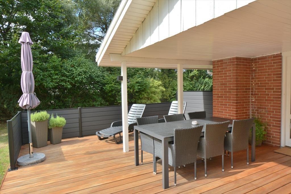 Nimm die Urlaubsstimmung mit auf die Terrasse, wo ihr nicht nur an einem schönen Sommertag, sondern auch bei Regen und Wind sitzen könnt. Zündet den Grill an und nehmt die gute Stimmung mit hinaus, wo während der Essenszubereitung alle eure Sinne angesprochen werden, während der Duft sich im Garten verbreitet. Das Haus ist umgeben von Natur, die euch die Möglichkeit bietet, in der Sonne oder im (Wind-)Schatten zu finden.
