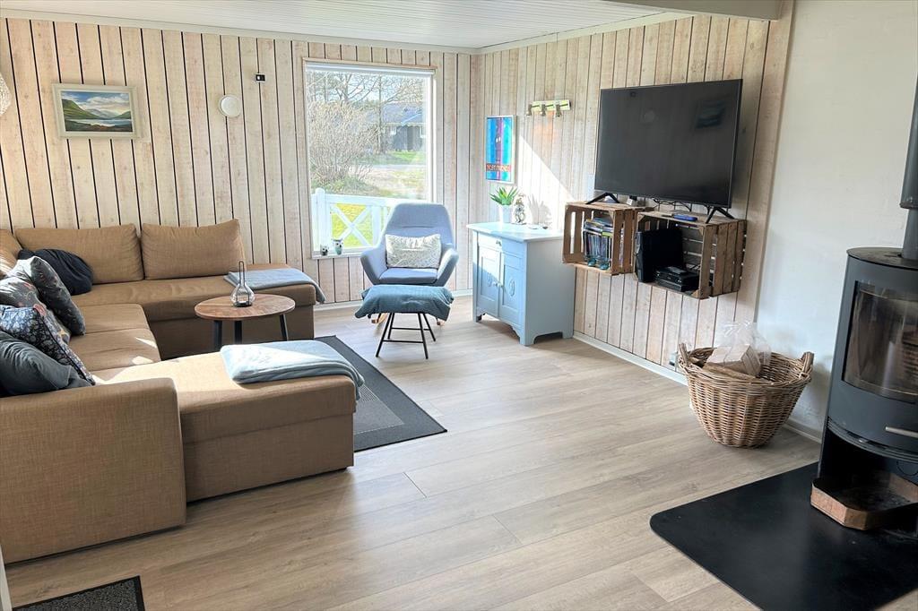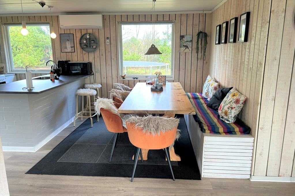 Gemütlichkeit und Entspannung stehen bei diesem reizenden Holzferienhaus im Mittelpunkt. Das Mietobjekt bildet einen perfekten Rahmen für erholsame Urlaubstage mit der Familie, die euch lange in Erinnerung bleiben werden. Nach einem erlebnisreichen Tag voller Aktivitäten könnt ihr auf dem Sofa die Beine hochlegen. Der knisternde Kaminofen verwöhnt euch derweil mit behaglicher Wärme und einem Maximum an schönster dänischer Ferienhausatmosphäre. Die Küche ist offen mit dem Wohnbereich verbunden. Dadurch genießt du selbst während der Zubereitung der Mahlzeiten die Nähe und Gesellschaft deiner Lieben, die sich im Wohnraum tummeln oder am Esstisch Gesellschaftsspiele spielen. Pure Erholung und beste Regeneration nach langen Tagen verspricht das Badezimmer, in dem ein Whirlpool und eine Sauna zu Momenten voller Wellnessflair einladen - eine luxuriöse Art und Weise, weit abseits der Alltagshektik, Zeit miteinander zu verbringen.