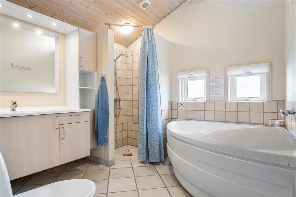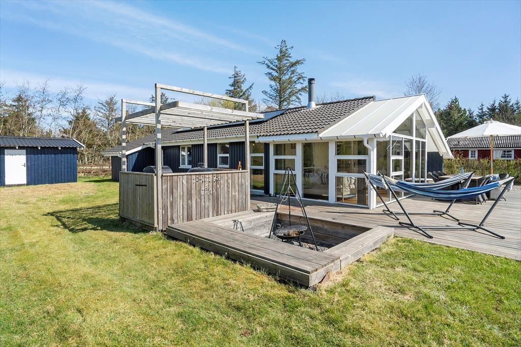 Mitten im ruhigen und naturnahen Nørhede Vest erwartet euch dieses gemütliche und großzügige Ferienhaus – ideal für alle, die Entspannung, Komfort und Erholung suchen. Das Haus besticht durch hohe Decken und große Fenster, die für ein helles und offenes Raumgefühl sorgen. Die Einrichtung ist einladend und wohnlich, mit einem Kamin für gemütliche Abende und einem geräumigen Wohnbereich, in dem alle zusammenkommen können. Nach einem Tag in der Natur lädt das hauseigene Whirlpool zum Entspannen ein – oder ihr genießt wohltuende Wärme in der Sauna. So fühlt sich Urlaub an.
