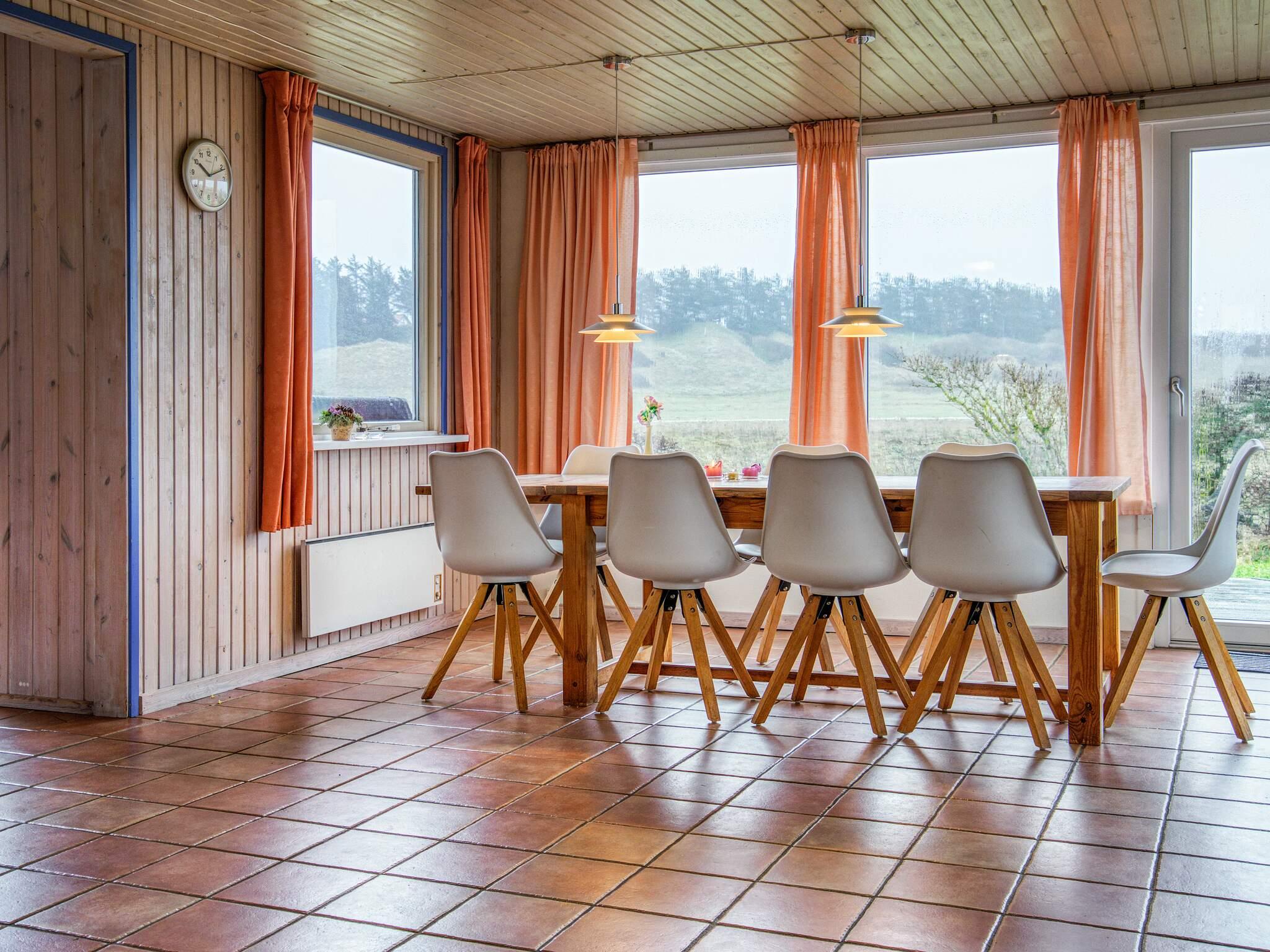Umfassend ausgestattetes Ferienhaus mit Whirlpool und Sauna sowie schönem Ausblick in die landschaftlich reizvolle Umgebung von Haus und Grundstück. Draußen kann man sogar die Nordsee erahnen. Das 1975 erbaute Holzhaus wurde 2001 grundlegend instand gesetzt. Es bietet einen hellen Küchen-/Wohnbereich mit Essecke sowie eine zweckmäßige Einrichtung in den fünf Schlafzimmern. Zudem Hems unter dem Dach, ein Bad mit Whirlpool und Sauna und Gäste-WC im Haus. Im Eingangsbereich ist ein Billardtisch zum Zeitvertreib aufgestellt. Der Stromverbrauch lässt sich durch den Holzofen und die installierte Wärmepumpe reduzieren. Die Wärmepumpe kann im Sommer zudem als Klimaanlage fungieren. Draußen gibt es Schaukel und Sandkasten für die Kinder. Das Haus steht nur ca. 600 m vom nächsten Strandufer, auf einem Naturgrundstück mit Dünen und einer naturbelassenen Grasfläche. Sie wohnen hier etwas nördlich des Ferienortes Lønstrup.